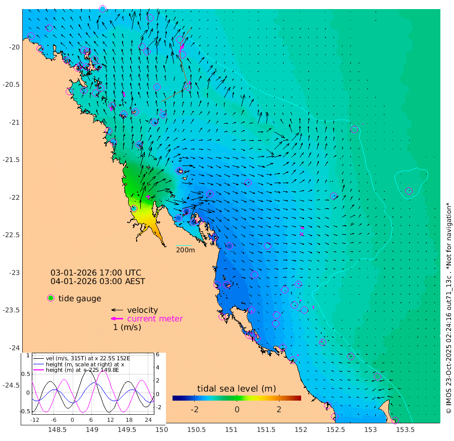 33cm/s -8T +10cm/s rms + 2cm/s 5T. Brampton I 18m 42cm/s -15T +9cm/s rms + 6cm/s 66T. Wigton I 38m 10cm/s 15T +7cm/s rms + 8cm/s 141T. Tern I 47m 43cm/s 4T +7cm/s rms + 12cm/s 54T. N Bugatti Rf 64m 64cm/s 28T +3cm/s rms + 13cm/s 178T. W Bugatti Rf 70m 24cm/s -2T +3cm/s rms + 3cm/s -130T. Creal Rf 69m 9cm/s 17T +7cm/s rms + 4cm/s 2T. North Rf 62m 16cm/s 166T +9cm/s rms + 2cm/s -56T. Cape Capricorn 26m 13cm/s -56T +5cm/s rms + 3cm/s 166T. L Musgrave I 42m 11cm/s -50T +9cm/s rms + 1cm/s -142T. Round Hill Hd 26m 5cm/s -8T +41cm/s rms + 48cm/s 116T. GBRELR 305m 27cm/s 99T +7cm/s rms + 6cm/s 123T. GBRCCH 92m 10cm/s 42T +8cm/s rms + 3cm/s -33T. GBRHIN 45m 4cm/s -5T +4cm/s rms + 2cm/s 41T. GBRHIS 46m 21cm/s 8T +16cm/s rms + 4cm/s -22T. GBROTE 59m -152cm Bell Cay -139cm Holbourne I -159cm Tern I -123cm Bugatti Rf -130cm Creal Rf -118cm White Tip I -132cm North Rf -166cm Rundle I -97cm L Musgrave I -96cm Saumarez Reef -132cm Kennedy Reef -128cm Unnamed Reef No. 2 -136cm Abbot Point -136cm Bowen -128cm Tideway Reef -134cm Hayman Island -148cm Square Reef -146cm Double Bay -140cm Molle Island -132cm Cid Harbour -134cm Hook Island -122cm Border Island -123cm Haslewood Island -133cm Shute Harbour -128cm Thomas Island -150cm Credlin Reef -139cm East Repulse Island -129cm Blacksmith Island -126cm Laguna Quays -149cm Carlisle Island (Off) -152cm St. Bees Island -134cm Scawfell Island -154cm Penrith Island -144cm Mackay Outer Harbour -153cm Hay Point -164cm Prudhoe Island -189cm Middle Island (Percy Isles) -139cm Gannet Cay -91cm Elusive Reef -116cm Mcewin Islet -208cm Mumford Island -193cm Osborn Island -199cm Marquis Island -188cm Reef Point -173cm High Peak Island -196cm Port Clinton -201cm Peaked Island -137cm Karamea Bank -167cm Johnson Patch - NW -195cm Rosslyn Bay -200cm Middle Island (Keppel Isles) -215cm Port Alma -131cm Heron Island -138cm One Tree Islet -145cm Polmaise Reef -137cm Tryon Island -150cm Rock Cod Shoal -156cm Gatcombe Head -177cm Gladstone -171cm South Trees (Storm Surge) -132cm Clews Point -120cm Round Hill Head -92cm Lady Elliot Island -84cm Breaksea Spit -130cm Bundaberg (Burnett Heads) -135cm Elliot Heads -62cm Waddy Point (Fraser Island)