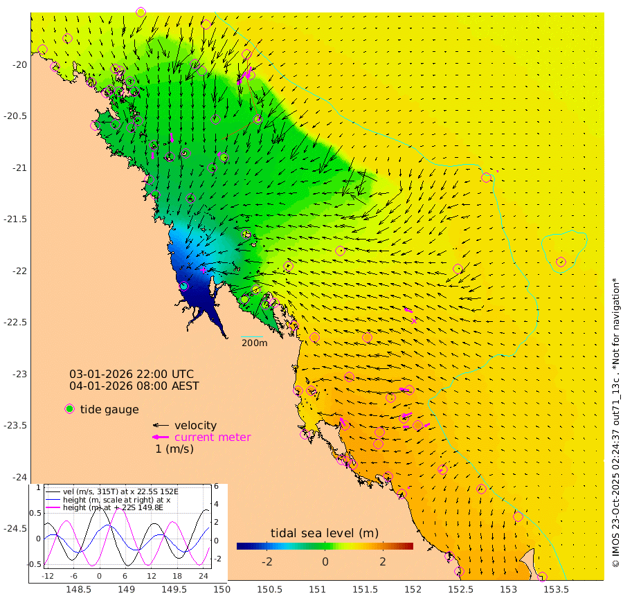 44cm/s -180T +10cm/s rms + 2cm/s 5T. Brampton I 18m 58cm/s 173T +9cm/s rms + 6cm/s 66T. Wigton I 38m 29cm/s -144T +7cm/s rms + 8cm/s 141T. Tern I 47m 75cm/s -163T +7cm/s rms + 12cm/s 54T. N Bugatti Rf 64m 95cm/s -148T +3cm/s rms + 13cm/s 178T. W Bugatti Rf 70m 34cm/s -161T +3cm/s rms + 3cm/s -130T. Creal Rf 69m 62cm/s -82T +7cm/s rms + 4cm/s 2T. North Rf 62m 57cm/s -30T +9cm/s rms + 2cm/s -56T. Cape Capricorn 26m 19cm/s -120T +5cm/s rms + 3cm/s 166T. L Musgrave I 42m 11cm/s -77T +9cm/s rms + 1cm/s -142T. Round Hill Hd 26m 8cm/s -102T +41cm/s rms + 48cm/s 116T. GBRELR 305m 55cm/s -67T +7cm/s rms + 6cm/s 123T. GBRCCH 92m 65cm/s -112T +8cm/s rms + 3cm/s -33T. GBRHIN 45m 38cm/s -95T +4cm/s rms + 2cm/s 41T. GBRHIS 46m 37cm/s -120T +16cm/s rms + 4cm/s -22T. GBROTE 59m 87cm Bell Cay 73cm Holbourne I 29cm Tern I 59cm Bugatti Rf 40cm Creal Rf 77cm White Tip I 144cm North Rf 172cm Rundle I 128cm L Musgrave I 100cm Saumarez Reef 82cm Kennedy Reef 97cm Unnamed Reef No. 2 68cm Abbot Point 59cm Bowen 37cm Tideway Reef 57cm Hayman Island 34cm Square Reef 61cm Double Bay 36cm Molle Island 26cm Cid Harbour 50cm Hook Island 21cm Border Island 14cm Haslewood Island 30cm Shute Harbour 6cm Thomas Island 27cm Credlin Reef -2cm East Repulse Island -9cm Blacksmith Island -21cm Laguna Quays 6cm Carlisle Island (Off) -4cm St. Bees Island -1cm Scawfell Island 17cm Penrith Island -11cm Mackay Outer Harbour -8cm Hay Point 12cm Prudhoe Island 63cm Middle Island (Percy Isles) 84cm Gannet Cay 101cm Elusive Reef -106cm Mcewin Islet 87cm Mumford Island 45cm Osborn Island 44cm Marquis Island 49cm Reef Point 77cm High Peak Island 141cm Port Clinton 159cm Peaked Island 152cm Karamea Bank 159cm Johnson Patch - NW 169cm Rosslyn Bay 176cm Middle Island (Keppel Isles) 167cm Port Alma 147cm Heron Island 171cm One Tree Islet 162cm Polmaise Reef 148cm Tryon Island 162cm Rock Cod Shoal 152cm Gatcombe Head 157cm Gladstone 163cm South Trees (Storm Surge) 162cm Clews Point 145cm Round Hill Head 127cm Lady Elliot Island 128cm Breaksea Spit 146cm Bundaberg (Burnett Heads) 147cm Elliot Heads 105cm Waddy Point (Fraser Island)