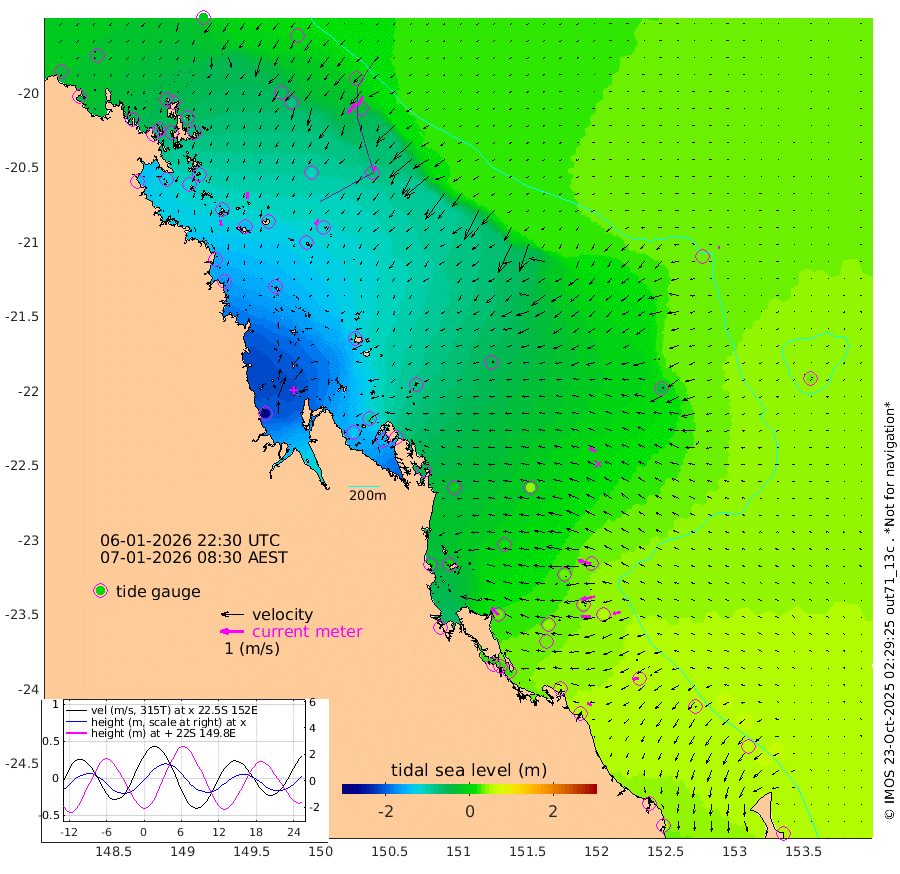 26cm/s 170T +10cm/s rms + 2cm/s 5T. Brampton I 18m 30cm/s 179T +9cm/s rms + 6cm/s 66T. Wigton I 38m 27cm/s -147T +7cm/s rms + 8cm/s 141T. Tern I 47m 47cm/s -153T +7cm/s rms + 12cm/s 54T. N Bugatti Rf 64m 48cm/s -144T +3cm/s rms + 13cm/s 178T. W Bugatti Rf 70m 22cm/s -144T +3cm/s rms + 3cm/s -130T. Creal Rf 69m 58cm/s -76T +7cm/s rms + 4cm/s 2T. North Rf 62m 44cm/s -40T +9cm/s rms + 2cm/s -56T. Cape Capricorn 26m 23cm/s -100T +5cm/s rms + 3cm/s 166T. L Musgrave I 42m 20cm/s -73T +9cm/s rms + 1cm/s -142T. Round Hill Hd 26m 7cm/s -99T +41cm/s rms + 48cm/s 116T. GBRELR 305m 30cm/s -66T +7cm/s rms + 6cm/s 123T. GBRCCH 92m 59cm/s -102T +8cm/s rms + 3cm/s -33T. GBRHIN 45m 39cm/s -91T +4cm/s rms + 2cm/s 41T. GBRHIS 46m 33cm/s -103T +16cm/s rms + 4cm/s -22T. GBROTE 59m -48cm Bell Cay -31cm Holbourne I -115cm Tern I -37cm Bugatti Rf -71cm Creal Rf -12cm White Tip I 33cm North Rf 31cm Rundle I 48cm L Musgrave I 35cm Saumarez Reef -11cm Kennedy Reef 3cm Unnamed Reef No. 2 -29cm Abbot Point -40cm Bowen -64cm Tideway Reef -48cm Hayman Island -81cm Square Reef -60cm Double Bay -69cm Molle Island -73cm Cid Harbour -61cm Hook Island -73cm Border Island -83cm Haslewood Island -78cm Shute Harbour -106cm Thomas Island -104cm Credlin Reef -128cm East Repulse Island -113cm Blacksmith Island -137cm Laguna Quays -129cm Carlisle Island (Off) -142cm St. Bees Island -116cm Scawfell Island -122cm Penrith Island -152cm Mackay Outer Harbour -160cm Hay Point -152cm Prudhoe Island -118cm Middle Island (Percy Isles) -43cm Gannet Cay 31cm Elusive Reef -265cm Mcewin Islet -98cm Mumford Island -136cm Osborn Island -149cm Marquis Island -124cm Reef Point -79cm High Peak Island -40cm Port Clinton -14cm Peaked Island 38cm Karamea Bank 17cm Johnson Patch - NW 0cm Rosslyn Bay 4cm Middle Island (Keppel Isles) -18cm Port Alma 41cm Heron Island 56cm One Tree Islet 43cm Polmaise Reef 35cm Tryon Island 37cm Rock Cod Shoal 21cm Gatcombe Head 6cm Gladstone 20cm South Trees (Storm Surge) 55cm Clews Point 48cm Round Hill Head 51cm Lady Elliot Island 58cm Breaksea Spit 43cm Bundaberg (Burnett Heads) 47cm Elliot Heads 49cm Waddy Point (Fraser Island)