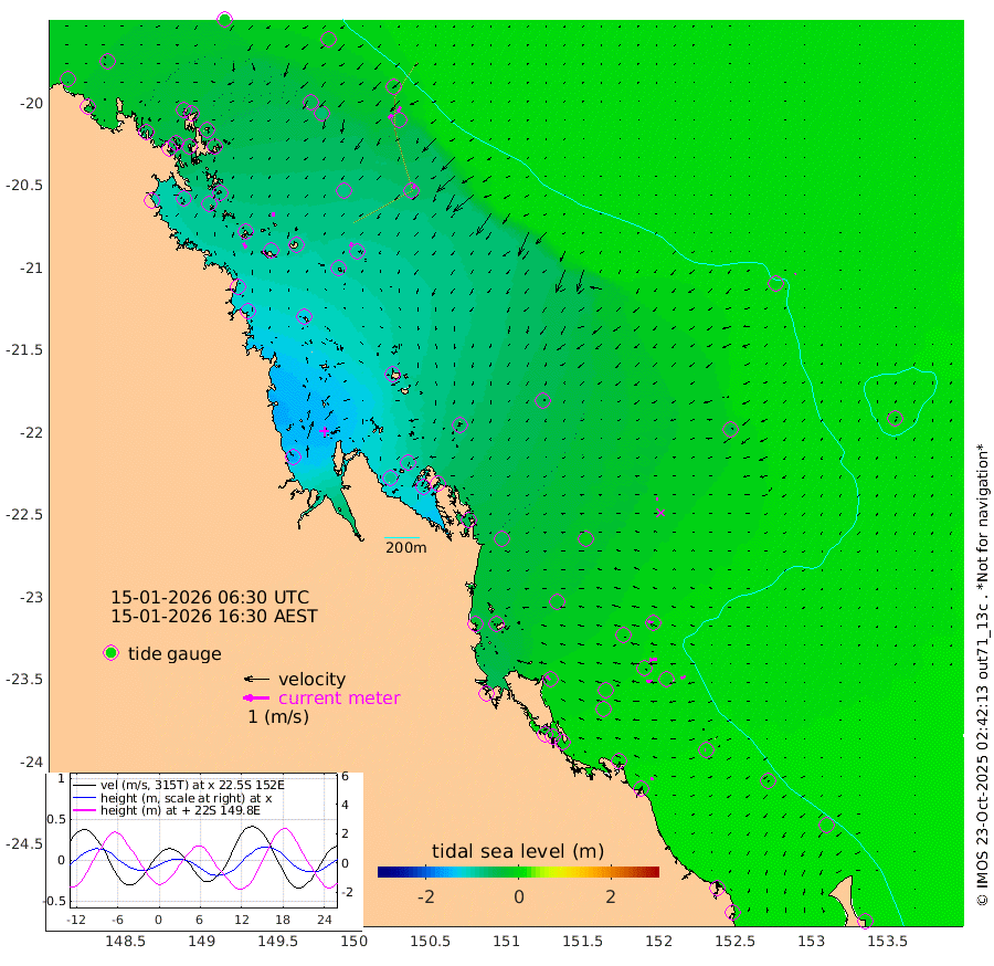21cm/s 156T +10cm/s rms + 2cm/s 5T. Brampton I 18m 17cm/s 178T +9cm/s rms + 6cm/s 66T. Wigton I 38m 16cm/s -158T +7cm/s rms + 8cm/s 141T. Tern I 47m 24cm/s -153T +7cm/s rms + 12cm/s 54T. N Bugatti Rf 64m 18cm/s -135T +3cm/s rms + 13cm/s 178T. W Bugatti Rf 70m 16cm/s -150T +3cm/s rms + 3cm/s -130T. Creal Rf 69m 20cm/s -70T +7cm/s rms + 4cm/s 2T. North Rf 62m 21cm/s -49T +9cm/s rms + 2cm/s -56T. Cape Capricorn 26m 4cm/s -90T +5cm/s rms + 3cm/s 166T. L Musgrave I 42m 11cm/s -77T +9cm/s rms + 1cm/s -142T. Round Hill Hd 26m 3cm/s -163T +41cm/s rms + 48cm/s 116T. GBRELR 305m 7cm/s -98T +7cm/s rms + 6cm/s 123T. GBRCCH 92m 31cm/s -94T +8cm/s rms + 3cm/s -33T. GBRHIN 45m 21cm/s -93T +4cm/s rms + 2cm/s 41T. GBRHIS 46m 20cm/s -115T +16cm/s rms + 4cm/s -22T. GBROTE 59m -52cm Bell Cay -34cm Holbourne I -90cm Tern I -38cm Bugatti Rf -60cm Creal Rf -24cm White Tip I -9cm North Rf -10cm Rundle I 2cm L Musgrave I -1cm Saumarez Reef -14cm Kennedy Reef -16cm Unnamed Reef No. 2 -29cm Abbot Point -36cm Bowen -54cm Tideway Reef -42cm Hayman Island -70cm Square Reef -58cm Double Bay -47cm Molle Island -51cm Cid Harbour -50cm Hook Island -50cm Border Island -55cm Haslewood Island -60cm Shute Harbour -82cm Thomas Island -79cm Credlin Reef -85cm East Repulse Island -77cm Blacksmith Island -94cm Laguna Quays -84cm Carlisle Island (Off) -100cm St. Bees Island -84cm Scawfell Island -87cm Penrith Island -108cm Mackay Outer Harbour -115cm Hay Point -127cm Prudhoe Island -96cm Middle Island (Percy Isles) -40cm Gannet Cay -1cm Elusive Reef -156cm Mcewin Islet -85cm Mumford Island -89cm Osborn Island -97cm Marquis Island -82cm Reef Point -65cm High Peak Island -52cm Port Clinton -49cm Peaked Island -5cm Karamea Bank -22cm Johnson Patch - NW -27cm Rosslyn Bay -29cm Middle Island (Keppel Isles) -32cm Port Alma -2cm Heron Island -5cm One Tree Islet -5cm Polmaise Reef -9cm Tryon Island -2cm Rock Cod Shoal -9cm Gatcombe Head -15cm Gladstone -9cm South Trees (Storm Surge) 5cm Clews Point 4cm Round Hill Head 2cm Lady Elliot Island 3cm Breaksea Spit 8cm Bundaberg (Burnett Heads) 13cm Elliot Heads -2cm Waddy Point (Fraser Island)