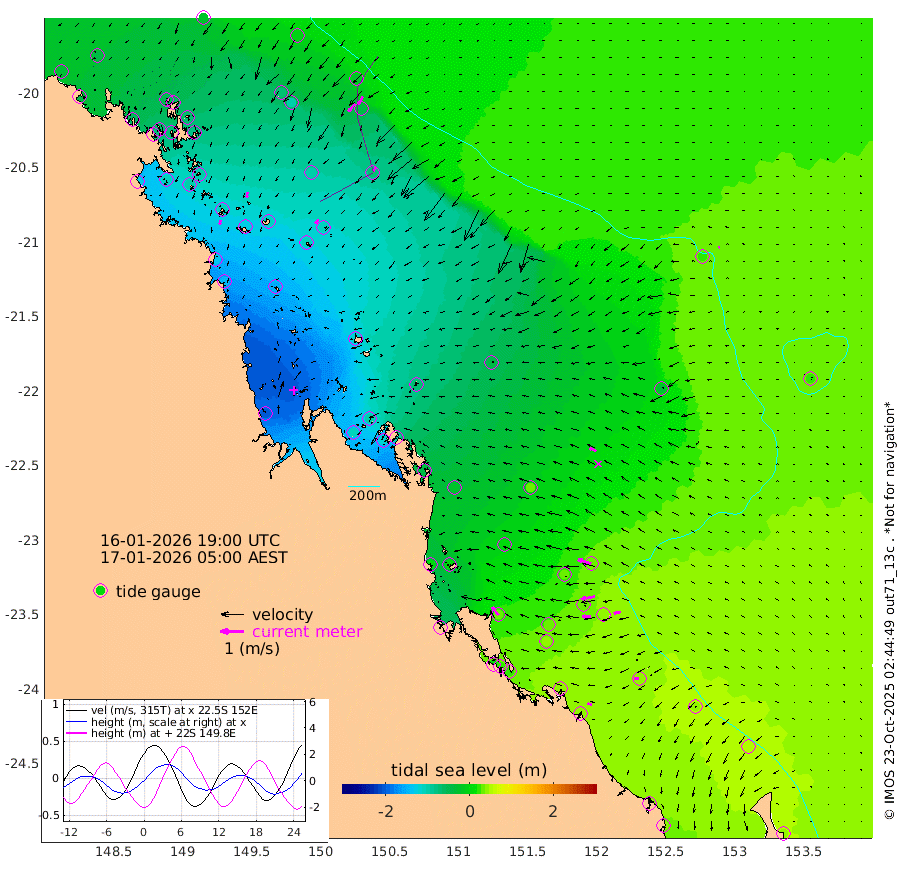 21cm/s -173T +10cm/s rms + 2cm/s 5T. Brampton I 18m 25cm/s -176T +9cm/s rms + 6cm/s 66T. Wigton I 38m 23cm/s -142T +7cm/s rms + 8cm/s 141T. Tern I 47m 39cm/s -151T +7cm/s rms + 12cm/s 54T. N Bugatti Rf 64m 42cm/s -139T +3cm/s rms + 13cm/s 178T. W Bugatti Rf 70m 19cm/s -145T +3cm/s rms + 3cm/s -130T. Creal Rf 69m 59cm/s -73T +7cm/s rms + 4cm/s 2T. North Rf 62m 44cm/s -37T +9cm/s rms + 2cm/s -56T. Cape Capricorn 26m 20cm/s -97T +5cm/s rms + 3cm/s 166T. L Musgrave I 42m 19cm/s -67T +9cm/s rms + 1cm/s -142T. Round Hill Hd 26m 8cm/s -84T +41cm/s rms + 48cm/s 116T. GBRELR 305m 31cm/s -62T +7cm/s rms + 6cm/s 123T. GBRCCH 92m 59cm/s -100T +8cm/s rms + 3cm/s -33T. GBRHIN 45m 36cm/s -91T +4cm/s rms + 2cm/s 41T. GBRHIS 46m 31cm/s -102T +16cm/s rms + 4cm/s -22T. GBROTE 59m -46cm Bell Cay -44cm Holbourne I -111cm Tern I -43cm Bugatti Rf -73cm Creal Rf -21cm White Tip I 31cm North Rf 30cm Rundle I 44cm L Musgrave I 19cm Saumarez Reef -23cm Kennedy Reef -5cm Unnamed Reef No. 2 -36cm Abbot Point -45cm Bowen -68cm Tideway Reef -50cm Hayman Island -94cm Square Reef -64cm Double Bay -73cm Molle Island -70cm Cid Harbour -65cm Hook Island -70cm Border Island -77cm Haslewood Island -77cm Shute Harbour -101cm Thomas Island -95cm Credlin Reef -105cm East Repulse Island -102cm Blacksmith Island -126cm Laguna Quays -108cm Carlisle Island (Off) -124cm St. Bees Island -107cm Scawfell Island -112cm Penrith Island -136cm Mackay Outer Harbour -143cm Hay Point -151cm Prudhoe Island -114cm Middle Island (Percy Isles) -35cm Gannet Cay 28cm Elusive Reef -206cm Mcewin Islet -98cm Mumford Island -108cm Osborn Island -114cm Marquis Island -94cm Reef Point -68cm High Peak Island -38cm Port Clinton -26cm Peaked Island 36cm Karamea Bank 8cm Johnson Patch - NW 3cm Rosslyn Bay 5cm Middle Island (Keppel Isles) -13cm Port Alma 36cm Heron Island 44cm One Tree Islet 34cm Polmaise Reef 34cm Tryon Island 42cm Rock Cod Shoal 20cm Gatcombe Head 10cm Gladstone 21cm South Trees (Storm Surge) 47cm Clews Point 43cm Round Hill Head 46cm Lady Elliot Island 54cm Breaksea Spit 39cm Bundaberg (Burnett Heads) 43cm Elliot Heads 45cm Waddy Point (Fraser Island)