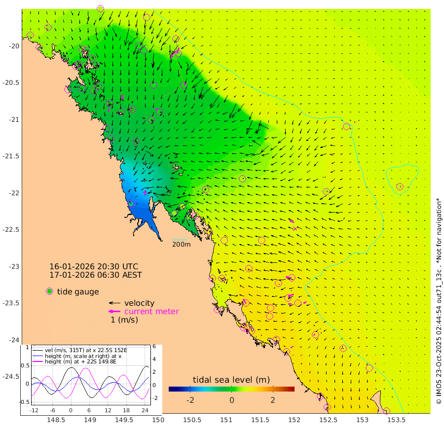 30cm/s -174T +10cm/s rms + 2cm/s 5T. Brampton I 18m 40cm/s 175T +9cm/s rms + 6cm/s 66T. Wigton I 38m 22cm/s -142T +7cm/s rms + 8cm/s 141T. Tern I 47m 52cm/s -161T +7cm/s rms + 12cm/s 54T. N Bugatti Rf 64m 69cm/s -145T +3cm/s rms + 13cm/s 178T. W Bugatti Rf 70m 24cm/s -161T +3cm/s rms + 3cm/s -130T. Creal Rf 69m 50cm/s -80T +7cm/s rms + 4cm/s 2T. North Rf 62m 42cm/s -31T +9cm/s rms + 2cm/s -56T. Cape Capricorn 26m 14cm/s -114T +5cm/s rms + 3cm/s 166T. L Musgrave I 42m 10cm/s -69T +9cm/s rms + 1cm/s -142T. Round Hill Hd 26m 7cm/s -92T +41cm/s rms + 48cm/s 116T. GBRELR 305m 40cm/s -67T +7cm/s rms + 6cm/s 123T. GBRCCH 92m 50cm/s -111T +8cm/s rms + 3cm/s -33T. GBRHIN 45m 29cm/s -94T +4cm/s rms + 2cm/s 41T. GBRHIS 46m 27cm/s -117T +16cm/s rms + 4cm/s -22T. GBROTE 59m 52cm Bell Cay 38cm Holbourne I 7cm Tern I 34cm Bugatti Rf 17cm Creal Rf 48cm White Tip I 99cm North Rf 116cm Rundle I 89cm L Musgrave I 61cm Saumarez Reef 52cm Kennedy Reef 61cm Unnamed Reef No. 2 42cm Abbot Point 36cm Bowen 15cm Tideway Reef 37cm Hayman Island 10cm Square Reef 22cm Double Bay 21cm Molle Island 22cm Cid Harbour 18cm Hook Island 15cm Border Island 7cm Haslewood Island 14cm Shute Harbour -5cm Thomas Island 10cm Credlin Reef -5cm East Repulse Island 1cm Blacksmith Island -23cm Laguna Quays -4cm Carlisle Island (Off) -11cm St. Bees Island 2cm Scawfell Island 8cm Penrith Island -18cm Mackay Outer Harbour -18cm Hay Point -21cm Prudhoe Island 23cm Middle Island (Percy Isles) 52cm Gannet Cay 69cm Elusive Reef -80cm Mcewin Islet 57cm Mumford Island 41cm Osborn Island 36cm Marquis Island 43cm Reef Point 45cm High Peak Island 78cm Port Clinton 91cm Peaked Island 101cm Karamea Bank 101cm Johnson Patch - NW 110cm Rosslyn Bay 114cm Middle Island (Keppel Isles) 108cm Port Alma 101cm Heron Island 115cm One Tree Islet 109cm Polmaise Reef 107cm Tryon Island 111cm Rock Cod Shoal 102cm Gatcombe Head 104cm Gladstone 110cm South Trees (Storm Surge) 112cm Clews Point 100cm Round Hill Head 86cm Lady Elliot Island 93cm Breaksea Spit 100cm Bundaberg (Burnett Heads) 106cm Elliot Heads 75cm Waddy Point (Fraser Island)