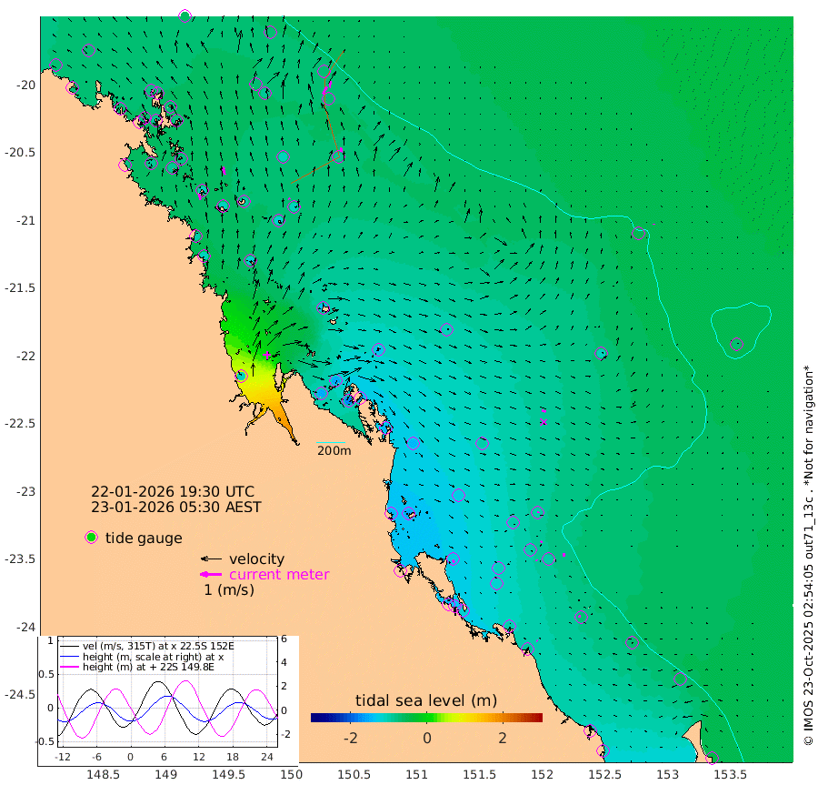 26cm/s -13T +10cm/s rms + 2cm/s 5T. Brampton I 18m 36cm/s -13T +9cm/s rms + 6cm/s 66T. Wigton I 38m 6cm/s -22T +7cm/s rms + 8cm/s 141T. Tern I 47m 30cm/s 6T +7cm/s rms + 12cm/s 54T. N Bugatti Rf 64m 39cm/s 30T +3cm/s rms + 13cm/s 178T. W Bugatti Rf 70m 20cm/s -16T +3cm/s rms + 3cm/s -130T. Creal Rf 69m 8cm/s 53T +7cm/s rms + 4cm/s 2T. North Rf 62m 14cm/s 162T +9cm/s rms + 2cm/s -56T. Cape Capricorn 26m 10cm/s -65T +5cm/s rms + 3cm/s 166T. L Musgrave I 42m 6cm/s -45T +9cm/s rms + 1cm/s -142T. Round Hill Hd 26m 4cm/s -14T +41cm/s rms + 48cm/s 116T. GBRELR 305m 18cm/s 103T +7cm/s rms + 6cm/s 123T. GBRCCH 92m 8cm/s 32T +8cm/s rms + 3cm/s -33T. GBRHIN 45m 3cm/s -38T +4cm/s rms + 2cm/s 41T. GBRHIS 46m 14cm/s -1T +16cm/s rms + 4cm/s -22T. GBROTE 59m -111cm Bell Cay -69cm Holbourne I -110cm Tern I -74cm Bugatti Rf -86cm Creal Rf -66cm White Tip I -95cm North Rf -124cm Rundle I -69cm L Musgrave I -69cm Saumarez Reef -64cm Kennedy Reef -67cm Unnamed Reef No. 2 -72cm Abbot Point -73cm Bowen -73cm Tideway Reef -79cm Hayman Island -92cm Square Reef -73cm Double Bay -71cm Molle Island -87cm Cid Harbour -69cm Hook Island -76cm Border Island -82cm Haslewood Island -79cm Shute Harbour -81cm Thomas Island -105cm Credlin Reef -94cm East Repulse Island -92cm Blacksmith Island -82cm Laguna Quays -105cm Carlisle Island (Off) -111cm St. Bees Island -101cm Scawfell Island -118cm Penrith Island -103cm Mackay Outer Harbour -112cm Hay Point -113cm Prudhoe Island -137cm Middle Island (Percy Isles) -107cm Gannet Cay -50cm Elusive Reef -103cm Mcewin Islet -157cm Mumford Island -159cm Osborn Island -171cm Marquis Island -156cm Reef Point -136cm High Peak Island -143cm Port Clinton -147cm Peaked Island -100cm Karamea Bank -125cm Johnson Patch - NW -149cm Rosslyn Bay -152cm Middle Island (Keppel Isles) -170cm Port Alma -98cm Heron Island -95cm One Tree Islet -107cm Polmaise Reef -101cm Tryon Island -113cm Rock Cod Shoal -120cm Gatcombe Head -141cm Gladstone -133cm South Trees (Storm Surge) -96cm Clews Point -91cm Round Hill Head -66cm Lady Elliot Island -55cm Breaksea Spit -99cm Bundaberg (Burnett Heads) -109cm Elliot Heads -44cm Waddy Point (Fraser Island)
