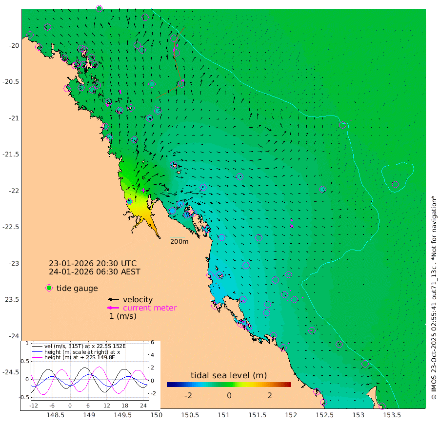 21cm/s -11T +10cm/s rms + 2cm/s 5T. Brampton I 18m 31cm/s -12T +9cm/s rms + 6cm/s 66T. Wigton I 38m 4cm/s -44T +7cm/s rms + 8cm/s 141T. Tern I 47m 24cm/s 7T +7cm/s rms + 12cm/s 54T. N Bugatti Rf 64m 29cm/s 30T +3cm/s rms + 13cm/s 178T. W Bugatti Rf 70m 16cm/s -20T +3cm/s rms + 3cm/s -130T. Creal Rf 69m 6cm/s 59T +7cm/s rms + 4cm/s 2T. North Rf 62m 13cm/s 164T +9cm/s rms + 2cm/s -56T. Cape Capricorn 26m 9cm/s -69T +5cm/s rms + 3cm/s 166T. L Musgrave I 42m 5cm/s -50T +9cm/s rms + 1cm/s -142T. Round Hill Hd 26m 3cm/s -15T +41cm/s rms + 48cm/s 116T. GBRELR 305m 15cm/s 107T +7cm/s rms + 6cm/s 123T. GBRCCH 92m 6cm/s 15T +8cm/s rms + 3cm/s -33T. GBRHIN 45m 4cm/s -63T +4cm/s rms + 2cm/s 41T. GBRHIS 46m 12cm/s -12T +16cm/s rms + 4cm/s -22T. GBROTE 59m -96cm Bell Cay -48cm Holbourne I -94cm Tern I -56cm Bugatti Rf -71cm Creal Rf -48cm White Tip I -79cm North Rf -105cm Rundle I -55cm L Musgrave I -52cm Saumarez Reef -44cm Kennedy Reef -47cm Unnamed Reef No. 2 -49cm Abbot Point -51cm Bowen -54cm Tideway Reef -58cm Hayman Island -69cm Square Reef -54cm Double Bay -51cm Molle Island -66cm Cid Harbour -52cm Hook Island -58cm Border Island -64cm Haslewood Island -60cm Shute Harbour -66cm Thomas Island -87cm Credlin Reef -78cm East Repulse Island -75cm Blacksmith Island -69cm Laguna Quays -89cm Carlisle Island (Off) -94cm St. Bees Island -84cm Scawfell Island -101cm Penrith Island -91cm Mackay Outer Harbour -101cm Hay Point -100cm Prudhoe Island -125cm Middle Island (Percy Isles) -95cm Gannet Cay -35cm Elusive Reef -110cm Mcewin Islet -136cm Mumford Island -144cm Osborn Island -157cm Marquis Island -140cm Reef Point -121cm High Peak Island -127cm Port Clinton -125cm Peaked Island -83cm Karamea Bank -108cm Johnson Patch - NW -130cm Rosslyn Bay -131cm Middle Island (Keppel Isles) -150cm Port Alma -82cm Heron Island -78cm One Tree Islet -90cm Polmaise Reef -84cm Tryon Island -96cm Rock Cod Shoal -104cm Gatcombe Head -124cm Gladstone -116cm South Trees (Storm Surge) -79cm Clews Point -76cm Round Hill Head -53cm Lady Elliot Island -43cm Breaksea Spit -83cm Bundaberg (Burnett Heads) -91cm Elliot Heads -34cm Waddy Point (Fraser Island)