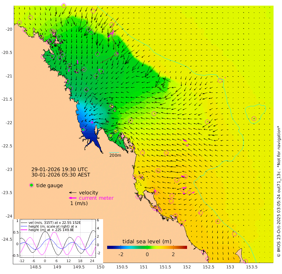 36cm/s -173T +10cm/s rms + 2cm/s 5T. Brampton I 18m 46cm/s 175T +9cm/s rms + 6cm/s 66T. Wigton I 38m 25cm/s -140T +7cm/s rms + 8cm/s 141T. Tern I 47m 63cm/s -163T +7cm/s rms + 12cm/s 54T. N Bugatti Rf 64m 82cm/s -147T +3cm/s rms + 13cm/s 178T. W Bugatti Rf 70m 29cm/s -158T +3cm/s rms + 3cm/s -130T. Creal Rf 69m 56cm/s -81T +7cm/s rms + 4cm/s 2T. North Rf 62m 52cm/s -29T +9cm/s rms + 2cm/s -56T. Cape Capricorn 26m 14cm/s -122T +5cm/s rms + 3cm/s 166T. L Musgrave I 42m 10cm/s -68T +9cm/s rms + 1cm/s -142T. Round Hill Hd 26m 8cm/s -91T +41cm/s rms + 48cm/s 116T. GBRELR 305m 49cm/s -66T +7cm/s rms + 6cm/s 123T. GBRCCH 92m 58cm/s -110T +8cm/s rms + 3cm/s -33T. GBRHIN 45m 33cm/s -95T +4cm/s rms + 2cm/s 41T. GBRHIS 46m 32cm/s -120T +16cm/s rms + 4cm/s -22T. GBROTE 59m 67cm Bell Cay 57cm Holbourne I 14cm Tern I 44cm Bugatti Rf 25cm Creal Rf 60cm White Tip I 120cm North Rf 143cm Rundle I 107cm L Musgrave I 73cm Saumarez Reef 68cm Kennedy Reef 81cm Unnamed Reef No. 2 55cm Abbot Point 47cm Bowen 24cm Tideway Reef 44cm Hayman Island 12cm Square Reef 50cm Double Bay 28cm Molle Island 15cm Cid Harbour 40cm Hook Island 14cm Border Island 6cm Haslewood Island 20cm Shute Harbour -2cm Thomas Island 15cm Credlin Reef -2cm East Repulse Island -16cm Blacksmith Island -25cm Laguna Quays 3cm Carlisle Island (Off) -13cm St. Bees Island -13cm Scawfell Island 5cm Penrith Island -16cm Mackay Outer Harbour -14cm Hay Point -5cm Prudhoe Island 44cm Middle Island (Percy Isles) 69cm Gannet Cay 88cm Elusive Reef -80cm Mcewin Islet 60cm Mumford Island 34cm Osborn Island 34cm Marquis Island 40cm Reef Point 59cm High Peak Island 114cm Port Clinton 121cm Peaked Island 128cm Karamea Bank 128cm Johnson Patch - NW 139cm Rosslyn Bay 143cm Middle Island (Keppel Isles) 136cm Port Alma 121cm Heron Island 140cm One Tree Islet 132cm Polmaise Reef 122cm Tryon Island 138cm Rock Cod Shoal 126cm Gatcombe Head 129cm Gladstone 136cm South Trees (Storm Surge) 134cm Clews Point 120cm Round Hill Head 105cm Lady Elliot Island 110cm Breaksea Spit 122cm Bundaberg (Burnett Heads) 120cm Elliot Heads 88cm Waddy Point (Fraser Island)