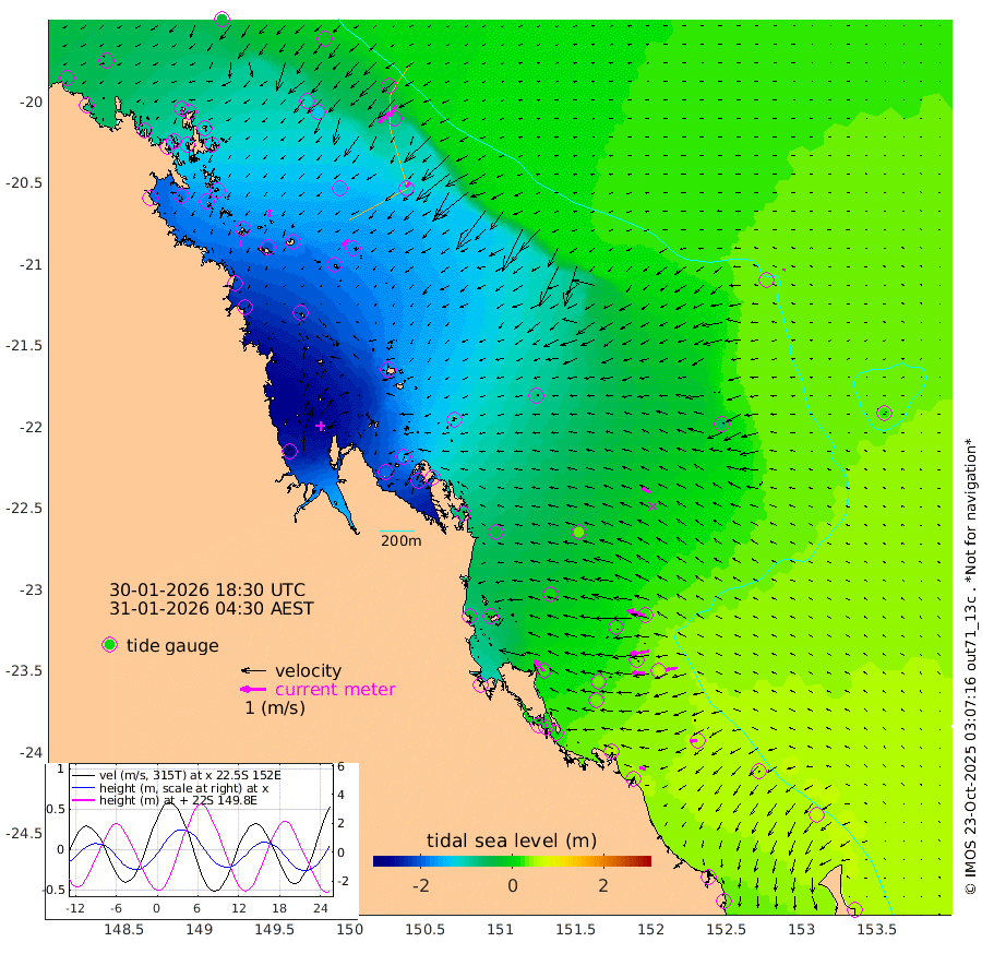 26cm/s -179T +10cm/s rms + 2cm/s 5T. Brampton I 18m 30cm/s -174T +9cm/s rms + 6cm/s 66T. Wigton I 38m 31cm/s -140T +7cm/s rms + 8cm/s 141T. Tern I 47m 50cm/s -150T +7cm/s rms + 12cm/s 54T. N Bugatti Rf 64m 50cm/s -139T +3cm/s rms + 13cm/s 178T. W Bugatti Rf 70m 25cm/s -134T +3cm/s rms + 3cm/s -130T. Creal Rf 69m 73cm/s -74T +7cm/s rms + 4cm/s 2T. North Rf 62m 57cm/s -37T +9cm/s rms + 2cm/s -56T. Cape Capricorn 26m 25cm/s -100T +5cm/s rms + 3cm/s 166T. L Musgrave I 42m 25cm/s -69T +9cm/s rms + 1cm/s -142T. Round Hill Hd 26m 10cm/s -83T +41cm/s rms + 48cm/s 116T. GBRELR 305m 37cm/s -62T +7cm/s rms + 6cm/s 123T. GBRCCH 92m 77cm/s -99T +8cm/s rms + 3cm/s -33T. GBRHIN 45m 50cm/s -91T +4cm/s rms + 2cm/s 41T. GBRHIS 46m 43cm/s -100T +16cm/s rms + 4cm/s -22T. GBROTE 59m -80cm Bell Cay -61cm Holbourne I -169cm Tern I -70cm Bugatti Rf -111cm Creal Rf -38cm White Tip I 25cm North Rf 21cm Rundle I 47cm L Musgrave I 19cm Saumarez Reef -36cm Kennedy Reef -18cm Unnamed Reef No. 2 -65cm Abbot Point -78cm Bowen -105cm Tideway Reef -88cm Hayman Island -140cm Square Reef -88cm Double Bay -114cm Molle Island -128cm Cid Harbour -90cm Hook Island -116cm Border Island -130cm Haslewood Island -122cm Shute Harbour -157cm Thomas Island -155cm Credlin Reef -180cm East Repulse Island -177cm Blacksmith Island -192cm Laguna Quays -177cm Carlisle Island (Off) -203cm St. Bees Island -181cm Scawfell Island -180cm Penrith Island -207cm Mackay Outer Harbour -217cm Hay Point -207cm Prudhoe Island -160cm Middle Island (Percy Isles) -63cm Gannet Cay 29cm Elusive Reef -303cm Mcewin Islet -158cm Mumford Island -195cm Osborn Island -206cm Marquis Island -180cm Reef Point -118cm High Peak Island -58cm Port Clinton -45cm Peaked Island 32cm Karamea Bank 3cm Johnson Patch - NW -19cm Rosslyn Bay -18cm Middle Island (Keppel Isles) -42cm Port Alma 33cm Heron Island 52cm One Tree Islet 34cm Polmaise Reef 20cm Tryon Island 32cm Rock Cod Shoal 11cm Gatcombe Head -8cm Gladstone 8cm South Trees (Storm Surge) 51cm Clews Point 44cm Round Hill Head 52cm Lady Elliot Island 62cm Breaksea Spit 40cm Bundaberg (Burnett Heads) 36cm Elliot Heads 52cm Waddy Point (Fraser Island)