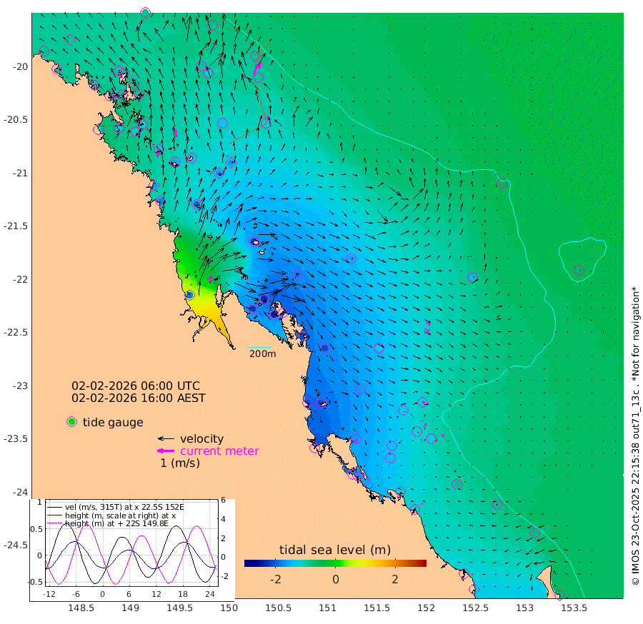 26cm/s 4T +10cm/s rms + 2cm/s 5T. Brampton I 18m 43cm/s -13T +9cm/s rms + 6cm/s 66T. Wigton I 38m 3cm/s -14T +7cm/s rms + 8cm/s 141T. Tern I 47m 48cm/s 11T +7cm/s rms + 12cm/s 54T. N Bugatti Rf 64m 63cm/s 24T +3cm/s rms + 13cm/s 178T. W Bugatti Rf 70m 19cm/s -20T +3cm/s rms + 3cm/s -130T. Creal Rf 69m 16cm/s 88T +7cm/s rms + 4cm/s 2T. North Rf 62m 22cm/s 173T +9cm/s rms + 2cm/s -56T. Cape Capricorn 26m 3cm/s 74T +5cm/s rms + 3cm/s 166T. L Musgrave I 42m 6cm/s -101T +9cm/s rms + 1cm/s -142T. Round Hill Hd 26m 2cm/s 32T +41cm/s rms + 48cm/s 116T. GBRELR 305m 30cm/s 116T +7cm/s rms + 6cm/s 123T. GBRCCH 92m 16cm/s 15T +8cm/s rms + 3cm/s -33T. GBRHIN 45m 6cm/s -70T +4cm/s rms + 2cm/s 41T. GBRHIS 46m 16cm/s -34T +16cm/s rms + 4cm/s -22T. GBROTE 59m -156cm Bell Cay -89cm Holbourne I -163cm Tern I -91cm Bugatti Rf -117cm Creal Rf -78cm White Tip I -120cm North Rf -161cm Rundle I -82cm L Musgrave I -59cm Saumarez Reef -79cm Kennedy Reef -80cm Unnamed Reef No. 2 -84cm Abbot Point -88cm Bowen -91cm Tideway Reef -101cm Hayman Island -115cm Square Reef -110cm Double Bay -90cm Molle Island -101cm Cid Harbour -96cm Hook Island -82cm Border Island -93cm Haslewood Island -104cm Shute Harbour -120cm Thomas Island -136cm Credlin Reef -128cm East Repulse Island -119cm Blacksmith Island -121cm Laguna Quays -136cm Carlisle Island (Off) -153cm St. Bees Island -136cm Scawfell Island -161cm Penrith Island -159cm Mackay Outer Harbour -176cm Hay Point -191cm Prudhoe Island -216cm Middle Island (Percy Isles) -145cm Gannet Cay -52cm Elusive Reef -179cm Mcewin Islet -233cm Mumford Island -224cm Osborn Island -237cm Marquis Island -215cm Reef Point -186cm High Peak Island -207cm Port Clinton -207cm Peaked Island -123cm Karamea Bank -167cm Johnson Patch - NW -197cm Rosslyn Bay -202cm Middle Island (Keppel Isles) -219cm Port Alma -117cm Heron Island -125cm One Tree Islet -136cm Polmaise Reef -129cm Tryon Island -134cm Rock Cod Shoal -152cm Gatcombe Head -173cm Gladstone -165cm South Trees (Storm Surge) -120cm Clews Point -106cm Round Hill Head -78cm Lady Elliot Island -72cm Breaksea Spit -110cm Bundaberg (Burnett Heads) -114cm Elliot Heads -57cm Waddy Point (Fraser Island)