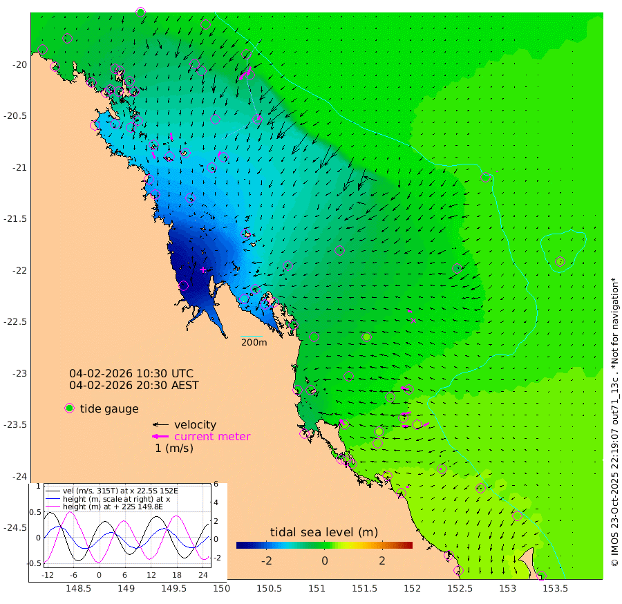 43cm/s 160T +10cm/s rms + 2cm/s 5T. Brampton I 18m 44cm/s 173T +9cm/s rms + 6cm/s 66T. Wigton I 38m 29cm/s -156T +7cm/s rms + 8cm/s 141T. Tern I 47m 57cm/s -159T +7cm/s rms + 12cm/s 54T. N Bugatti Rf 64m 61cm/s -145T +3cm/s rms + 13cm/s 178T. W Bugatti Rf 70m 29cm/s -158T +3cm/s rms + 3cm/s -130T. Creal Rf 69m 49cm/s -76T +7cm/s rms + 4cm/s 2T. North Rf 62m 46cm/s -38T +9cm/s rms + 2cm/s -56T. Cape Capricorn 26m 11cm/s -102T +5cm/s rms + 3cm/s 166T. L Musgrave I 42m 18cm/s -75T +9cm/s rms + 1cm/s -142T. Round Hill Hd 26m 7cm/s -153T +41cm/s rms + 48cm/s 116T. GBRELR 305m 26cm/s -75T +7cm/s rms + 6cm/s 123T. GBRCCH 92m 62cm/s -103T +8cm/s rms + 3cm/s -33T. GBRHIN 45m 38cm/s -93T +4cm/s rms + 2cm/s 41T. GBRHIS 46m 37cm/s -119T +16cm/s rms + 4cm/s -22T. GBROTE 59m -45cm Bell Cay -28cm Holbourne I -111cm Tern I -41cm Bugatti Rf -71cm Creal Rf -17cm White Tip I 25cm North Rf 33cm Rundle I 34cm L Musgrave I 37cm Saumarez Reef -2cm Kennedy Reef 0cm Unnamed Reef No. 2 -24cm Abbot Point -36cm Bowen -62cm Tideway Reef -48cm Hayman Island -77cm Square Reef -63cm Double Bay -85cm Molle Island -71cm Cid Harbour -58cm Hook Island -67cm Border Island -81cm Haslewood Island -77cm Shute Harbour -109cm Thomas Island -98cm Credlin Reef -127cm East Repulse Island -115cm Blacksmith Island -139cm Laguna Quays -122cm Carlisle Island (Off) -133cm St. Bees Island -115cm Scawfell Island -117cm Penrith Island -153cm Mackay Outer Harbour -159cm Hay Point -147cm Prudhoe Island -113cm Middle Island (Percy Isles) -38cm Gannet Cay 19cm Elusive Reef -266cm Mcewin Islet -80cm Mumford Island -119cm Osborn Island -131cm Marquis Island -111cm Reef Point -68cm High Peak Island -28cm Port Clinton 4cm Peaked Island 35cm Karamea Bank 15cm Johnson Patch - NW 12cm Rosslyn Bay 17cm Middle Island (Keppel Isles) 2cm Port Alma 32cm Heron Island 47cm One Tree Islet 42cm Polmaise Reef 22cm Tryon Island 36cm Rock Cod Shoal 25cm Gatcombe Head 18cm Gladstone 29cm South Trees (Storm Surge) 54cm Clews Point 42cm Round Hill Head 36cm Lady Elliot Island 34cm Breaksea Spit 45cm Bundaberg (Burnett Heads) 49cm Elliot Heads 25cm Waddy Point (Fraser Island)