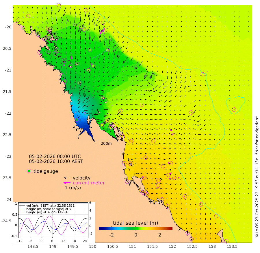 38cm/s 171T +10cm/s rms + 2cm/s 5T. Brampton I 18m 50cm/s 171T +9cm/s rms + 6cm/s 66T. Wigton I 38m 19cm/s -157T +7cm/s rms + 8cm/s 141T. Tern I 47m 59cm/s -163T +7cm/s rms + 12cm/s 54T. N Bugatti Rf 64m 72cm/s -149T +3cm/s rms + 13cm/s 178T. W Bugatti Rf 70m 28cm/s -171T +3cm/s rms + 3cm/s -130T. Creal Rf 69m 41cm/s -85T +7cm/s rms + 4cm/s 2T. North Rf 62m 38cm/s -31T +9cm/s rms + 2cm/s -56T. Cape Capricorn 26m 12cm/s -114T +5cm/s rms + 3cm/s 166T. L Musgrave I 42m 7cm/s -84T +9cm/s rms + 1cm/s -142T. Round Hill Hd 26m 5cm/s -126T +41cm/s rms + 48cm/s 116T. GBRELR 305m 36cm/s -70T +7cm/s rms + 6cm/s 123T. GBRCCH 92m 40cm/s -117T +8cm/s rms + 3cm/s -33T. GBRHIN 45m 22cm/s -96T +4cm/s rms + 2cm/s 41T. GBRHIS 46m 22cm/s -132T +16cm/s rms + 4cm/s -22T. GBROTE 59m 83cm Bell Cay 60cm Holbourne I 45cm Tern I 54cm Bugatti Rf 47cm Creal Rf 63cm White Tip I 114cm North Rf 140cm Rundle I 97cm L Musgrave I 83cm Saumarez Reef 66cm Kennedy Reef 71cm Unnamed Reef No. 2 56cm Abbot Point 50cm Bowen 38cm Tideway Reef 54cm Hayman Island 48cm Square Reef 47cm Double Bay 39cm Molle Island 36cm Cid Harbour 42cm Hook Island 27cm Border Island 24cm Haslewood Island 34cm Shute Harbour 21cm Thomas Island 36cm Credlin Reef 7cm East Repulse Island 18cm Blacksmith Island 2cm Laguna Quays 17cm Carlisle Island (Off) 16cm St. Bees Island 23cm Scawfell Island 43cm Penrith Island 14cm Mackay Outer Harbour 19cm Hay Point 36cm Prudhoe Island 81cm Middle Island (Percy Isles) 80cm Gannet Cay 69cm Elusive Reef -55cm Mcewin Islet 105cm Mumford Island 68cm Osborn Island 66cm Marquis Island 67cm Reef Point 84cm High Peak Island 124cm Port Clinton 142cm Peaked Island 117cm Karamea Bank 140cm Johnson Patch - NW 144cm Rosslyn Bay 149cm Middle Island (Keppel Isles) 150cm Port Alma 118cm Heron Island 135cm One Tree Islet 133cm Polmaise Reef 119cm Tryon Island 124cm Rock Cod Shoal 129cm Gatcombe Head 136cm Gladstone 137cm South Trees (Storm Surge) 129cm Clews Point 115cm Round Hill Head 95cm Lady Elliot Island 93cm Breaksea Spit 119cm Bundaberg (Burnett Heads) 126cm Elliot Heads 75cm Waddy Point (Fraser Island)