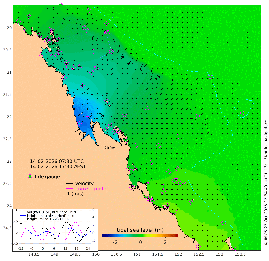 32cm/s 162T +10cm/s rms + 2cm/s 5T. Brampton I 18m 31cm/s 174T +9cm/s rms + 6cm/s 66T. Wigton I 38m 21cm/s -155T +7cm/s rms + 8cm/s 141T. Tern I 47m 43cm/s -159T +7cm/s rms + 12cm/s 54T. N Bugatti Rf 64m 43cm/s -145T +3cm/s rms + 13cm/s 178T. W Bugatti Rf 70m 22cm/s -155T +3cm/s rms + 3cm/s -130T. Creal Rf 69m 32cm/s -73T +7cm/s rms + 4cm/s 2T. North Rf 62m 31cm/s -40T +9cm/s rms + 2cm/s -56T. Cape Capricorn 26m 6cm/s -86T +5cm/s rms + 3cm/s 166T. L Musgrave I 42m 13cm/s -72T +9cm/s rms + 1cm/s -142T. Round Hill Hd 26m 4cm/s -159T +41cm/s rms + 48cm/s 116T. GBRELR 305m 15cm/s -79T +7cm/s rms + 6cm/s 123T. GBRCCH 92m 43cm/s -102T +8cm/s rms + 3cm/s -33T. GBRHIN 45m 27cm/s -93T +4cm/s rms + 2cm/s 41T. GBRHIS 46m 25cm/s -121T +16cm/s rms + 4cm/s -22T. GBROTE 59m -35cm Bell Cay -22cm Holbourne I -80cm Tern I -32cm Bugatti Rf -56cm Creal Rf -16cm White Tip I 11cm North Rf 18cm Rundle I 15cm L Musgrave I 4cm Saumarez Reef -2cm Kennedy Reef -3cm Unnamed Reef No. 2 -17cm Abbot Point -25cm Bowen -50cm Tideway Reef -32cm Hayman Island -68cm Square Reef -43cm Double Bay -48cm Molle Island -47cm Cid Harbour -42cm Hook Island -48cm Border Island -53cm Haslewood Island -54cm Shute Harbour -80cm Thomas Island -73cm Credlin Reef -79cm East Repulse Island -75cm Blacksmith Island -95cm Laguna Quays -78cm Carlisle Island (Off) -89cm St. Bees Island -72cm Scawfell Island -81cm Penrith Island -106cm Mackay Outer Harbour -111cm Hay Point -119cm Prudhoe Island -83cm Middle Island (Percy Isles) -24cm Gannet Cay 6cm Elusive Reef -166cm Mcewin Islet -58cm Mumford Island -69cm Osborn Island -75cm Marquis Island -62cm Reef Point -48cm High Peak Island -24cm Port Clinton -18cm Peaked Island 16cm Karamea Bank -1cm Johnson Patch - NW 4cm Rosslyn Bay 5cm Middle Island (Keppel Isles) 0cm Port Alma 16cm Heron Island 17cm One Tree Islet 18cm Polmaise Reef 9cm Tryon Island 22cm Rock Cod Shoal 15cm Gatcombe Head 11cm Gladstone 18cm South Trees (Storm Surge) 28cm Clews Point 22cm Round Hill Head 14cm Lady Elliot Island 15cm Breaksea Spit 27cm Bundaberg (Burnett Heads) 32cm Elliot Heads 6cm Waddy Point (Fraser Island)