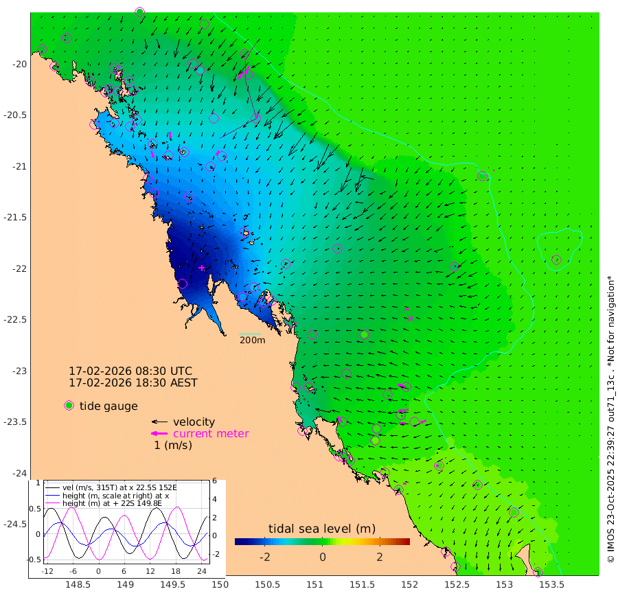 42cm/s 162T +10cm/s rms + 2cm/s 5T. Brampton I 18m 37cm/s 174T +9cm/s rms + 6cm/s 66T. Wigton I 38m 30cm/s -154T +7cm/s rms + 8cm/s 141T. Tern I 47m 55cm/s -156T +7cm/s rms + 12cm/s 54T. N Bugatti Rf 64m 58cm/s -145T +3cm/s rms + 13cm/s 178T. W Bugatti Rf 70m 27cm/s -152T +3cm/s rms + 3cm/s -130T. Creal Rf 69m 53cm/s -74T +7cm/s rms + 4cm/s 2T. North Rf 62m 45cm/s -41T +9cm/s rms + 2cm/s -56T. Cape Capricorn 26m 15cm/s -92T +5cm/s rms + 3cm/s 166T. L Musgrave I 42m 19cm/s -78T +9cm/s rms + 1cm/s -142T. Round Hill Hd 26m 7cm/s -149T +41cm/s rms + 48cm/s 116T. GBRELR 305m 25cm/s -77T +7cm/s rms + 6cm/s 123T. GBRCCH 92m 66cm/s -99T +8cm/s rms + 3cm/s -33T. GBRHIN 45m 40cm/s -93T +4cm/s rms + 2cm/s 41T. GBRHIS 46m 38cm/s -116T +16cm/s rms + 4cm/s -22T. GBROTE 59m -70cm Bell Cay -33cm Holbourne I -139cm Tern I -51cm Bugatti Rf -91cm Creal Rf -23cm White Tip I 12cm North Rf 15cm Rundle I 25cm L Musgrave I 22cm Saumarez Reef -13cm Kennedy Reef 1cm Unnamed Reef No. 2 -23cm Abbot Point -36cm Bowen -71cm Tideway Reef -54cm Hayman Island -103cm Square Reef -50cm Double Bay -85cm Molle Island -82cm Cid Harbour -64cm Hook Island -80cm Border Island -86cm Haslewood Island -85cm Shute Harbour -126cm Thomas Island -117cm Credlin Reef -130cm East Repulse Island -132cm Blacksmith Island -156cm Laguna Quays -129cm Carlisle Island (Off) -140cm St. Bees Island -128cm Scawfell Island -146cm Penrith Island -179cm Mackay Outer Harbour -189cm Hay Point -187cm Prudhoe Island -157cm Middle Island (Percy Isles) -60cm Gannet Cay 19cm Elusive Reef -297cm Mcewin Islet -133cm Mumford Island -163cm Osborn Island -168cm Marquis Island -142cm Reef Point -96cm High Peak Island -58cm Port Clinton -34cm Peaked Island 24cm Karamea Bank -16cm Johnson Patch - NW -15cm Rosslyn Bay -9cm Middle Island (Keppel Isles) -30cm Port Alma 20cm Heron Island 24cm One Tree Islet 19cm Polmaise Reef 4cm Tryon Island 29cm Rock Cod Shoal 5cm Gatcombe Head -6cm Gladstone 7cm South Trees (Storm Surge) 33cm Clews Point 27cm Round Hill Head 27cm Lady Elliot Island 27cm Breaksea Spit 31cm Bundaberg (Burnett Heads) 35cm Elliot Heads 18cm Waddy Point (Fraser Island)