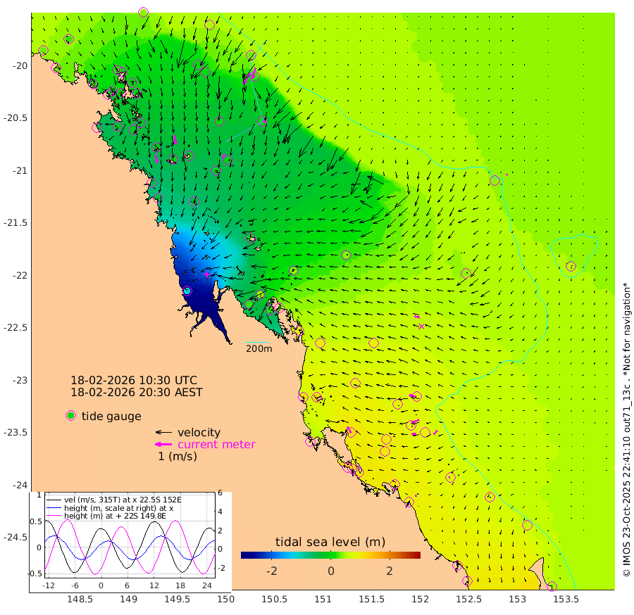 50cm/s 166T +10cm/s rms + 2cm/s 5T. Brampton I 18m 57cm/s 170T +9cm/s rms + 6cm/s 66T. Wigton I 38m 25cm/s -161T +7cm/s rms + 8cm/s 141T. Tern I 47m 69cm/s -163T +7cm/s rms + 12cm/s 54T. N Bugatti Rf 64m 80cm/s -149T +3cm/s rms + 13cm/s 178T. W Bugatti Rf 70m 32cm/s -173T +3cm/s rms + 3cm/s -130T. Creal Rf 69m 44cm/s -79T +7cm/s rms + 4cm/s 2T. North Rf 62m 44cm/s -33T +9cm/s rms + 2cm/s -56T. Cape Capricorn 26m 9cm/s -98T +5cm/s rms + 3cm/s 166T. L Musgrave I 42m 10cm/s -80T +9cm/s rms + 1cm/s -142T. Round Hill Hd 26m 7cm/s -164T +41cm/s rms + 48cm/s 116T. GBRELR 305m 33cm/s -75T +7cm/s rms + 6cm/s 123T. GBRCCH 92m 53cm/s -112T +8cm/s rms + 3cm/s -33T. GBRHIN 45m 28cm/s -97T +4cm/s rms + 2cm/s 41T. GBRHIS 46m 31cm/s -138T +16cm/s rms + 4cm/s -22T. GBROTE 59m 42cm Bell Cay 27cm Holbourne I -5cm Tern I 19cm Bugatti Rf 4cm Creal Rf 31cm White Tip I 80cm North Rf 107cm Rundle I 67cm L Musgrave I 61cm Saumarez Reef 41cm Kennedy Reef 48cm Unnamed Reef No. 2 36cm Abbot Point 28cm Bowen 5cm Tideway Reef 24cm Hayman Island 0cm Square Reef 19cm Double Bay -13cm Molle Island 9cm Cid Harbour 7cm Hook Island -2cm Border Island -2cm Haslewood Island 1cm Shute Harbour -21cm Thomas Island 1cm Credlin Reef -17cm East Repulse Island -17cm Blacksmith Island -42cm Laguna Quays -11cm Carlisle Island (Off) -2cm St. Bees Island -4cm Scawfell Island -6cm Penrith Island -38cm Mackay Outer Harbour -36cm Hay Point -29cm Prudhoe Island 7cm Middle Island (Percy Isles) 42cm Gannet Cay 43cm Elusive Reef -121cm Mcewin Islet 48cm Mumford Island 23cm Osborn Island 28cm Marquis Island 32cm Reef Point 43cm High Peak Island 76cm Port Clinton 102cm Peaked Island 91cm Karamea Bank 88cm Johnson Patch - NW 109cm Rosslyn Bay 117cm Middle Island (Keppel Isles) 114cm Port Alma 85cm Heron Island 91cm One Tree Islet 97cm Polmaise Reef 83cm Tryon Island 103cm Rock Cod Shoal 96cm Gatcombe Head 103cm Gladstone 107cm South Trees (Storm Surge) 98cm Clews Point 86cm Round Hill Head 66cm Lady Elliot Island 59cm Breaksea Spit 92cm Bundaberg (Burnett Heads) 102cm Elliot Heads 44cm Waddy Point (Fraser Island)