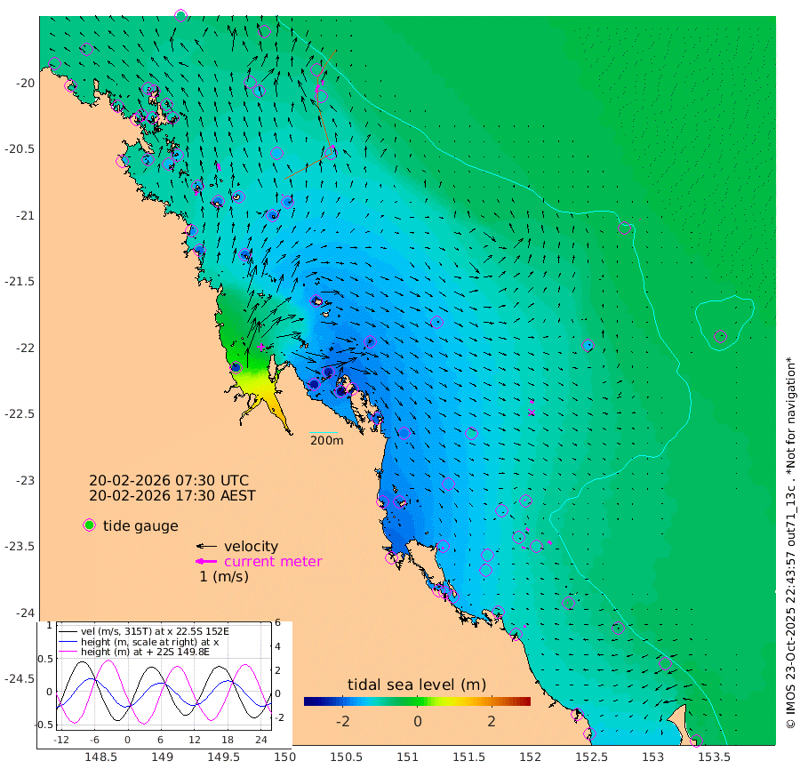 17cm/s 10T +10cm/s rms + 2cm/s 5T. Brampton I 18m 33cm/s -14T +9cm/s rms + 6cm/s 66T. Wigton I 38m 4cm/s -116T +7cm/s rms + 8cm/s 141T. Tern I 47m 27cm/s 1T +7cm/s rms + 12cm/s 54T. N Bugatti Rf 64m 38cm/s 22T +3cm/s rms + 13cm/s 178T. W Bugatti Rf 70m 18cm/s -28T +3cm/s rms + 3cm/s -130T. Creal Rf 69m 7cm/s -24T +7cm/s rms + 4cm/s 2T. North Rf 62m 9cm/s -160T +9cm/s rms + 2cm/s -56T. Cape Capricorn 26m 4cm/s -86T +5cm/s rms + 3cm/s 166T. L Musgrave I 42m 11cm/s -79T +9cm/s rms + 1cm/s -142T. Round Hill Hd 26m 1cm/s -48T +41cm/s rms + 48cm/s 116T. GBRELR 305m 17cm/s 112T +7cm/s rms + 6cm/s 123T. GBRCCH 92m 16cm/s -59T +8cm/s rms + 3cm/s -33T. GBRHIN 45m 16cm/s -80T +4cm/s rms + 2cm/s 41T. GBRHIS 46m 21cm/s -54T +16cm/s rms + 4cm/s -22T. GBROTE 59m -155cm Bell Cay -84cm Holbourne I -172cm Tern I -96cm Bugatti Rf -125cm Creal Rf -78cm White Tip I -110cm North Rf -145cm Rundle I -74cm L Musgrave I -56cm Saumarez Reef -79cm Kennedy Reef -72cm Unnamed Reef No. 2 -82cm Abbot Point -87cm Bowen -96cm Tideway Reef -106cm Hayman Island -125cm Square Reef -98cm Double Bay -103cm Molle Island -119cm Cid Harbour -98cm Hook Island -97cm Border Island -109cm Haslewood Island -112cm Shute Harbour -132cm Thomas Island -149cm Credlin Reef -148cm East Repulse Island -147cm Blacksmith Island -141cm Laguna Quays -155cm Carlisle Island (Off) -182cm St. Bees Island -159cm Scawfell Island -180cm Penrith Island -178cm Mackay Outer Harbour -193cm Hay Point -192cm Prudhoe Island -219cm Middle Island (Percy Isles) -146cm Gannet Cay -48cm Elusive Reef -223cm Mcewin Islet -236cm Mumford Island -246cm Osborn Island -264cm Marquis Island -235cm Reef Point -190cm High Peak Island -193cm Port Clinton -187cm Peaked Island -109cm Karamea Bank -157cm Johnson Patch - NW -184cm Rosslyn Bay -184cm Middle Island (Keppel Isles) -210cm Port Alma -109cm Heron Island -107cm One Tree Islet -121cm Polmaise Reef -125cm Tryon Island -121cm Rock Cod Shoal -142cm Gatcombe Head -166cm Gladstone -155cm South Trees (Storm Surge) -105cm Clews Point -97cm Round Hill Head -69cm Lady Elliot Island -65cm Breaksea Spit -104cm Bundaberg (Burnett Heads) -114cm Elliot Heads -50cm Waddy Point (Fraser Island)