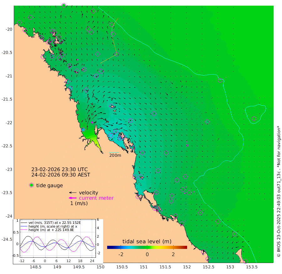 7cm/s 63T +10cm/s rms + 2cm/s 5T. Brampton I 18m 10cm/s -3T +9cm/s rms + 6cm/s 66T. Wigton I 38m 5cm/s -176T +7cm/s rms + 8cm/s 141T. Tern I 47m 8cm/s 4T +7cm/s rms + 12cm/s 54T. N Bugatti Rf 64m 9cm/s 25T +3cm/s rms + 13cm/s 178T. W Bugatti Rf 70m 3cm/s -91T +3cm/s rms + 3cm/s -130T. Creal Rf 69m 0cm/s 47T +7cm/s rms + 4cm/s 2T. North Rf 62m 8cm/s -162T +9cm/s rms + 2cm/s -56T. Cape Capricorn 26m 8cm/s -79T +5cm/s rms + 3cm/s 166T. L Musgrave I 42m 5cm/s -98T +9cm/s rms + 1cm/s -142T. Round Hill Hd 26m 2cm/s 146T +41cm/s rms + 48cm/s 116T. GBRELR 305m 8cm/s 141T +7cm/s rms + 6cm/s 123T. GBRCCH 92m 9cm/s -76T +8cm/s rms + 3cm/s -33T. GBRHIN 45m 10cm/s -91T +4cm/s rms + 2cm/s 41T. GBRHIS 46m 9cm/s -94T +16cm/s rms + 4cm/s -22T. GBROTE 59m -64cm Bell Cay -22cm Holbourne I -74cm Tern I -30cm Bugatti Rf -47cm Creal Rf -19cm White Tip I -38cm North Rf -55cm Rundle I -22cm L Musgrave I 1cm Saumarez Reef -16cm Kennedy Reef -17cm Unnamed Reef No. 2 -20cm Abbot Point -24cm Bowen -28cm Tideway Reef -32cm Hayman Island -32cm Square Reef -38cm Double Bay -36cm Molle Island -39cm Cid Harbour -34cm Hook Island -35cm Border Island -41cm Haslewood Island -41cm Shute Harbour -52cm Thomas Island -60cm Credlin Reef -70cm East Repulse Island -56cm Blacksmith Island -64cm Laguna Quays -72cm Carlisle Island (Off) -71cm St. Bees Island -67cm Scawfell Island -77cm Penrith Island -85cm Mackay Outer Harbour -94cm Hay Point -85cm Prudhoe Island -100cm Middle Island (Percy Isles) -68cm Gannet Cay -10cm Elusive Reef -149cm Mcewin Islet -101cm Mumford Island -124cm Osborn Island -134cm Marquis Island -116cm Reef Point -85cm High Peak Island -86cm Port Clinton -65cm Peaked Island -39cm Karamea Bank -55cm Johnson Patch - NW -76cm Rosslyn Bay -73cm Middle Island (Keppel Isles) -89cm Port Alma -36cm Heron Island -33cm One Tree Islet -40cm Polmaise Reef -41cm Tryon Island -48cm Rock Cod Shoal -56cm Gatcombe Head -69cm Gladstone -62cm South Trees (Storm Surge) -34cm Clews Point -33cm Round Hill Head -18cm Lady Elliot Island -17cm Breaksea Spit -33cm Bundaberg (Burnett Heads) -32cm Elliot Heads -14cm Waddy Point (Fraser Island)