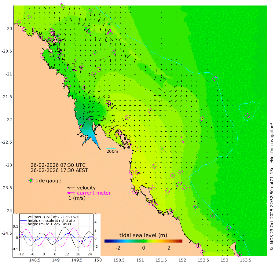 24cm/s 168T +10cm/s rms + 2cm/s 5T. Brampton I 18m 26cm/s 167T +9cm/s rms + 6cm/s 66T. Wigton I 38m 7cm/s -175T +7cm/s rms + 8cm/s 141T. Tern I 47m 37cm/s -165T +7cm/s rms + 12cm/s 54T. N Bugatti Rf 64m 42cm/s -154T +3cm/s rms + 13cm/s 178T. W Bugatti Rf 70m 12cm/s -179T +3cm/s rms + 3cm/s -130T. Creal Rf 69m 11cm/s -70T +7cm/s rms + 4cm/s 2T. North Rf 62m 15cm/s -22T +9cm/s rms + 2cm/s -56T. Cape Capricorn 26m 2cm/s -21T +5cm/s rms + 3cm/s 166T. L Musgrave I 42m 3cm/s -39T +9cm/s rms + 1cm/s -142T. Round Hill Hd 26m 3cm/s 171T +41cm/s rms + 48cm/s 116T. GBRELR 305m 11cm/s -72T +7cm/s rms + 6cm/s 123T. GBRCCH 92m 12cm/s -137T +8cm/s rms + 3cm/s -33T. GBRHIN 45m 1cm/s -112T +4cm/s rms + 2cm/s 41T. GBRHIS 46m 9cm/s 163T +16cm/s rms + 4cm/s -22T. GBROTE 59m 43cm Bell Cay 30cm Holbourne I 40cm Tern I 20cm Bugatti Rf 23cm Creal Rf 18cm White Tip I 33cm North Rf 54cm Rundle I 17cm L Musgrave I 0cm Saumarez Reef 29cm Kennedy Reef 27cm Unnamed Reef No. 2 31cm Abbot Point 30cm Bowen 18cm Tideway Reef 30cm Hayman Island 14cm Square Reef 44cm Double Bay 28cm Molle Island 24cm Cid Harbour 26cm Hook Island 15cm Border Island 22cm Haslewood Island 27cm Shute Harbour 22cm Thomas Island 27cm Credlin Reef 34cm East Repulse Island 22cm Blacksmith Island 22cm Laguna Quays 36cm Carlisle Island (Off) 35cm St. Bees Island 34cm Scawfell Island 37cm Penrith Island 33cm Mackay Outer Harbour 38cm Hay Point 36cm Prudhoe Island 57cm Middle Island (Percy Isles) 46cm Gannet Cay 8cm Elusive Reef 36cm Mcewin Islet 70cm Mumford Island 69cm Osborn Island 74cm Marquis Island 69cm Reef Point 55cm High Peak Island 68cm Port Clinton 59cm Peaked Island 36cm Karamea Bank 43cm Johnson Patch - NW 67cm Rosslyn Bay 68cm Middle Island (Keppel Isles) 77cm Port Alma 31cm Heron Island 29cm One Tree Islet 39cm Polmaise Reef 30cm Tryon Island 46cm Rock Cod Shoal 51cm Gatcombe Head 59cm Gladstone 57cm South Trees (Storm Surge) 35cm Clews Point 28cm Round Hill Head 11cm Lady Elliot Island 8cm Breaksea Spit 33cm Bundaberg (Burnett Heads) 35cm Elliot Heads 1cm Waddy Point (Fraser Island)