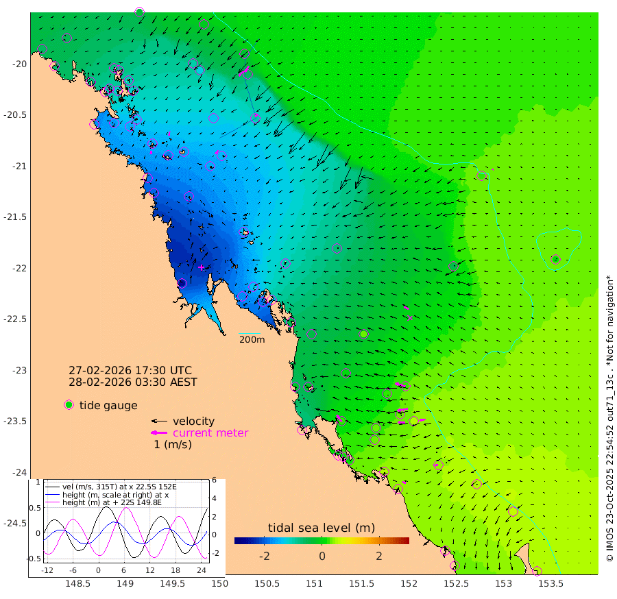 22cm/s -177T +10cm/s rms + 2cm/s 5T. Brampton I 18m 26cm/s -171T +9cm/s rms + 6cm/s 66T. Wigton I 38m 28cm/s -139T +7cm/s rms + 8cm/s 141T. Tern I 47m 43cm/s -147T +7cm/s rms + 12cm/s 54T. N Bugatti Rf 64m 40cm/s -138T +3cm/s rms + 13cm/s 178T. W Bugatti Rf 70m 22cm/s -129T +3cm/s rms + 3cm/s -130T. Creal Rf 69m 64cm/s -75T +7cm/s rms + 4cm/s 2T. North Rf 62m 51cm/s -37T +9cm/s rms + 2cm/s -56T. Cape Capricorn 26m 19cm/s -103T +5cm/s rms + 3cm/s 166T. L Musgrave I 42m 21cm/s -69T +9cm/s rms + 1cm/s -142T. Round Hill Hd 26m 9cm/s -79T +41cm/s rms + 48cm/s 116T. GBRELR 305m 32cm/s -62T +7cm/s rms + 6cm/s 123T. GBRCCH 92m 67cm/s -99T +8cm/s rms + 3cm/s -33T. GBRHIN 45m 44cm/s -91T +4cm/s rms + 2cm/s 41T. GBRHIS 46m 38cm/s -98T +16cm/s rms + 4cm/s -22T. GBROTE 59m -69cm Bell Cay -55cm Holbourne I -150cm Tern I -61cm Bugatti Rf -98cm Creal Rf -33cm White Tip I 24cm North Rf 21cm Rundle I 44cm L Musgrave I 16cm Saumarez Reef -33cm Kennedy Reef -16cm Unnamed Reef No. 2 -61cm Abbot Point -72cm Bowen -95cm Tideway Reef -81cm Hayman Island -127cm Square Reef -76cm Double Bay -99cm Molle Island -116cm Cid Harbour -79cm Hook Island -104cm Border Island -117cm Haslewood Island -109cm Shute Harbour -140cm Thomas Island -140cm Credlin Reef -161cm East Repulse Island -158cm Blacksmith Island -169cm Laguna Quays -157cm Carlisle Island (Off) -182cm St. Bees Island -161cm Scawfell Island -158cm Penrith Island -182cm Mackay Outer Harbour -190cm Hay Point -182cm Prudhoe Island -135cm Middle Island (Percy Isles) -51cm Gannet Cay 27cm Elusive Reef -256cm Mcewin Islet -139cm Mumford Island -171cm Osborn Island -179cm Marquis Island -158cm Reef Point -101cm High Peak Island -47cm Port Clinton -42cm Peaked Island 30cm Karamea Bank 7cm Johnson Patch - NW -14cm Rosslyn Bay -15cm Middle Island (Keppel Isles) -33cm Port Alma 33cm Heron Island 49cm One Tree Islet 33cm Polmaise Reef 20cm Tryon Island 30cm Rock Cod Shoal 14cm Gatcombe Head -2cm Gladstone 12cm South Trees (Storm Surge) 48cm Clews Point 42cm Round Hill Head 49cm Lady Elliot Island 59cm Breaksea Spit 39cm Bundaberg (Burnett Heads) 35cm Elliot Heads 49cm Waddy Point (Fraser Island)