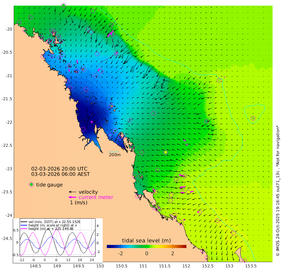 39cm/s 171T +10cm/s rms + 2cm/s 5T. Brampton I 18m 43cm/s 179T +9cm/s rms + 6cm/s 66T. Wigton I 38m 37cm/s -147T +7cm/s rms + 8cm/s 141T. Tern I 47m 69cm/s -153T +7cm/s rms + 12cm/s 54T. N Bugatti Rf 64m 73cm/s -144T +3cm/s rms + 13cm/s 178T. W Bugatti Rf 70m 32cm/s -145T +3cm/s rms + 3cm/s -130T. Creal Rf 69m 78cm/s -76T +7cm/s rms + 4cm/s 2T. North Rf 62m 61cm/s -38T +9cm/s rms + 2cm/s -56T. Cape Capricorn 26m 24cm/s -97T +5cm/s rms + 3cm/s 166T. L Musgrave I 42m 25cm/s -69T +9cm/s rms + 1cm/s -142T. Round Hill Hd 26m 9cm/s -101T +41cm/s rms + 48cm/s 116T. GBRELR 305m 40cm/s -67T +7cm/s rms + 6cm/s 123T. GBRCCH 92m 81cm/s -102T +8cm/s rms + 3cm/s -33T. GBRHIN 45m 52cm/s -92T +4cm/s rms + 2cm/s 41T. GBRHIS 46m 45cm/s -106T +16cm/s rms + 4cm/s -22T. GBROTE 59m -60cm Bell Cay -29cm Holbourne I -150cm Tern I -47cm Bugatti Rf -94cm Creal Rf -12cm White Tip I 45cm North Rf 48cm Rundle I 61cm L Musgrave I 38cm Saumarez Reef -4cm Kennedy Reef 12cm Unnamed Reef No. 2 -29cm Abbot Point -44cm Bowen -80cm Tideway Reef -56cm Hayman Island -109cm Square Reef -61cm Double Bay -80cm Molle Island -98cm Cid Harbour -68cm Hook Island -93cm Border Island -107cm Haslewood Island -97cm Shute Harbour -139cm Thomas Island -136cm Credlin Reef -164cm East Repulse Island -155cm Blacksmith Island -178cm Laguna Quays -161cm Carlisle Island (Off) -190cm St. Bees Island -158cm Scawfell Island -156cm Penrith Island -197cm Mackay Outer Harbour -208cm Hay Point -197cm Prudhoe Island -146cm Middle Island (Percy Isles) -48cm Gannet Cay 44cm Elusive Reef -332cm Mcewin Islet -124cm Mumford Island -173cm Osborn Island -190cm Marquis Island -158cm Reef Point -98cm High Peak Island -39cm Port Clinton -16cm Peaked Island 52cm Karamea Bank 25cm Johnson Patch - NW 9cm Rosslyn Bay 13cm Middle Island (Keppel Isles) -13cm Port Alma 53cm Heron Island 75cm One Tree Islet 58cm Polmaise Reef 41cm Tryon Island 54cm Rock Cod Shoal 35cm Gatcombe Head 16cm Gladstone 33cm South Trees (Storm Surge) 74cm Clews Point 61cm Round Hill Head 63cm Lady Elliot Island 72cm Breaksea Spit 60cm Bundaberg (Burnett Heads) 61cm Elliot Heads 58cm Waddy Point (Fraser Island)