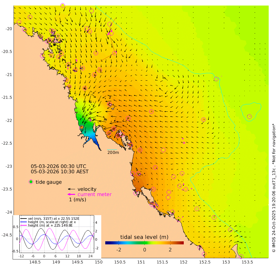 21cm/s 177T +10cm/s rms + 2cm/s 5T. Brampton I 18m 35cm/s 164T +9cm/s rms + 6cm/s 66T. Wigton I 38m 4cm/s 98T +7cm/s rms + 8cm/s 141T. Tern I 47m 33cm/s -177T +7cm/s rms + 12cm/s 54T. N Bugatti Rf 64m 48cm/s -154T +3cm/s rms + 13cm/s 178T. W Bugatti Rf 70m 19cm/s 156T +3cm/s rms + 3cm/s -130T. Creal Rf 69m 8cm/s -174T +7cm/s rms + 4cm/s 2T. North Rf 62m 11cm/s 10T +9cm/s rms + 2cm/s -56T. Cape Capricorn 26m 3cm/s 164T +5cm/s rms + 3cm/s 166T. L Musgrave I 42m 10cm/s 114T +9cm/s rms + 1cm/s -142T. Round Hill Hd 26m 2cm/s 167T +41cm/s rms + 48cm/s 116T. GBRELR 305m 19cm/s -72T +7cm/s rms + 6cm/s 123T. GBRCCH 92m 15cm/s 134T +8cm/s rms + 3cm/s -33T. GBRHIN 45m 12cm/s 97T +4cm/s rms + 2cm/s 41T. GBRHIS 46m 14cm/s 128T +16cm/s rms + 4cm/s -22T. GBROTE 59m 161cm Bell Cay 109cm Holbourne I 176cm Tern I 108cm Bugatti Rf 134cm Creal Rf 93cm White Tip I 121cm North Rf 157cm Rundle I 84cm L Musgrave I 75cm Saumarez Reef 92cm Kennedy Reef 89cm Unnamed Reef No. 2 98cm Abbot Point 102cm Bowen 110cm Tideway Reef 116cm Hayman Island 143cm Square Reef 123cm Double Bay 117cm Molle Island 117cm Cid Harbour 113cm Hook Island 104cm Border Island 112cm Haslewood Island 120cm Shute Harbour 134cm Thomas Island 150cm Credlin Reef 134cm East Repulse Island 135cm Blacksmith Island 139cm Laguna Quays 149cm Carlisle Island (Off) 163cm St. Bees Island 147cm Scawfell Island 176cm Penrith Island 173cm Mackay Outer Harbour 187cm Hay Point 206cm Prudhoe Island 229cm Middle Island (Percy Isles) 148cm Gannet Cay 60cm Elusive Reef 191cm Mcewin Islet 239cm Mumford Island 224cm Osborn Island 235cm Marquis Island 211cm Reef Point 189cm High Peak Island 207cm Port Clinton 206cm Peaked Island 119cm Karamea Bank 171cm Johnson Patch - NW 192cm Rosslyn Bay 194cm Middle Island (Keppel Isles) 216cm Port Alma 118cm Heron Island 127cm One Tree Islet 136cm Polmaise Reef 125cm Tryon Island 127cm Rock Cod Shoal 150cm Gatcombe Head 173cm Gladstone 162cm South Trees (Storm Surge) 117cm Clews Point 106cm Round Hill Head 78cm Lady Elliot Island 70cm Breaksea Spit 113cm Bundaberg (Burnett Heads) 119cm Elliot Heads 55cm Waddy Point (Fraser Island)