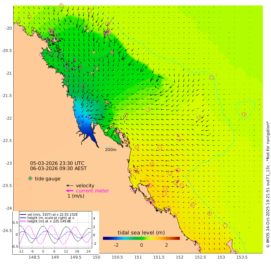 38cm/s 167T +10cm/s rms + 2cm/s 5T. Brampton I 18m 49cm/s 170T +9cm/s rms + 6cm/s 66T. Wigton I 38m 19cm/s -164T +7cm/s rms + 8cm/s 141T. Tern I 47m 57cm/s -163T +7cm/s rms + 12cm/s 54T. N Bugatti Rf 64m 69cm/s -149T +3cm/s rms + 13cm/s 178T. W Bugatti Rf 70m 29cm/s -175T +3cm/s rms + 3cm/s -130T. Creal Rf 69m 36cm/s -83T +7cm/s rms + 4cm/s 2T. North Rf 62m 35cm/s -32T +9cm/s rms + 2cm/s -56T. Cape Capricorn 26m 12cm/s -103T +5cm/s rms + 3cm/s 166T. L Musgrave I 42m 7cm/s -75T +9cm/s rms + 1cm/s -142T. Round Hill Hd 26m 5cm/s -146T +41cm/s rms + 48cm/s 116T. GBRELR 305m 30cm/s -73T +7cm/s rms + 6cm/s 123T. GBRCCH 92m 37cm/s -117T +8cm/s rms + 3cm/s -33T. GBRHIN 45m 20cm/s -98T +4cm/s rms + 2cm/s 41T. GBRHIS 46m 22cm/s -140T +16cm/s rms + 4cm/s -22T. GBROTE 59m 72cm Bell Cay 48cm Holbourne I 36cm Tern I 43cm Bugatti Rf 37cm Creal Rf 50cm White Tip I 97cm North Rf 123cm Rundle I 81cm L Musgrave I 73cm Saumarez Reef 57cm Kennedy Reef 57cm Unnamed Reef No. 2 46cm Abbot Point 41cm Bowen 29cm Tideway Reef 45cm Hayman Island 40cm Square Reef 29cm Double Bay 27cm Molle Island 32cm Cid Harbour 29cm Hook Island 22cm Border Island 19cm Haslewood Island 26cm Shute Harbour 14cm Thomas Island 29cm Credlin Reef 0cm East Repulse Island 16cm Blacksmith Island -4cm Laguna Quays 10cm Carlisle Island (Off) 8cm St. Bees Island 16cm Scawfell Island 37cm Penrith Island 7cm Mackay Outer Harbour 11cm Hay Point 26cm Prudhoe Island 68cm Middle Island (Percy Isles) 68cm Gannet Cay 54cm Elusive Reef -62cm Mcewin Islet 96cm Mumford Island 63cm Osborn Island 58cm Marquis Island 62cm Reef Point 73cm High Peak Island 106cm Port Clinton 126cm Peaked Island 100cm Karamea Bank 121cm Johnson Patch - NW 128cm Rosslyn Bay 132cm Middle Island (Keppel Isles) 135cm Port Alma 101cm Heron Island 114cm One Tree Islet 116cm Polmaise Reef 102cm Tryon Island 106cm Rock Cod Shoal 113cm Gatcombe Head 120cm Gladstone 122cm South Trees (Storm Surge) 112cm Clews Point 98cm Round Hill Head 79cm Lady Elliot Island 75cm Breaksea Spit 104cm Bundaberg (Burnett Heads) 113cm Elliot Heads 58cm Waddy Point (Fraser Island)