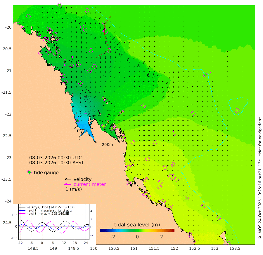 24cm/s 160T +10cm/s rms + 2cm/s 5T. Brampton I 18m 31cm/s 168T +9cm/s rms + 6cm/s 66T. Wigton I 38m 11cm/s -178T +7cm/s rms + 8cm/s 141T. Tern I 47m 31cm/s -165T +7cm/s rms + 12cm/s 54T. N Bugatti Rf 64m 35cm/s -148T +3cm/s rms + 13cm/s 178T. W Bugatti Rf 70m 20cm/s 179T +3cm/s rms + 3cm/s -130T. Creal Rf 69m 17cm/s -81T +7cm/s rms + 4cm/s 2T. North Rf 62m 18cm/s -38T +9cm/s rms + 2cm/s -56T. Cape Capricorn 26m 6cm/s -99T +5cm/s rms + 3cm/s 166T. L Musgrave I 42m 5cm/s -77T +9cm/s rms + 1cm/s -142T. Round Hill Hd 26m 3cm/s -173T +41cm/s rms + 48cm/s 116T. GBRELR 305m 15cm/s -80T +7cm/s rms + 6cm/s 123T. GBRCCH 92m 20cm/s -117T +8cm/s rms + 3cm/s -33T. GBRHIN 45m 12cm/s -100T +4cm/s rms + 2cm/s 41T. GBRHIS 46m 15cm/s -149T +16cm/s rms + 4cm/s -22T. GBROTE 59m 37cm Bell Cay 15cm Holbourne I 14cm Tern I 18cm Bugatti Rf 17cm Creal Rf 20cm White Tip I 52cm North Rf 67cm Rundle I 44cm L Musgrave I 45cm Saumarez Reef 26cm Kennedy Reef 21cm Unnamed Reef No. 2 15cm Abbot Point 12cm Bowen 7cm Tideway Reef 17cm Hayman Island 18cm Square Reef -9cm Double Bay 4cm Molle Island 17cm Cid Harbour 3cm Hook Island 9cm Border Island 7cm Haslewood Island 5cm Shute Harbour 1cm Thomas Island 11cm Credlin Reef -8cm East Repulse Island 10cm Blacksmith Island -10cm Laguna Quays -2cm Carlisle Island (Off) -2cm St. Bees Island 4cm Scawfell Island 18cm Penrith Island -3cm Mackay Outer Harbour -1cm Hay Point 2cm Prudhoe Island 33cm Middle Island (Percy Isles) 36cm Gannet Cay 24cm Elusive Reef -44cm Mcewin Islet 52cm Mumford Island 39cm Osborn Island 36cm Marquis Island 38cm Reef Point 40cm High Peak Island 53cm Port Clinton 67cm Peaked Island 53cm Karamea Bank 69cm Johnson Patch - NW 71cm Rosslyn Bay 72cm Middle Island (Keppel Isles) 78cm Port Alma 57cm Heron Island 60cm One Tree Islet 65cm Polmaise Reef 60cm Tryon Island 58cm Rock Cod Shoal 64cm Gatcombe Head 71cm Gladstone 70cm South Trees (Storm Surge) 63cm Clews Point 57cm Round Hill Head 43cm Lady Elliot Island 39cm Breaksea Spit 62cm Bundaberg (Burnett Heads) 72cm Elliot Heads 29cm Waddy Point (Fraser Island)
