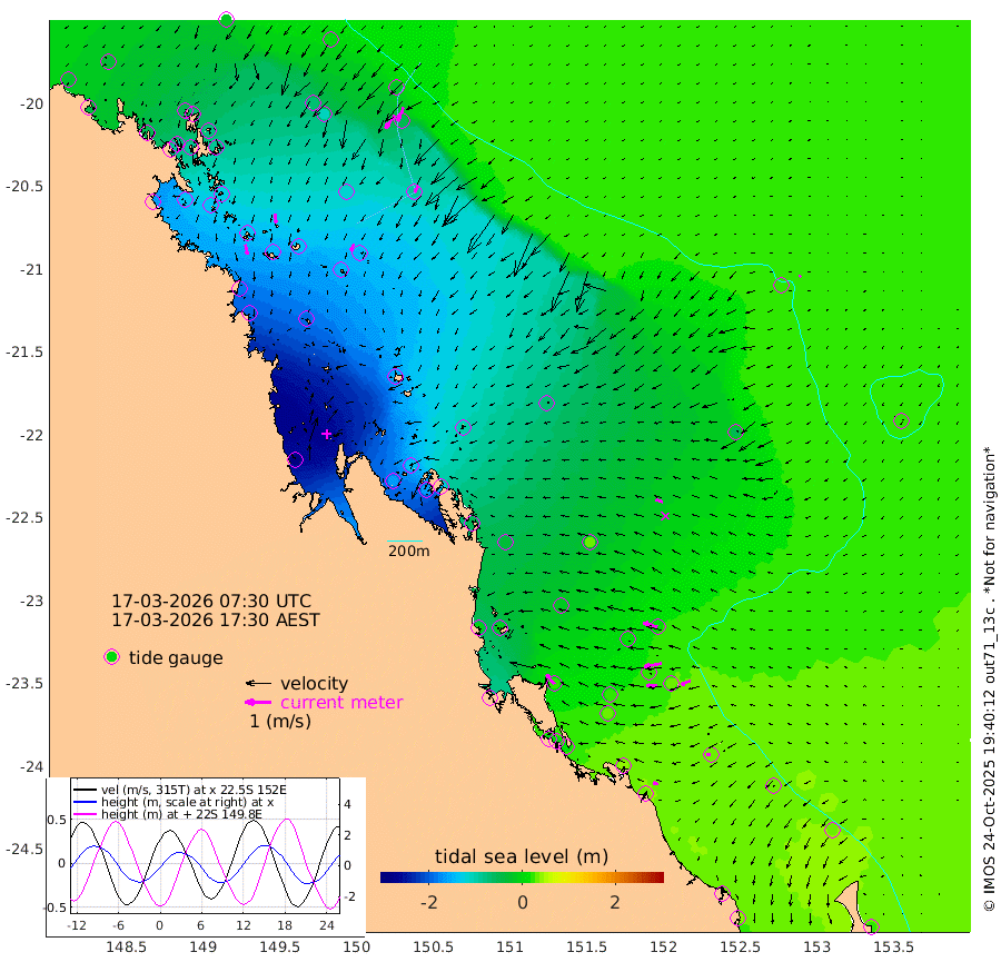 41cm/s 166T +10cm/s rms + 2cm/s 5T. Brampton I 18m 37cm/s 175T +9cm/s rms + 6cm/s 66T. Wigton I 38m 30cm/s -152T +7cm/s rms + 8cm/s 141T. Tern I 47m 57cm/s -157T +7cm/s rms + 12cm/s 54T. N Bugatti Rf 64m 62cm/s -144T +3cm/s rms + 13cm/s 178T. W Bugatti Rf 70m 28cm/s -151T +3cm/s rms + 3cm/s -130T. Creal Rf 69m 58cm/s -74T +7cm/s rms + 4cm/s 2T. North Rf 62m 49cm/s -40T +9cm/s rms + 2cm/s -56T. Cape Capricorn 26m 16cm/s -93T +5cm/s rms + 3cm/s 166T. L Musgrave I 42m 21cm/s -77T +9cm/s rms + 1cm/s -142T. Round Hill Hd 26m 7cm/s -136T +41cm/s rms + 48cm/s 116T. GBRELR 305m 28cm/s -73T +7cm/s rms + 6cm/s 123T. GBRCCH 92m 69cm/s -100T +8cm/s rms + 3cm/s -33T. GBRHIN 45m 42cm/s -92T +4cm/s rms + 2cm/s 41T. GBRHIS 46m 39cm/s -116T +16cm/s rms + 4cm/s -22T. GBROTE 59m -68cm Bell Cay -35cm Holbourne I -141cm Tern I -52cm Bugatti Rf -94cm Creal Rf -23cm White Tip I 18cm North Rf 21cm Rundle I 31cm L Musgrave I 20cm Saumarez Reef -13cm Kennedy Reef 1cm Unnamed Reef No. 2 -27cm Abbot Point -40cm Bowen -75cm Tideway Reef -53cm Hayman Island -109cm Square Reef -52cm Double Bay -87cm Molle Island -86cm Cid Harbour -66cm Hook Island -84cm Border Island -91cm Haslewood Island -88cm Shute Harbour -129cm Thomas Island -119cm Credlin Reef -132cm East Repulse Island -135cm Blacksmith Island -160cm Laguna Quays -133cm Carlisle Island (Off) -145cm St. Bees Island -132cm Scawfell Island -147cm Penrith Island -181cm Mackay Outer Harbour -190cm Hay Point -190cm Prudhoe Island -155cm Middle Island (Percy Isles) -56cm Gannet Cay 22cm Elusive Reef -292cm Mcewin Islet -131cm Mumford Island -159cm Osborn Island -164cm Marquis Island -139cm Reef Point -94cm High Peak Island -54cm Port Clinton -33cm Peaked Island 29cm Karamea Bank -10cm Johnson Patch - NW -9cm Rosslyn Bay -4cm Middle Island (Keppel Isles) -24cm Port Alma 25cm Heron Island 31cm One Tree Islet 25cm Polmaise Reef 12cm Tryon Island 35cm Rock Cod Shoal 11cm Gatcombe Head 0cm Gladstone 13cm South Trees (Storm Surge) 40cm Clews Point 33cm Round Hill Head 33cm Lady Elliot Island 35cm Breaksea Spit 36cm Bundaberg (Burnett Heads) 40cm Elliot Heads 24cm Waddy Point (Fraser Island)