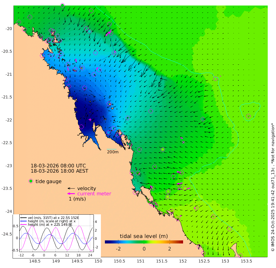 44cm/s 166T +10cm/s rms + 2cm/s 5T. Brampton I 18m 40cm/s 175T +9cm/s rms + 6cm/s 66T. Wigton I 38m 33cm/s -152T +7cm/s rms + 8cm/s 141T. Tern I 47m 63cm/s -157T +7cm/s rms + 12cm/s 54T. N Bugatti Rf 64m 68cm/s -144T +3cm/s rms + 13cm/s 178T. W Bugatti Rf 70m 30cm/s -151T +3cm/s rms + 3cm/s -130T. Creal Rf 69m 65cm/s -74T +7cm/s rms + 4cm/s 2T. North Rf 62m 54cm/s -39T +9cm/s rms + 2cm/s -56T. Cape Capricorn 26m 19cm/s -96T +5cm/s rms + 3cm/s 166T. L Musgrave I 42m 23cm/s -77T +9cm/s rms + 1cm/s -142T. Round Hill Hd 26m 8cm/s -135T +41cm/s rms + 48cm/s 116T. GBRELR 305m 33cm/s -73T +7cm/s rms + 6cm/s 123T. GBRCCH 92m 75cm/s -100T +8cm/s rms + 3cm/s -33T. GBRHIN 45m 46cm/s -92T +4cm/s rms + 2cm/s 41T. GBRHIS 46m 43cm/s -115T +16cm/s rms + 4cm/s -22T. GBROTE 59m -71cm Bell Cay -33cm Holbourne I -149cm Tern I -52cm Bugatti Rf -97cm Creal Rf -20cm White Tip I 24cm North Rf 27cm Rundle I 38cm L Musgrave I 30cm Saumarez Reef -11cm Kennedy Reef 7cm Unnamed Reef No. 2 -24cm Abbot Point -39cm Bowen -74cm Tideway Reef -54cm Hayman Island -110cm Square Reef -52cm Double Bay -92cm Molle Island -91cm Cid Harbour -67cm Hook Island -87cm Border Island -96cm Haslewood Island -91cm Shute Harbour -135cm Thomas Island -124cm Credlin Reef -142cm East Repulse Island -146cm Blacksmith Island -170cm Laguna Quays -142cm Carlisle Island (Off) -157cm St. Bees Island -145cm Scawfell Island -157cm Penrith Island -193cm Mackay Outer Harbour -203cm Hay Point -198cm Prudhoe Island -164cm Middle Island (Percy Isles) -59cm Gannet Cay 29cm Elusive Reef -322cm Mcewin Islet -140cm Mumford Island -176cm Osborn Island -183cm Marquis Island -153cm Reef Point -100cm High Peak Island -54cm Port Clinton -27cm Peaked Island 37cm Karamea Bank -5cm Johnson Patch - NW -6cm Rosslyn Bay 1cm Middle Island (Keppel Isles) -24cm Port Alma 31cm Heron Island 40cm One Tree Islet 33cm Polmaise Reef 17cm Tryon Island 43cm Rock Cod Shoal 15cm Gatcombe Head 2cm Gladstone 17cm South Trees (Storm Surge) 48cm Clews Point 39cm Round Hill Head 41cm Lady Elliot Island 42cm Breaksea Spit 42cm Bundaberg (Burnett Heads) 44cm Elliot Heads 31cm Waddy Point (Fraser Island)
