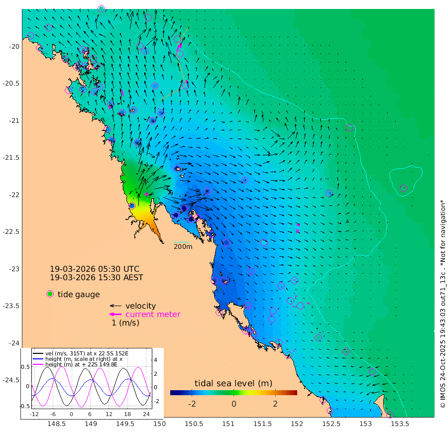 28cm/s -2T +10cm/s rms + 2cm/s 5T. Brampton I 18m 46cm/s -13T +9cm/s rms + 6cm/s 66T. Wigton I 38m 5cm/s -15T +7cm/s rms + 8cm/s 141T. Tern I 47m 45cm/s 7T +7cm/s rms + 12cm/s 54T. N Bugatti Rf 64m 59cm/s 24T +3cm/s rms + 13cm/s 178T. W Bugatti Rf 70m 24cm/s -17T +3cm/s rms + 3cm/s -130T. Creal Rf 69m 7cm/s 42T +7cm/s rms + 4cm/s 2T. North Rf 62m 16cm/s 178T +9cm/s rms + 2cm/s -56T. Cape Capricorn 26m 3cm/s -61T +5cm/s rms + 3cm/s 166T. L Musgrave I 42m 10cm/s -78T +9cm/s rms + 1cm/s -142T. Round Hill Hd 26m 3cm/s -18T +41cm/s rms + 48cm/s 116T. GBRELR 305m 25cm/s 109T +7cm/s rms + 6cm/s 123T. GBRCCH 92m 11cm/s -14T +8cm/s rms + 3cm/s -33T. GBRHIN 45m 10cm/s -68T +4cm/s rms + 2cm/s 41T. GBRHIS 46m 20cm/s -33T +16cm/s rms + 4cm/s -22T. GBROTE 59m -169cm Bell Cay -104cm Holbourne I -180cm Tern I -110cm Bugatti Rf -135cm Creal Rf -96cm White Tip I -129cm North Rf -170cm Rundle I -89cm L Musgrave I -74cm Saumarez Reef -101cm Kennedy Reef -95cm Unnamed Reef No. 2 -106cm Abbot Point -110cm Bowen -111cm Tideway Reef -124cm Hayman Island -143cm Square Reef -114cm Double Bay -118cm Molle Island -134cm Cid Harbour -112cm Hook Island -111cm Border Island -121cm Haslewood Island -126cm Shute Harbour -139cm Thomas Island -161cm Credlin Reef -155cm East Repulse Island -153cm Blacksmith Island -143cm Laguna Quays -162cm Carlisle Island (Off) -186cm St. Bees Island -167cm Scawfell Island -189cm Penrith Island -178cm Mackay Outer Harbour -193cm Hay Point -196cm Prudhoe Island -223cm Middle Island (Percy Isles) -156cm Gannet Cay -63cm Elusive Reef -189cm Mcewin Islet -256cm Mumford Island -256cm Osborn Island -269cm Marquis Island -244cm Reef Point -202cm High Peak Island -211cm Port Clinton -216cm Peaked Island -130cm Karamea Bank -176cm Johnson Patch - NW -209cm Rosslyn Bay -212cm Middle Island (Keppel Isles) -234cm Port Alma -128cm Heron Island -129cm One Tree Islet -143cm Polmaise Reef -144cm Tryon Island -144cm Rock Cod Shoal -163cm Gatcombe Head -187cm Gladstone -177cm South Trees (Storm Surge) -127cm Clews Point -115cm Round Hill Head -83cm Lady Elliot Island -77cm Breaksea Spit -123cm Bundaberg (Burnett Heads) -133cm Elliot Heads -60cm Waddy Point (Fraser Island)