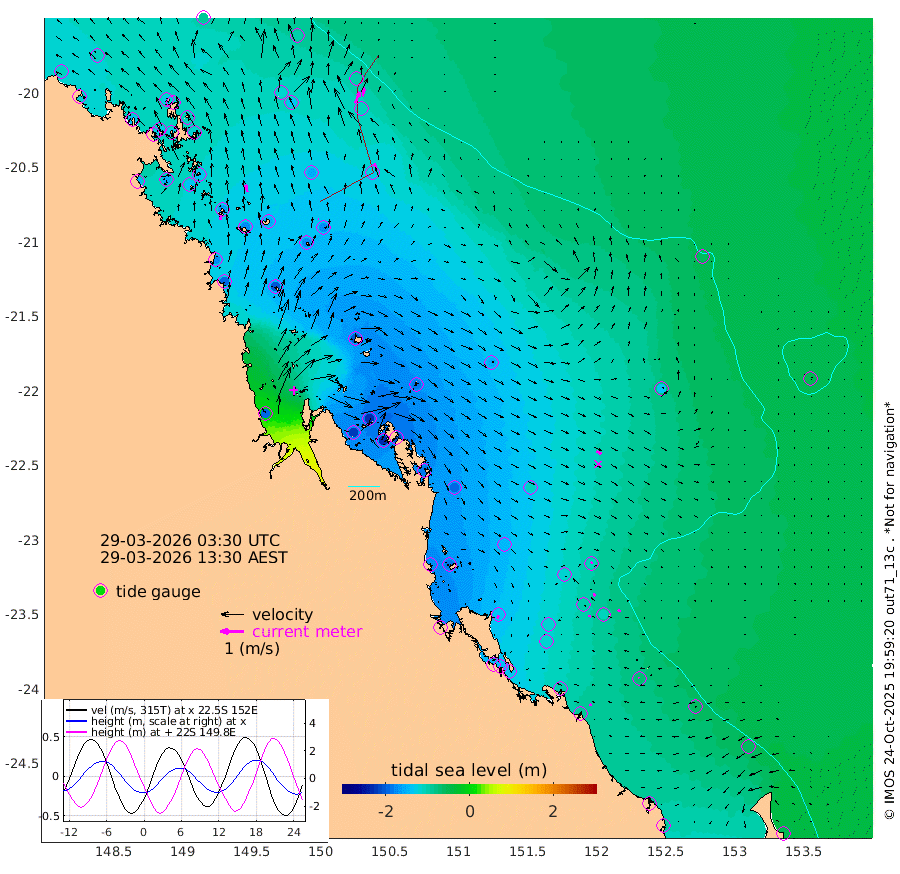 18cm/s 9T +10cm/s rms + 2cm/s 5T. Brampton I 18m 31cm/s -14T +9cm/s rms + 6cm/s 66T. Wigton I 38m 2cm/s -79T +7cm/s rms + 8cm/s 141T. Tern I 47m 38cm/s 7T +7cm/s rms + 12cm/s 54T. N Bugatti Rf 64m 53cm/s 21T +3cm/s rms + 13cm/s 178T. W Bugatti Rf 70m 15cm/s -25T +3cm/s rms + 3cm/s -130T. Creal Rf 69m 7cm/s 40T +7cm/s rms + 4cm/s 2T. North Rf 62m 13cm/s -164T +9cm/s rms + 2cm/s -56T. Cape Capricorn 26m 2cm/s -40T +5cm/s rms + 3cm/s 166T. L Musgrave I 42m 10cm/s -79T +9cm/s rms + 1cm/s -142T. Round Hill Hd 26m 1cm/s -7T +41cm/s rms + 48cm/s 116T. GBRELR 305m 23cm/s 114T +7cm/s rms + 6cm/s 123T. GBRCCH 92m 13cm/s -28T +8cm/s rms + 3cm/s -33T. GBRHIN 45m 10cm/s -80T +4cm/s rms + 2cm/s 41T. GBRHIS 46m 14cm/s -52T +16cm/s rms + 4cm/s -22T. GBROTE 59m -150cm Bell Cay -108cm Holbourne I -173cm Tern I -106cm Bugatti Rf -128cm Creal Rf -94cm White Tip I -107cm North Rf -140cm Rundle I -70cm L Musgrave I -55cm Saumarez Reef -93cm Kennedy Reef -96cm Unnamed Reef No. 2 -111cm Abbot Point -114cm Bowen -116cm Tideway Reef -124cm Hayman Island -140cm Square Reef -137cm Double Bay -127cm Molle Island -125cm Cid Harbour -117cm Hook Island -107cm Border Island -118cm Haslewood Island -129cm Shute Harbour -140cm Thomas Island -156cm Credlin Reef -157cm East Repulse Island -140cm Blacksmith Island -146cm Laguna Quays -160cm Carlisle Island (Off) -173cm St. Bees Island -155cm Scawfell Island -177cm Penrith Island -176cm Mackay Outer Harbour -190cm Hay Point -200cm Prudhoe Island -205cm Middle Island (Percy Isles) -137cm Gannet Cay -58cm Elusive Reef -188cm Mcewin Islet -226cm Mumford Island -221cm Osborn Island -231cm Marquis Island -212cm Reef Point -179cm High Peak Island -187cm Port Clinton -188cm Peaked Island -110cm Karamea Bank -143cm Johnson Patch - NW -176cm Rosslyn Bay -181cm Middle Island (Keppel Isles) -193cm Port Alma -102cm Heron Island -106cm One Tree Islet -115cm Polmaise Reef -114cm Tryon Island -120cm Rock Cod Shoal -132cm Gatcombe Head -149cm Gladstone -142cm South Trees (Storm Surge) -100cm Clews Point -88cm Round Hill Head -64cm Lady Elliot Island -59cm Breaksea Spit -90cm Bundaberg (Burnett Heads) -92cm Elliot Heads -48cm Waddy Point (Fraser Island)