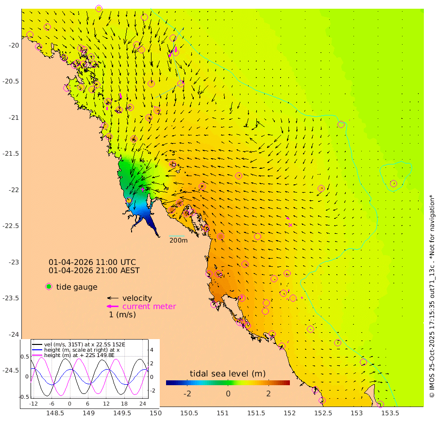 29cm/s 177T +10cm/s rms + 2cm/s 5T. Brampton I 18m 44cm/s 166T +9cm/s rms + 6cm/s 66T. Wigton I 38m 5cm/s -178T +7cm/s rms + 8cm/s 141T. Tern I 47m 48cm/s -175T +7cm/s rms + 12cm/s 54T. N Bugatti Rf 64m 64cm/s -154T +3cm/s rms + 13cm/s 178T. W Bugatti Rf 70m 22cm/s 168T +3cm/s rms + 3cm/s -130T. Creal Rf 69m 8cm/s -119T +7cm/s rms + 4cm/s 2T. North Rf 62m 20cm/s -9T +9cm/s rms + 2cm/s -56T. Cape Capricorn 26m 5cm/s 149T +5cm/s rms + 3cm/s 166T. L Musgrave I 42m 7cm/s 121T +9cm/s rms + 1cm/s -142T. Round Hill Hd 26m 3cm/s -179T +41cm/s rms + 48cm/s 116T. GBRELR 305m 26cm/s -71T +7cm/s rms + 6cm/s 123T. GBRCCH 92m 16cm/s -168T +8cm/s rms + 3cm/s -33T. GBRHIN 45m 5cm/s 110T +4cm/s rms + 2cm/s 41T. GBRHIS 46m 15cm/s 155T +16cm/s rms + 4cm/s -22T. GBROTE 59m 147cm Bell Cay 98cm Holbourne I 154cm Tern I 97cm Bugatti Rf 118cm Creal Rf 87cm White Tip I 117cm North Rf 155cm Rundle I 81cm L Musgrave I 72cm Saumarez Reef 99cm Kennedy Reef 89cm Unnamed Reef No. 2 95cm Abbot Point 96cm Bowen 99cm Tideway Reef 106cm Hayman Island 124cm Square Reef 109cm Double Bay 90cm Molle Island 104cm Cid Harbour 103cm Hook Island 92cm Border Island 92cm Haslewood Island 106cm Shute Harbour 115cm Thomas Island 135cm Credlin Reef 119cm East Repulse Island 114cm Blacksmith Island 113cm Laguna Quays 128cm Carlisle Island (Off) 148cm St. Bees Island 123cm Scawfell Island 149cm Penrith Island 144cm Mackay Outer Harbour 158cm Hay Point 176cm Prudhoe Island 200cm Middle Island (Percy Isles) 135cm Gannet Cay 60cm Elusive Reef 146cm Mcewin Islet 222cm Mumford Island 206cm Osborn Island 213cm Marquis Island 194cm Reef Point 172cm High Peak Island 197cm Port Clinton 205cm Peaked Island 121cm Karamea Bank 162cm Johnson Patch - NW 189cm Rosslyn Bay 193cm Middle Island (Keppel Isles) 210cm Port Alma 113cm Heron Island 125cm One Tree Islet 135cm Polmaise Reef 125cm Tryon Island 129cm Rock Cod Shoal 145cm Gatcombe Head 168cm Gladstone 160cm South Trees (Storm Surge) 121cm Clews Point 106cm Round Hill Head 76cm Lady Elliot Island 70cm Breaksea Spit 112cm Bundaberg (Burnett Heads) 114cm Elliot Heads 53cm Waddy Point (Fraser Island)
