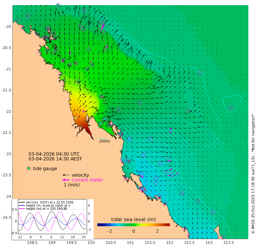 40cm/s -9T +10cm/s rms + 2cm/s 5T. Brampton I 18m 52cm/s -9T +9cm/s rms + 6cm/s 66T. Wigton I 38m 22cm/s 23T +7cm/s rms + 8cm/s 141T. Tern I 47m 62cm/s 15T +7cm/s rms + 12cm/s 54T. N Bugatti Rf 64m 74cm/s 31T +3cm/s rms + 13cm/s 178T. W Bugatti Rf 70m 31cm/s 9T +3cm/s rms + 3cm/s -130T. Creal Rf 69m 35cm/s 96T +7cm/s rms + 4cm/s 2T. North Rf 62m 38cm/s 150T +9cm/s rms + 2cm/s -56T. Cape Capricorn 26m 8cm/s 55T +5cm/s rms + 3cm/s 166T. L Musgrave I 42m 5cm/s 97T +9cm/s rms + 1cm/s -142T. Round Hill Hd 26m 4cm/s 33T +41cm/s rms + 48cm/s 116T. GBRELR 305m 35cm/s 107T +7cm/s rms + 6cm/s 123T. GBRCCH 92m 40cm/s 66T +8cm/s rms + 3cm/s -33T. GBRHIN 45m 21cm/s 77T +4cm/s rms + 2cm/s 41T. GBRHIS 46m 26cm/s 40T +16cm/s rms + 4cm/s -22T. GBROTE 59m -76cm Bell Cay -58cm Holbourne I -40cm Tern I -53cm Bugatti Rf -44cm Creal Rf -62cm White Tip I -104cm North Rf -130cm Rundle I -87cm L Musgrave I -79cm Saumarez Reef -78cm Kennedy Reef -72cm Unnamed Reef No. 2 -61cm Abbot Point -54cm Bowen -40cm Tideway Reef -55cm Hayman Island -49cm Square Reef -37cm Double Bay -35cm Molle Island -42cm Cid Harbour -42cm Hook Island -33cm Border Island -24cm Haslewood Island -35cm Shute Harbour -21cm Thomas Island -38cm Credlin Reef -11cm East Repulse Island -22cm Blacksmith Island -1cm Laguna Quays -18cm Carlisle Island (Off) -19cm St. Bees Island -19cm Scawfell Island -41cm Penrith Island -10cm Mackay Outer Harbour -14cm Hay Point -26cm Prudhoe Island -68cm Middle Island (Percy Isles) -72cm Gannet Cay -67cm Elusive Reef 64cm Mcewin Islet -101cm Mumford Island -70cm Osborn Island -63cm Marquis Island -68cm Reef Point -77cm High Peak Island -112cm Port Clinton -135cm Peaked Island -110cm Karamea Bank -128cm Johnson Patch - NW -136cm Rosslyn Bay -141cm Middle Island (Keppel Isles) -142cm Port Alma -108cm Heron Island -123cm One Tree Islet -123cm Polmaise Reef -114cm Tryon Island -116cm Rock Cod Shoal -119cm Gatcombe Head -127cm Gladstone -129cm South Trees (Storm Surge) -122cm Clews Point -106cm Round Hill Head -86cm Lady Elliot Island -85cm Breaksea Spit -111cm Bundaberg (Burnett Heads) -118cm Elliot Heads -65cm Waddy Point (Fraser Island)