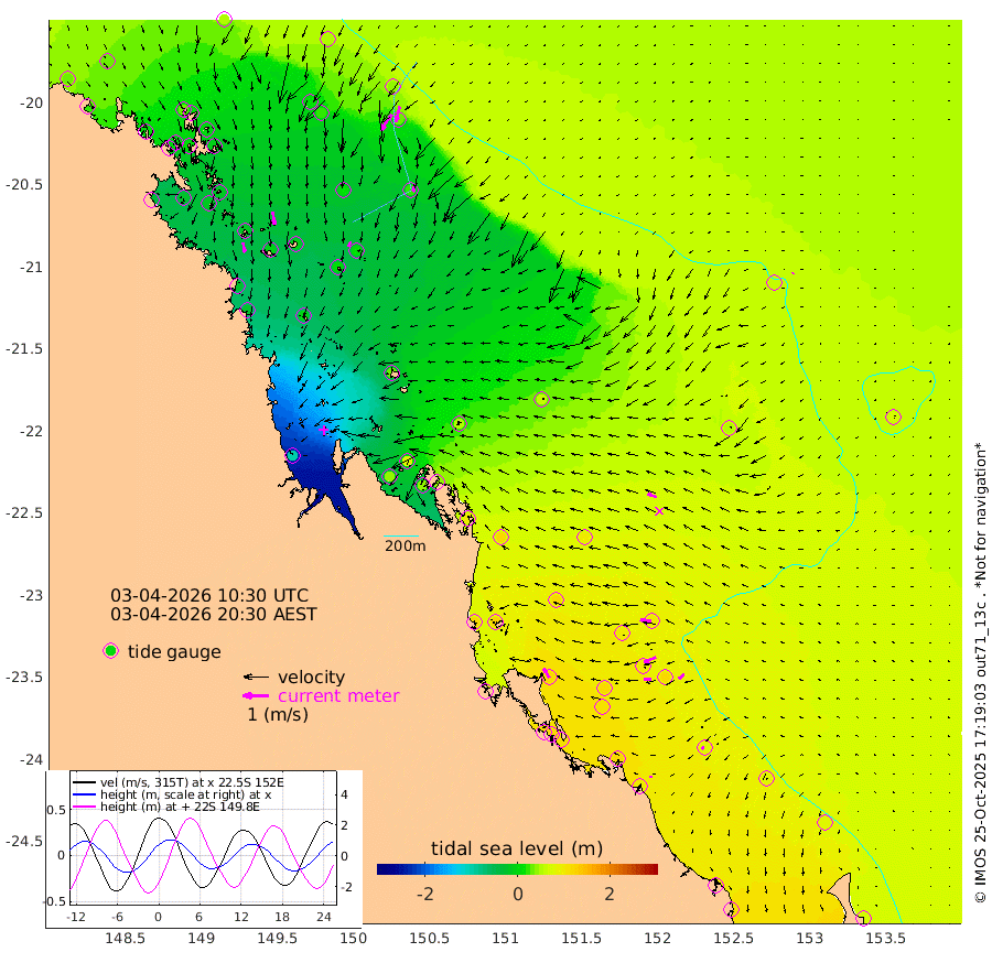 41cm/s 171T +10cm/s rms + 2cm/s 5T. Brampton I 18m 52cm/s 172T +9cm/s rms + 6cm/s 66T. Wigton I 38m 22cm/s -152T +7cm/s rms + 8cm/s 141T. Tern I 47m 62cm/s -165T +7cm/s rms + 12cm/s 54T. N Bugatti Rf 64m 75cm/s -148T +3cm/s rms + 13cm/s 178T. W Bugatti Rf 70m 30cm/s -170T +3cm/s rms + 3cm/s -130T. Creal Rf 69m 44cm/s -83T +7cm/s rms + 4cm/s 2T. North Rf 62m 44cm/s -31T +9cm/s rms + 2cm/s -56T. Cape Capricorn 26m 12cm/s -116T +5cm/s rms + 3cm/s 166T. L Musgrave I 42m 10cm/s -86T +9cm/s rms + 1cm/s -142T. Round Hill Hd 26m 6cm/s -132T +41cm/s rms + 48cm/s 116T. GBRELR 305m 38cm/s -69T +7cm/s rms + 6cm/s 123T. GBRCCH 92m 50cm/s -113T +8cm/s rms + 3cm/s -33T. GBRHIN 45m 27cm/s -95T +4cm/s rms + 2cm/s 41T. GBRHIS 46m 29cm/s -130T +16cm/s rms + 4cm/s -22T. GBROTE 59m 57cm Bell Cay 33cm Holbourne I 10cm Tern I 32cm Bugatti Rf 21cm Creal Rf 43cm White Tip I 97cm North Rf 121cm Rundle I 84cm L Musgrave I 74cm Saumarez Reef 50cm Kennedy Reef 52cm Unnamed Reef No. 2 35cm Abbot Point 27cm Bowen 13cm Tideway Reef 31cm Hayman Island 19cm Square Reef 14cm Double Bay -5cm Molle Island 12cm Cid Harbour 16cm Hook Island 7cm Border Island -3cm Haslewood Island 6cm Shute Harbour -10cm Thomas Island 11cm Credlin Reef -21cm East Repulse Island -10cm Blacksmith Island -32cm Laguna Quays -12cm Carlisle Island (Off) -2cm St. Bees Island -1cm Scawfell Island 10cm Penrith Island -22cm Mackay Outer Harbour -19cm Hay Point -4cm Prudhoe Island 36cm Middle Island (Percy Isles) 55cm Gannet Cay 56cm Elusive Reef -98cm Mcewin Islet 76cm Mumford Island 41cm Osborn Island 38cm Marquis Island 38cm Reef Point 53cm High Peak Island 94cm Port Clinton 122cm Peaked Island 102cm Karamea Bank 114cm Johnson Patch - NW 121cm Rosslyn Bay 127cm Middle Island (Keppel Isles) 124cm Port Alma 101cm Heron Island 118cm One Tree Islet 117cm Polmaise Reef 103cm Tryon Island 108cm Rock Cod Shoal 108cm Gatcombe Head 115cm Gladstone 118cm South Trees (Storm Surge) 118cm Clews Point 102cm Round Hill Head 83cm Lady Elliot Island 81cm Breaksea Spit 104cm Bundaberg (Burnett Heads) 111cm Elliot Heads 66cm Waddy Point (Fraser Island)
