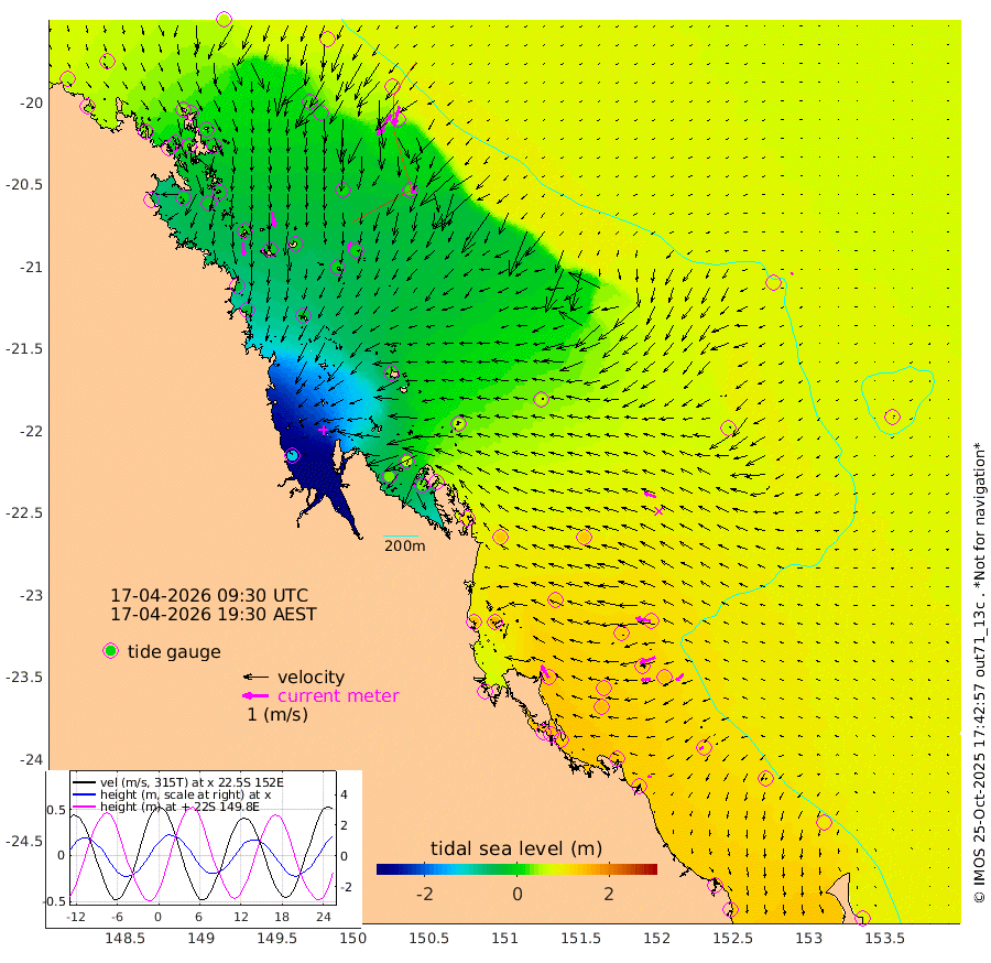51cm/s 174T +10cm/s rms + 2cm/s 5T. Brampton I 18m 61cm/s 171T +9cm/s rms + 6cm/s 66T. Wigton I 38m 27cm/s -154T +7cm/s rms + 8cm/s 141T. Tern I 47m 78cm/s -164T +7cm/s rms + 12cm/s 54T. N Bugatti Rf 64m 96cm/s -148T +3cm/s rms + 13cm/s 178T. W Bugatti Rf 70m 37cm/s -170T +3cm/s rms + 3cm/s -130T. Creal Rf 69m 59cm/s -79T +7cm/s rms + 4cm/s 2T. North Rf 62m 56cm/s -31T +9cm/s rms + 2cm/s -56T. Cape Capricorn 26m 17cm/s -110T +5cm/s rms + 3cm/s 166T. L Musgrave I 42m 13cm/s -83T +9cm/s rms + 1cm/s -142T. Round Hill Hd 26m 8cm/s -132T +41cm/s rms + 48cm/s 116T. GBRELR 305m 49cm/s -70T +7cm/s rms + 6cm/s 123T. GBRCCH 92m 65cm/s -111T +8cm/s rms + 3cm/s -33T. GBRHIN 45m 35cm/s -96T +4cm/s rms + 2cm/s 41T. GBRHIS 46m 37cm/s -131T +16cm/s rms + 4cm/s -22T. GBROTE 59m 65cm Bell Cay 48cm Holbourne I 8cm Tern I 40cm Bugatti Rf 21cm Creal Rf 56cm White Tip I 120cm North Rf 149cm Rundle I 104cm L Musgrave I 89cm Saumarez Reef 64cm Kennedy Reef 77cm Unnamed Reef No. 2 56cm Abbot Point 46cm Bowen 23cm Tideway Reef 44cm Hayman Island 16cm Square Reef 40cm Double Bay 5cm Molle Island 19cm Cid Harbour 26cm Hook Island 10cm Border Island 5cm Haslewood Island 15cm Shute Harbour -10cm Thomas Island 17cm Credlin Reef -9cm East Repulse Island -14cm Blacksmith Island -38cm Laguna Quays -3cm Carlisle Island (Off) -2cm St. Bees Island -9cm Scawfell Island 3cm Penrith Island -31cm Mackay Outer Harbour -29cm Hay Point -16cm Prudhoe Island 27cm Middle Island (Percy Isles) 63cm Gannet Cay 79cm Elusive Reef -129cm Mcewin Islet 63cm Mumford Island 32cm Osborn Island 33cm Marquis Island 42cm Reef Point 62cm High Peak Island 110cm Port Clinton 139cm Peaked Island 132cm Karamea Bank 129cm Johnson Patch - NW 147cm Rosslyn Bay 157cm Middle Island (Keppel Isles) 148cm Port Alma 123cm Heron Island 137cm One Tree Islet 137cm Polmaise Reef 125cm Tryon Island 145cm Rock Cod Shoal 131cm Gatcombe Head 138cm Gladstone 143cm South Trees (Storm Surge) 139cm Clews Point 122cm Round Hill Head 103cm Lady Elliot Island 100cm Breaksea Spit 127cm Bundaberg (Burnett Heads) 133cm Elliot Heads 79cm Waddy Point (Fraser Island)