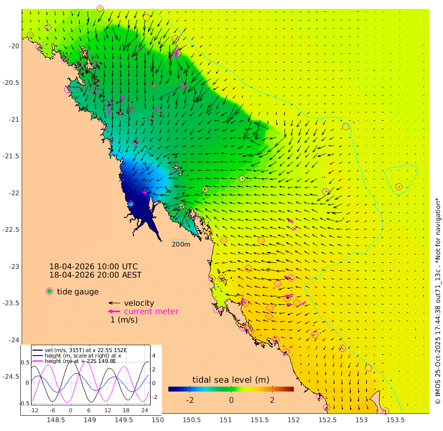 48cm/s 173T +10cm/s rms + 2cm/s 5T. Brampton I 18m 59cm/s 172T +9cm/s rms + 6cm/s 66T. Wigton I 38m 27cm/s -152T +7cm/s rms + 8cm/s 141T. Tern I 47m 76cm/s -164T +7cm/s rms + 12cm/s 54T. N Bugatti Rf 64m 92cm/s -148T +3cm/s rms + 13cm/s 178T. W Bugatti Rf 70m 36cm/s -168T +3cm/s rms + 3cm/s -130T. Creal Rf 69m 61cm/s -79T +7cm/s rms + 4cm/s 2T. North Rf 62m 57cm/s -32T +9cm/s rms + 2cm/s -56T. Cape Capricorn 26m 19cm/s -113T +5cm/s rms + 3cm/s 166T. L Musgrave I 42m 14cm/s -83T +9cm/s rms + 1cm/s -142T. Round Hill Hd 26m 8cm/s -127T +41cm/s rms + 48cm/s 116T. GBRELR 305m 50cm/s -69T +7cm/s rms + 6cm/s 123T. GBRCCH 92m 67cm/s -110T +8cm/s rms + 3cm/s -33T. GBRHIN 45m 38cm/s -95T +4cm/s rms + 2cm/s 41T. GBRHIS 46m 39cm/s -127T +16cm/s rms + 4cm/s -22T. GBROTE 59m 57cm Bell Cay 41cm Holbourne I -4cm Tern I 34cm Bugatti Rf 14cm Creal Rf 52cm White Tip I 117cm North Rf 144cm Rundle I 105cm L Musgrave I 92cm Saumarez Reef 57cm Kennedy Reef 72cm Unnamed Reef No. 2 47cm Abbot Point 36cm Bowen 15cm Tideway Reef 33cm Hayman Island 8cm Square Reef 30cm Double Bay -6cm Molle Island 7cm Cid Harbour 19cm Hook Island 0cm Border Island -5cm Haslewood Island 4cm Shute Harbour -20cm Thomas Island 5cm Credlin Reef -24cm East Repulse Island -29cm Blacksmith Island -51cm Laguna Quays -18cm Carlisle Island (Off) -19cm St. Bees Island -25cm Scawfell Island -12cm Penrith Island -45cm Mackay Outer Harbour -43cm Hay Point -26cm Prudhoe Island 16cm Middle Island (Percy Isles) 55cm Gannet Cay 79cm Elusive Reef -149cm Mcewin Islet 46cm Mumford Island 11cm Osborn Island 11cm Marquis Island 21cm Reef Point 50cm High Peak Island 102cm Port Clinton 132cm Peaked Island 131cm Karamea Bank 126cm Johnson Patch - NW 139cm Rosslyn Bay 148cm Middle Island (Keppel Isles) 137cm Port Alma 122cm Heron Island 138cm One Tree Islet 135cm Polmaise Reef 121cm Tryon Island 141cm Rock Cod Shoal 125cm Gatcombe Head 131cm Gladstone 137cm South Trees (Storm Surge) 137cm Clews Point 122cm Round Hill Head 106cm Lady Elliot Island 102cm Breaksea Spit 125cm Bundaberg (Burnett Heads) 129cm Elliot Heads 83cm Waddy Point (Fraser Island)