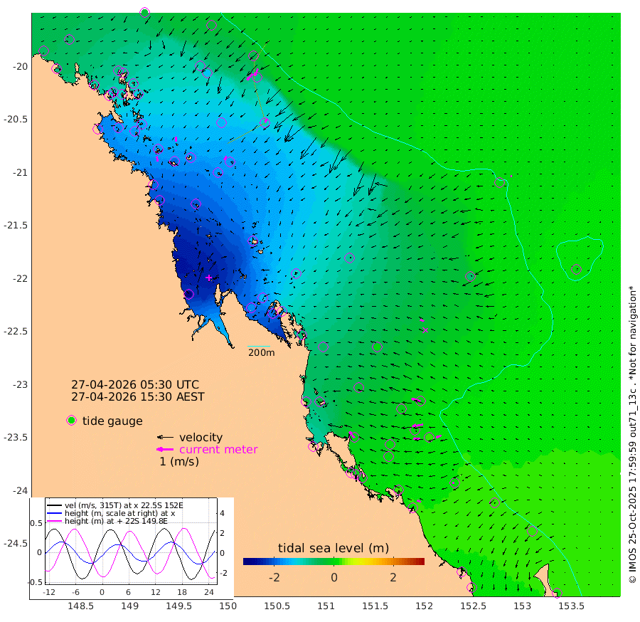31cm/s 169T +10cm/s rms + 2cm/s 5T. Brampton I 18m 29cm/s 178T +9cm/s rms + 6cm/s 66T. Wigton I 38m 26cm/s -149T +7cm/s rms + 8cm/s 141T. Tern I 47m 47cm/s -155T +7cm/s rms + 12cm/s 54T. N Bugatti Rf 64m 48cm/s -139T +3cm/s rms + 13cm/s 178T. W Bugatti Rf 70m 25cm/s -142T +3cm/s rms + 3cm/s -130T. Creal Rf 69m 55cm/s -73T +7cm/s rms + 4cm/s 2T. North Rf 62m 48cm/s -39T +9cm/s rms + 2cm/s -56T. Cape Capricorn 26m 13cm/s -93T +5cm/s rms + 3cm/s 166T. L Musgrave I 42m 23cm/s -71T +9cm/s rms + 1cm/s -142T. Round Hill Hd 26m 6cm/s -113T +41cm/s rms + 48cm/s 116T. GBRELR 305m 23cm/s -69T +7cm/s rms + 6cm/s 123T. GBRCCH 92m 64cm/s -99T +8cm/s rms + 3cm/s -33T. GBRHIN 45m 40cm/s -91T +4cm/s rms + 2cm/s 41T. GBRHIS 46m 35cm/s -111T +16cm/s rms + 4cm/s -22T. GBROTE 59m -85cm Bell Cay -62cm Holbourne I -160cm Tern I -75cm Bugatti Rf -112cm Creal Rf -48cm White Tip I -1cm North Rf -2cm Rundle I 18cm L Musgrave I 1cm Saumarez Reef -32cm Kennedy Reef -30cm Unnamed Reef No. 2 -65cm Abbot Point -76cm Bowen -102cm Tideway Reef -84cm Hayman Island -134cm Square Reef -95cm Double Bay -118cm Molle Island -119cm Cid Harbour -91cm Hook Island -107cm Border Island -124cm Haslewood Island -117cm Shute Harbour -150cm Thomas Island -148cm Credlin Reef -170cm East Repulse Island -161cm Blacksmith Island -181cm Laguna Quays -167cm Carlisle Island (Off) -189cm St. Bees Island -169cm Scawfell Island -168cm Penrith Island -197cm Mackay Outer Harbour -205cm Hay Point -201cm Prudhoe Island -156cm Middle Island (Percy Isles) -68cm Gannet Cay 5cm Elusive Reef -275cm Mcewin Islet -145cm Mumford Island -174cm Osborn Island -187cm Marquis Island -163cm Reef Point -114cm High Peak Island -69cm Port Clinton -58cm Peaked Island 6cm Karamea Bank -20cm Johnson Patch - NW -34cm Rosslyn Bay -33cm Middle Island (Keppel Isles) -48cm Port Alma 5cm Heron Island 20cm One Tree Islet 11cm Polmaise Reef -6cm Tryon Island 6cm Rock Cod Shoal -8cm Gatcombe Head -19cm Gladstone -8cm South Trees (Storm Surge) 27cm Clews Point 19cm Round Hill Head 20cm Lady Elliot Island 27cm Breaksea Spit 21cm Bundaberg (Burnett Heads) 19cm Elliot Heads 17cm Waddy Point (Fraser Island)