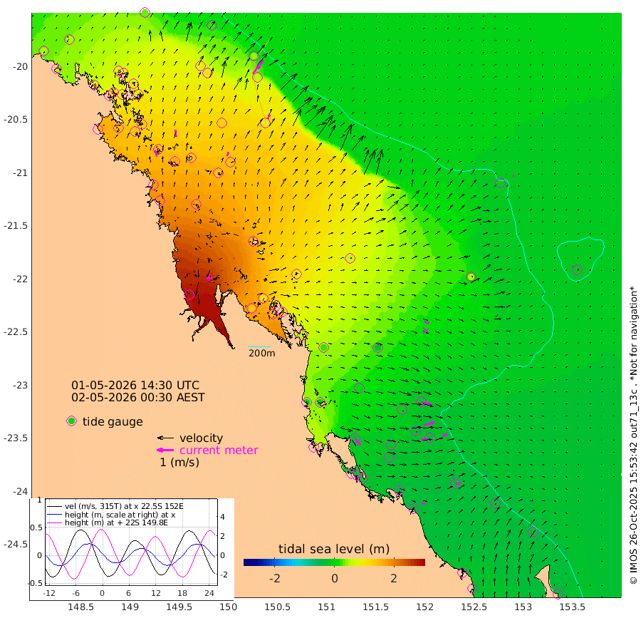 39cm/s -19T +10cm/s rms + 2cm/s 5T. Brampton I 18m 41cm/s -6T +9cm/s rms + 6cm/s 66T. Wigton I 38m 27cm/s 21T +7cm/s rms + 8cm/s 141T. Tern I 47m 59cm/s 25T +7cm/s rms + 12cm/s 54T. N Bugatti Rf 64m 61cm/s 36T +3cm/s rms + 13cm/s 178T. W Bugatti Rf 70m 28cm/s 18T +3cm/s rms + 3cm/s -130T. Creal Rf 69m 61cm/s 106T +7cm/s rms + 4cm/s 2T. North Rf 62m 49cm/s 141T +9cm/s rms + 2cm/s -56T. Cape Capricorn 26m 24cm/s 93T +5cm/s rms + 3cm/s 166T. L Musgrave I 42m 23cm/s 112T +9cm/s rms + 1cm/s -142T. Round Hill Hd 26m 6cm/s 45T +41cm/s rms + 48cm/s 116T. GBRELR 305m 27cm/s 110T +7cm/s rms + 6cm/s 123T. GBRCCH 92m 65cm/s 75T +8cm/s rms + 3cm/s -33T. GBRHIN 45m 40cm/s 89T +4cm/s rms + 2cm/s 41T. GBRHIS 46m 33cm/s 70T +16cm/s rms + 4cm/s -22T. GBROTE 59m 63cm Bell Cay 55cm Holbourne I 135cm Tern I 62cm Bugatti Rf 93cm Creal Rf 39cm White Tip I -14cm North Rf -21cm Rundle I -26cm L Musgrave I -19cm Saumarez Reef 34cm Kennedy Reef 24cm Unnamed Reef No. 2 49cm Abbot Point 60cm Bowen 88cm Tideway Reef 66cm Hayman Island 107cm Square Reef 89cm Double Bay 104cm Molle Island 91cm Cid Harbour 88cm Hook Island 91cm Border Island 100cm Haslewood Island 100cm Shute Harbour 131cm Thomas Island 123cm Credlin Reef 148cm East Repulse Island 133cm Blacksmith Island 161cm Laguna Quays 144cm Carlisle Island (Off) 160cm St. Bees Island 132cm Scawfell Island 135cm Penrith Island 174cm Mackay Outer Harbour 180cm Hay Point 175cm Prudhoe Island 138cm Middle Island (Percy Isles) 53cm Gannet Cay -2cm Elusive Reef 280cm Mcewin Islet 103cm Mumford Island 136cm Osborn Island 148cm Marquis Island 125cm Reef Point 87cm High Peak Island 52cm Port Clinton 24cm Peaked Island -20cm Karamea Bank 3cm Johnson Patch - NW 7cm Rosslyn Bay 2cm Middle Island (Keppel Isles) 19cm Port Alma -21cm Heron Island -31cm One Tree Islet -27cm Polmaise Reef -9cm Tryon Island -23cm Rock Cod Shoal -12cm Gatcombe Head -1cm Gladstone -12cm South Trees (Storm Surge) -40cm Clews Point -30cm Round Hill Head -27cm Lady Elliot Island -26cm Breaksea Spit -31cm Bundaberg (Burnett Heads) -38cm Elliot Heads -20cm Waddy Point (Fraser Island)