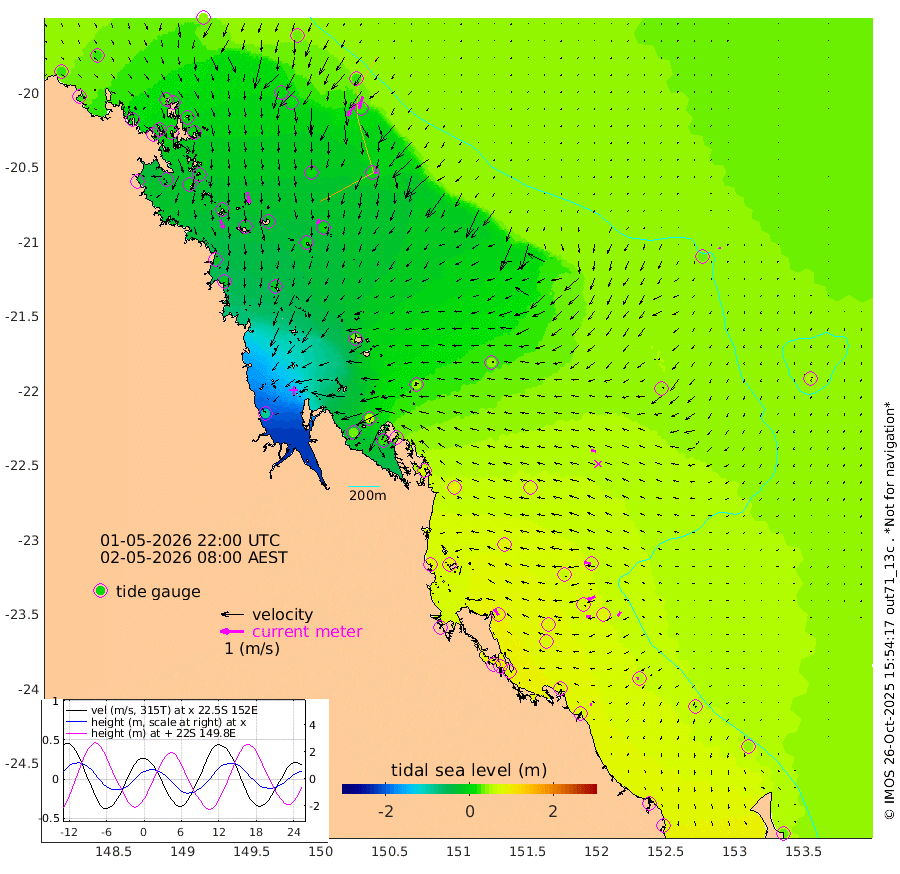 38cm/s 161T +10cm/s rms + 2cm/s 5T. Brampton I 18m 47cm/s 169T +9cm/s rms + 6cm/s 66T. Wigton I 38m 20cm/s -168T +7cm/s rms + 8cm/s 141T. Tern I 47m 54cm/s -162T +7cm/s rms + 12cm/s 54T. N Bugatti Rf 64m 62cm/s -149T +3cm/s rms + 13cm/s 178T. W Bugatti Rf 70m 28cm/s -176T +3cm/s rms + 3cm/s -130T. Creal Rf 69m 30cm/s -78T +7cm/s rms + 4cm/s 2T. North Rf 62m 31cm/s -33T +9cm/s rms + 2cm/s -56T. Cape Capricorn 26m 9cm/s -93T +5cm/s rms + 3cm/s 166T. L Musgrave I 42m 8cm/s -65T +9cm/s rms + 1cm/s -142T. Round Hill Hd 26m 5cm/s -169T +41cm/s rms + 48cm/s 116T. GBRELR 305m 22cm/s -78T +7cm/s rms + 6cm/s 123T. GBRCCH 92m 34cm/s -114T +8cm/s rms + 3cm/s -33T. GBRHIN 45m 19cm/s -98T +4cm/s rms + 2cm/s 41T. GBRHIS 46m 22cm/s -142T +16cm/s rms + 4cm/s -22T. GBROTE 59m 40cm Bell Cay 27cm Holbourne I 6cm Tern I 19cm Bugatti Rf 12cm Creal Rf 26cm White Tip I 63cm North Rf 87cm Rundle I 52cm L Musgrave I 50cm Saumarez Reef 40cm Kennedy Reef 35cm Unnamed Reef No. 2 28cm Abbot Point 22cm Bowen 6cm Tideway Reef 20cm Hayman Island 12cm Square Reef 3cm Double Bay 4cm Molle Island 12cm Cid Harbour 6cm Hook Island 4cm Border Island 0cm Haslewood Island 4cm Shute Harbour -10cm Thomas Island 1cm Credlin Reef -21cm East Repulse Island -7cm Blacksmith Island -26cm Laguna Quays -13cm Carlisle Island (Off) -20cm St. Bees Island -9cm Scawfell Island 7cm Penrith Island -21cm Mackay Outer Harbour -18cm Hay Point -9cm Prudhoe Island 29cm Middle Island (Percy Isles) 40cm Gannet Cay 31cm Elusive Reef -86cm Mcewin Islet 59cm Mumford Island 32cm Osborn Island 25cm Marquis Island 32cm Reef Point 40cm High Peak Island 67cm Port Clinton 85cm Peaked Island 67cm Karamea Bank 80cm Johnson Patch - NW 89cm Rosslyn Bay 92cm Middle Island (Keppel Isles) 95cm Port Alma 67cm Heron Island 76cm One Tree Islet 80cm Polmaise Reef 65cm Tryon Island 73cm Rock Cod Shoal 80cm Gatcombe Head 85cm Gladstone 87cm South Trees (Storm Surge) 80cm Clews Point 67cm Round Hill Head 49cm Lady Elliot Island 44cm Breaksea Spit 75cm Bundaberg (Burnett Heads) 83cm Elliot Heads 30cm Waddy Point (Fraser Island)