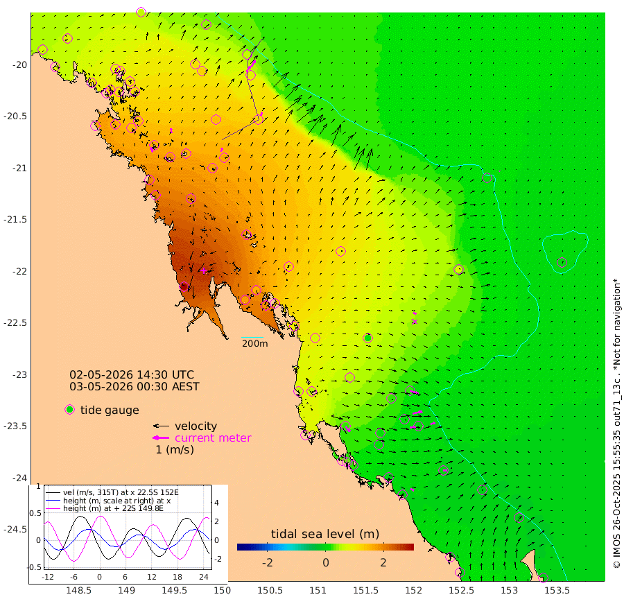 31cm/s -24T +10cm/s rms + 2cm/s 5T. Brampton I 18m 29cm/s -5T +9cm/s rms + 6cm/s 66T. Wigton I 38m 24cm/s 18T +7cm/s rms + 8cm/s 141T. Tern I 47m 46cm/s 28T +7cm/s rms + 12cm/s 54T. N Bugatti Rf 64m 43cm/s 37T +3cm/s rms + 13cm/s 178T. W Bugatti Rf 70m 23cm/s 21T +3cm/s rms + 3cm/s -130T. Creal Rf 69m 55cm/s 109T +7cm/s rms + 4cm/s 2T. North Rf 62m 41cm/s 138T +9cm/s rms + 2cm/s -56T. Cape Capricorn 26m 24cm/s 97T +5cm/s rms + 3cm/s 166T. L Musgrave I 42m 24cm/s 113T +9cm/s rms + 1cm/s -142T. Round Hill Hd 26m 6cm/s 39T +41cm/s rms + 48cm/s 116T. GBRELR 305m 19cm/s 110T +7cm/s rms + 6cm/s 123T. GBRCCH 92m 60cm/s 77T +8cm/s rms + 3cm/s -33T. GBRHIN 45m 38cm/s 91T +4cm/s rms + 2cm/s 41T. GBRHIS 46m 31cm/s 74T +16cm/s rms + 4cm/s -22T. GBROTE 59m 95cm Bell Cay 79cm Holbourne I 162cm Tern I 84cm Bugatti Rf 116cm Creal Rf 60cm White Tip I 19cm North Rf 20cm Rundle I 0cm L Musgrave I 1cm Saumarez Reef 57cm Kennedy Reef 46cm Unnamed Reef No. 2 68cm Abbot Point 79cm Bowen 106cm Tideway Reef 87cm Hayman Island 130cm Square Reef 113cm Double Bay 124cm Molle Island 107cm Cid Harbour 110cm Hook Island 107cm Border Island 113cm Haslewood Island 118cm Shute Harbour 148cm Thomas Island 144cm Credlin Reef 161cm East Repulse Island 149cm Blacksmith Island 176cm Laguna Quays 162cm Carlisle Island (Off) 181cm St. Bees Island 153cm Scawfell Island 161cm Penrith Island 196cm Mackay Outer Harbour 205cm Hay Point 206cm Prudhoe Island 181cm Middle Island (Percy Isles) 84cm Gannet Cay 17cm Elusive Reef 300cm Mcewin Islet 152cm Mumford Island 174cm Osborn Island 187cm Marquis Island 159cm Reef Point 122cm High Peak Island 99cm Port Clinton 71cm Peaked Island 12cm Karamea Bank 47cm Johnson Patch - NW 53cm Rosslyn Bay 48cm Middle Island (Keppel Isles) 69cm Port Alma 12cm Heron Island 8cm One Tree Islet 12cm Polmaise Reef 24cm Tryon Island 10cm Rock Cod Shoal 27cm Gatcombe Head 41cm Gladstone 29cm South Trees (Storm Surge) -3cm Clews Point 2cm Round Hill Head -2cm Lady Elliot Island -1cm Breaksea Spit 1cm Bundaberg (Burnett Heads) -5cm Elliot Heads -1cm Waddy Point (Fraser Island)