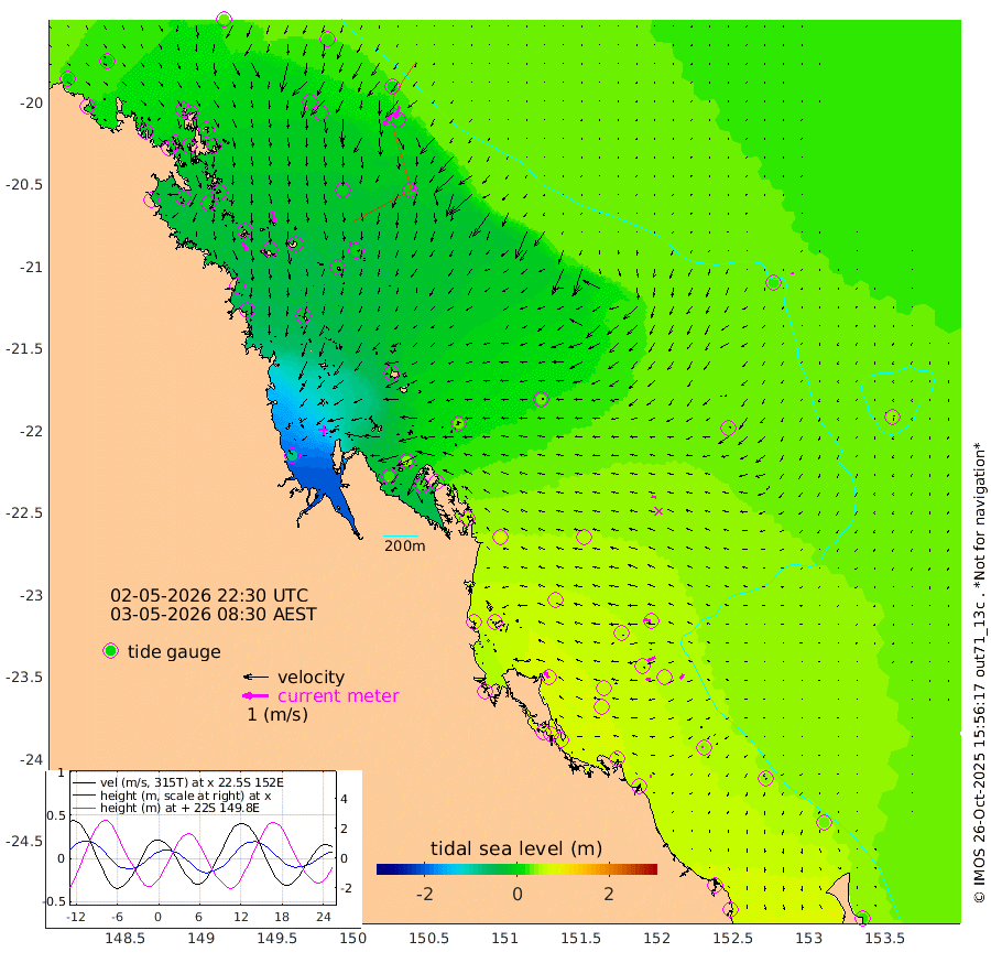 34cm/s 159T +10cm/s rms + 2cm/s 5T. Brampton I 18m 42cm/s 169T +9cm/s rms + 6cm/s 66T. Wigton I 38m 18cm/s -171T +7cm/s rms + 8cm/s 141T. Tern I 47m 46cm/s -163T +7cm/s rms + 12cm/s 54T. N Bugatti Rf 64m 51cm/s -149T +3cm/s rms + 13cm/s 178T. W Bugatti Rf 70m 25cm/s -178T +3cm/s rms + 3cm/s -130T. Creal Rf 69m 24cm/s -76T +7cm/s rms + 4cm/s 2T. North Rf 62m 26cm/s -34T +9cm/s rms + 2cm/s -56T. Cape Capricorn 26m 8cm/s -89T +5cm/s rms + 3cm/s 166T. L Musgrave I 42m 7cm/s -63T +9cm/s rms + 1cm/s -142T. Round Hill Hd 26m 5cm/s -178T +41cm/s rms + 48cm/s 116T. GBRELR 305m 18cm/s -81T +7cm/s rms + 6cm/s 123T. GBRCCH 92m 30cm/s -113T +8cm/s rms + 3cm/s -33T. GBRHIN 45m 17cm/s -99T +4cm/s rms + 2cm/s 41T. GBRHIS 46m 21cm/s -144T +16cm/s rms + 4cm/s -22T. GBROTE 59m 30cm Bell Cay 14cm Holbourne I -1cm Tern I 10cm Bugatti Rf 4cm Creal Rf 15cm White Tip I 49cm North Rf 70cm Rundle I 40cm L Musgrave I 41cm Saumarez Reef 28cm Kennedy Reef 22cm Unnamed Reef No. 2 16cm Abbot Point 11cm Bowen -3cm Tideway Reef 9cm Hayman Island 4cm Square Reef -13cm Double Bay -7cm Molle Island 7cm Cid Harbour -4cm Hook Island -1cm Border Island -4cm Haslewood Island -4cm Shute Harbour -15cm Thomas Island -5cm Credlin Reef -24cm East Repulse Island -9cm Blacksmith Island -29cm Laguna Quays -17cm Carlisle Island (Off) -22cm St. Bees Island -12cm Scawfell Island 0cm Penrith Island -25cm Mackay Outer Harbour -23cm Hay Point -19cm Prudhoe Island 16cm Middle Island (Percy Isles) 29cm Gannet Cay 20cm Elusive Reef -83cm Mcewin Islet 45cm Mumford Island 26cm Osborn Island 20cm Marquis Island 25cm Reef Point 30cm High Peak Island 50cm Port Clinton 67cm Peaked Island 52cm Karamea Bank 63cm Johnson Patch - NW 71cm Rosslyn Bay 74cm Middle Island (Keppel Isles) 78cm Port Alma 53cm Heron Island 59cm One Tree Islet 64cm Polmaise Reef 52cm Tryon Island 58cm Rock Cod Shoal 64cm Gatcombe Head 70cm Gladstone 71cm South Trees (Storm Surge) 64cm Clews Point 55cm Round Hill Head 38cm Lady Elliot Island 32cm Breaksea Spit 62cm Bundaberg (Burnett Heads) 71cm Elliot Heads 21cm Waddy Point (Fraser Island)