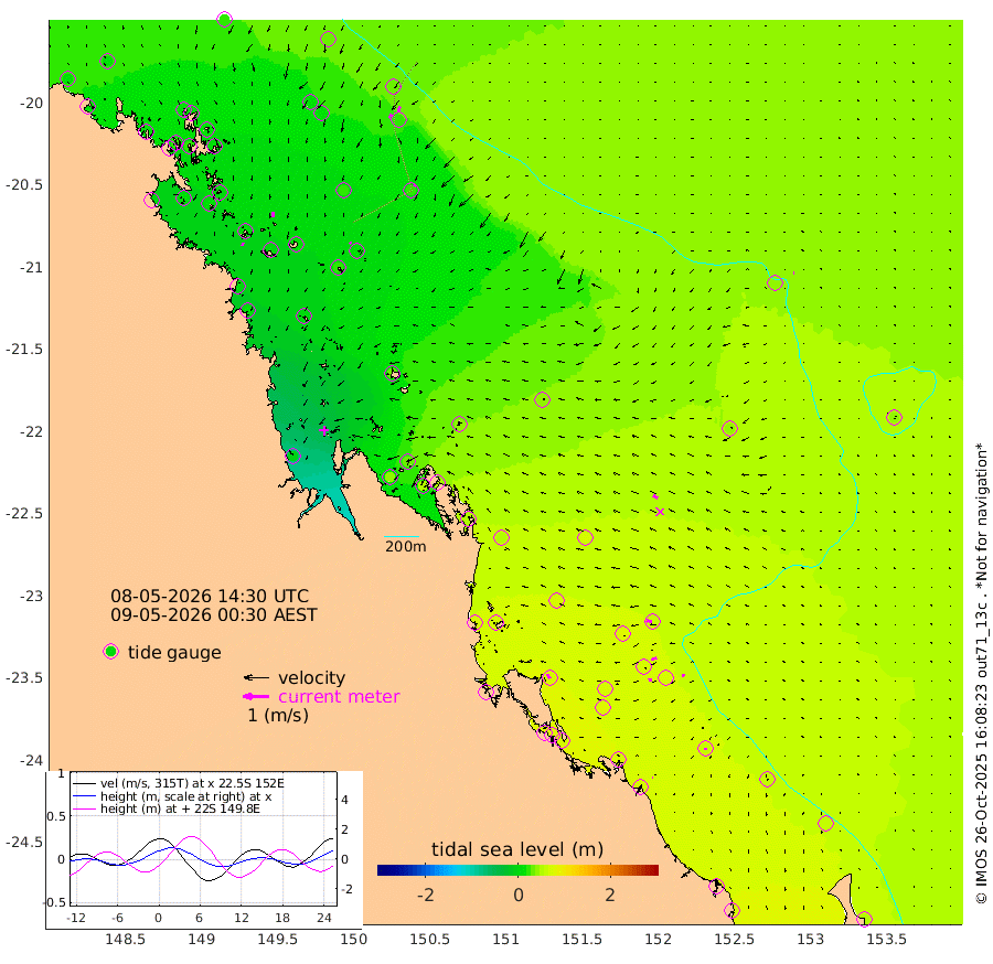 13cm/s -167T +10cm/s rms + 2cm/s 5T. Brampton I 18m 20cm/s -179T +9cm/s rms + 6cm/s 66T. Wigton I 38m 9cm/s -136T +7cm/s rms + 8cm/s 141T. Tern I 47m 18cm/s -154T +7cm/s rms + 12cm/s 54T. N Bugatti Rf 64m 17cm/s -141T +3cm/s rms + 13cm/s 178T. W Bugatti Rf 70m 9cm/s -155T +3cm/s rms + 3cm/s -130T. Creal Rf 69m 23cm/s -81T +7cm/s rms + 4cm/s 2T. North Rf 62m 19cm/s -35T +9cm/s rms + 2cm/s -56T. Cape Capricorn 26m 6cm/s 164T +5cm/s rms + 3cm/s 166T. L Musgrave I 42m 3cm/s -102T +9cm/s rms + 1cm/s -142T. Round Hill Hd 26m 4cm/s -78T +41cm/s rms + 48cm/s 116T. GBRELR 305m 19cm/s -64T +7cm/s rms + 6cm/s 123T. GBRCCH 92m 21cm/s -109T +8cm/s rms + 3cm/s -33T. GBRHIN 45m 12cm/s -94T +4cm/s rms + 2cm/s 41T. GBRHIS 46m 11cm/s -104T +16cm/s rms + 4cm/s -22T. GBROTE 59m 41cm Bell Cay 15cm Holbourne I 17cm Tern I 26cm Bugatti Rf 21cm Creal Rf 30cm White Tip I 64cm North Rf 72cm Rundle I 59cm L Musgrave I 42cm Saumarez Reef 23cm Kennedy Reef 33cm Unnamed Reef No. 2 18cm Abbot Point 16cm Bowen 12cm Tideway Reef 18cm Hayman Island 11cm Square Reef 10cm Double Bay 21cm Molle Island 20cm Cid Harbour 12cm Hook Island 15cm Border Island 16cm Haslewood Island 12cm Shute Harbour 8cm Thomas Island 19cm Credlin Reef 12cm East Repulse Island 16cm Blacksmith Island 2cm Laguna Quays 15cm Carlisle Island (Off) 8cm St. Bees Island 15cm Scawfell Island 21cm Penrith Island 9cm Mackay Outer Harbour 11cm Hay Point 1cm Prudhoe Island 34cm Middle Island (Percy Isles) 46cm Gannet Cay 45cm Elusive Reef -2cm Mcewin Islet 37cm Mumford Island 44cm Osborn Island 47cm Marquis Island 47cm Reef Point 45cm High Peak Island 56cm Port Clinton 54cm Peaked Island 68cm Karamea Bank 72cm Johnson Patch - NW 74cm Rosslyn Bay 73cm Middle Island (Keppel Isles) 77cm Port Alma 71cm Heron Island 70cm One Tree Islet 70cm Polmaise Reef 76cm Tryon Island 76cm Rock Cod Shoal 71cm Gatcombe Head 75cm Gladstone 76cm South Trees (Storm Surge) 69cm Clews Point 69cm Round Hill Head 60cm Lady Elliot Island 63cm Breaksea Spit 69cm Bundaberg (Burnett Heads) 74cm Elliot Heads 53cm Waddy Point (Fraser Island)