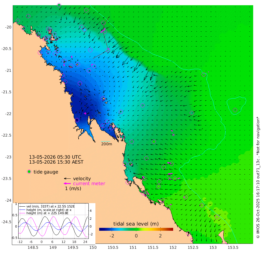 30cm/s 172T +10cm/s rms + 2cm/s 5T. Brampton I 18m 27cm/s 179T +9cm/s rms + 6cm/s 66T. Wigton I 38m 25cm/s -149T +7cm/s rms + 8cm/s 141T. Tern I 47m 45cm/s -153T +7cm/s rms + 12cm/s 54T. N Bugatti Rf 64m 48cm/s -140T +3cm/s rms + 13cm/s 178T. W Bugatti Rf 70m 23cm/s -145T +3cm/s rms + 3cm/s -130T. Creal Rf 69m 61cm/s -73T +7cm/s rms + 4cm/s 2T. North Rf 62m 49cm/s -39T +9cm/s rms + 2cm/s -56T. Cape Capricorn 26m 18cm/s -91T +5cm/s rms + 3cm/s 166T. L Musgrave I 42m 23cm/s -72T +9cm/s rms + 1cm/s -142T. Round Hill Hd 26m 7cm/s -111T +41cm/s rms + 48cm/s 116T. GBRELR 305m 28cm/s -67T +7cm/s rms + 6cm/s 123T. GBRCCH 92m 66cm/s -99T +8cm/s rms + 3cm/s -33T. GBRHIN 45m 41cm/s -92T +4cm/s rms + 2cm/s 41T. GBRHIS 46m 36cm/s -111T +16cm/s rms + 4cm/s -22T. GBROTE 59m -83cm Bell Cay -62cm Holbourne I -158cm Tern I -72cm Bugatti Rf -110cm Creal Rf -44cm White Tip I 7cm North Rf 5cm Rundle I 24cm L Musgrave I 9cm Saumarez Reef -40cm Kennedy Reef -23cm Unnamed Reef No. 2 -58cm Abbot Point -69cm Bowen -96cm Tideway Reef -78cm Hayman Island -133cm Square Reef -80cm Double Bay -116cm Molle Island -112cm Cid Harbour -88cm Hook Island -105cm Border Island -114cm Haslewood Island -111cm Shute Harbour -144cm Thomas Island -138cm Credlin Reef -153cm East Repulse Island -155cm Blacksmith Island -175cm Laguna Quays -153cm Carlisle Island (Off) -168cm St. Bees Island -158cm Scawfell Island -164cm Penrith Island -192cm Mackay Outer Harbour -201cm Hay Point -199cm Prudhoe Island -164cm Middle Island (Percy Isles) -67cm Gannet Cay 12cm Elusive Reef -276cm Mcewin Islet -156cm Mumford Island -179cm Osborn Island -182cm Marquis Island -158cm Reef Point -109cm High Peak Island -69cm Port Clinton -53cm Peaked Island 17cm Karamea Bank -21cm Johnson Patch - NW -28cm Rosslyn Bay -24cm Middle Island (Keppel Isles) -45cm Port Alma 13cm Heron Island 21cm One Tree Islet 13cm Polmaise Reef 1cm Tryon Island 21cm Rock Cod Shoal -4cm Gatcombe Head -16cm Gladstone -3cm South Trees (Storm Surge) 28cm Clews Point 23cm Round Hill Head 29cm Lady Elliot Island 33cm Breaksea Spit 24cm Bundaberg (Burnett Heads) 24cm Elliot Heads 24cm Waddy Point (Fraser Island)