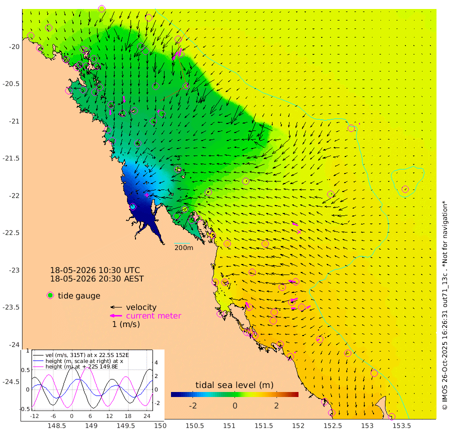 42cm/s 178T +10cm/s rms + 2cm/s 5T. Brampton I 18m 54cm/s 173T +9cm/s rms + 6cm/s 66T. Wigton I 38m 26cm/s -146T +7cm/s rms + 8cm/s 141T. Tern I 47m 68cm/s -163T +7cm/s rms + 12cm/s 54T. N Bugatti Rf 64m 84cm/s -148T +3cm/s rms + 13cm/s 178T. W Bugatti Rf 70m 32cm/s -164T +3cm/s rms + 3cm/s -130T. Creal Rf 69m 59cm/s -80T +7cm/s rms + 4cm/s 2T. North Rf 62m 55cm/s -31T +9cm/s rms + 2cm/s -56T. Cape Capricorn 26m 20cm/s -118T +5cm/s rms + 3cm/s 166T. L Musgrave I 42m 13cm/s -83T +9cm/s rms + 1cm/s -142T. Round Hill Hd 26m 8cm/s -107T +41cm/s rms + 48cm/s 116T. GBRELR 305m 51cm/s -67T +7cm/s rms + 6cm/s 123T. GBRCCH 92m 64cm/s -110T +8cm/s rms + 3cm/s -33T. GBRHIN 45m 37cm/s -95T +4cm/s rms + 2cm/s 41T. GBRHIS 46m 37cm/s -121T +16cm/s rms + 4cm/s -22T. GBROTE 59m 66cm Bell Cay 46cm Holbourne I 6cm Tern I 41cm Bugatti Rf 23cm Creal Rf 57cm White Tip I 126cm North Rf 150cm Rundle I 114cm L Musgrave I 94cm Saumarez Reef 59cm Kennedy Reef 75cm Unnamed Reef No. 2 45cm Abbot Point 36cm Bowen 18cm Tideway Reef 33cm Hayman Island 14cm Square Reef 34cm Double Bay 5cm Molle Island 8cm Cid Harbour 26cm Hook Island 4cm Border Island -3cm Haslewood Island 9cm Shute Harbour -12cm Thomas Island 9cm Credlin Reef -21cm East Repulse Island -25cm Blacksmith Island -41cm Laguna Quays -13cm Carlisle Island (Off) -18cm St. Bees Island -21cm Scawfell Island -6cm Penrith Island -32cm Mackay Outer Harbour -30cm Hay Point -11cm Prudhoe Island 35cm Middle Island (Percy Isles) 63cm Gannet Cay 86cm Elusive Reef -125cm Mcewin Islet 55cm Mumford Island 18cm Osborn Island 19cm Marquis Island 26cm Reef Point 56cm High Peak Island 114cm Port Clinton 138cm Peaked Island 136cm Karamea Bank 137cm Johnson Patch - NW 144cm Rosslyn Bay 152cm Middle Island (Keppel Isles) 142cm Port Alma 130cm Heron Island 149cm One Tree Islet 143cm Polmaise Reef 130cm Tryon Island 145cm Rock Cod Shoal 132cm Gatcombe Head 136cm Gladstone 143cm South Trees (Storm Surge) 144cm Clews Point 130cm Round Hill Head 115cm Lady Elliot Island 114cm Breaksea Spit 130cm Bundaberg (Burnett Heads) 132cm Elliot Heads 94cm Waddy Point (Fraser Island)