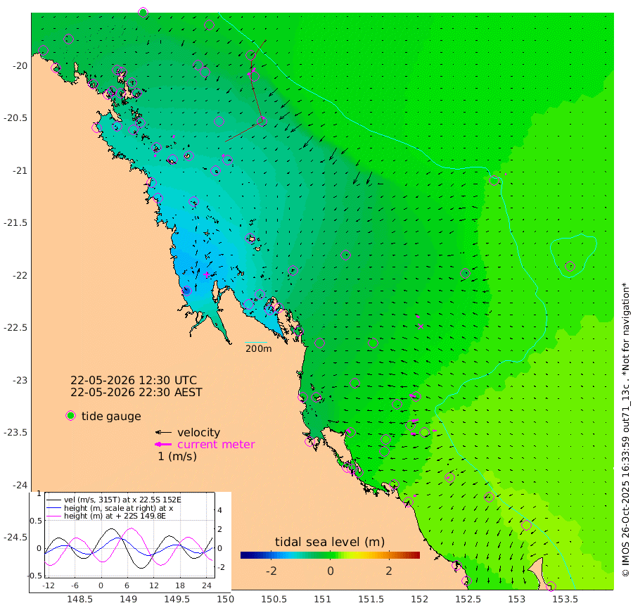 13cm/s 168T +10cm/s rms + 2cm/s 5T. Brampton I 18m 17cm/s -173T +9cm/s rms + 6cm/s 66T. Wigton I 38m 17cm/s -141T +7cm/s rms + 8cm/s 141T. Tern I 47m 24cm/s -144T +7cm/s rms + 12cm/s 54T. N Bugatti Rf 64m 17cm/s -138T +3cm/s rms + 13cm/s 178T. W Bugatti Rf 70m 12cm/s -127T +3cm/s rms + 3cm/s -130T. Creal Rf 69m 40cm/s -75T +7cm/s rms + 4cm/s 2T. North Rf 62m 29cm/s -43T +9cm/s rms + 2cm/s -56T. Cape Capricorn 26m 16cm/s -107T +5cm/s rms + 3cm/s 166T. L Musgrave I 42m 14cm/s -80T +9cm/s rms + 1cm/s -142T. Round Hill Hd 26m 5cm/s -84T +41cm/s rms + 48cm/s 116T. GBRELR 305m 18cm/s -61T +7cm/s rms + 6cm/s 123T. GBRCCH 92m 40cm/s -101T +8cm/s rms + 3cm/s -33T. GBRHIN 45m 28cm/s -90T +4cm/s rms + 2cm/s 41T. GBRHIS 46m 23cm/s -91T +16cm/s rms + 4cm/s -22T. GBROTE 59m -46cm Bell Cay -42cm Holbourne I -96cm Tern I -38cm Bugatti Rf -59cm Creal Rf -21cm White Tip I 16cm North Rf 10cm Rundle I 31cm L Musgrave I 23cm Saumarez Reef -28cm Kennedy Reef -16cm Unnamed Reef No. 2 -46cm Abbot Point -52cm Bowen -63cm Tideway Reef -58cm Hayman Island -73cm Square Reef -61cm Double Bay -70cm Molle Island -73cm Cid Harbour -58cm Hook Island -69cm Border Island -76cm Haslewood Island -74cm Shute Harbour -89cm Thomas Island -91cm Credlin Reef -113cm East Repulse Island -97cm Blacksmith Island -111cm Laguna Quays -110cm Carlisle Island (Off) -115cm St. Bees Island -97cm Scawfell Island -104cm Penrith Island -120cm Mackay Outer Harbour -127cm Hay Point -117cm Prudhoe Island -90cm Middle Island (Percy Isles) -39cm Gannet Cay 15cm Elusive Reef -189cm Mcewin Islet -89cm Mumford Island -118cm Osborn Island -124cm Marquis Island -110cm Reef Point -69cm High Peak Island -39cm Port Clinton -23cm Peaked Island 19cm Karamea Bank 8cm Johnson Patch - NW -14cm Rosslyn Bay -13cm Middle Island (Keppel Isles) -28cm Port Alma 25cm Heron Island 34cm One Tree Islet 24cm Polmaise Reef 19cm Tryon Island 15cm Rock Cod Shoal 6cm Gatcombe Head -5cm Gladstone 4cm South Trees (Storm Surge) 33cm Clews Point 31cm Round Hill Head 36cm Lady Elliot Island 41cm Breaksea Spit 26cm Bundaberg (Burnett Heads) 28cm Elliot Heads 38cm Waddy Point (Fraser Island)