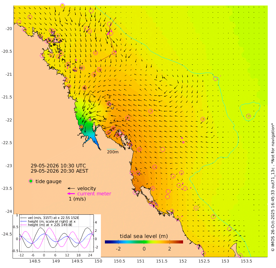 17cm/s -158T +10cm/s rms + 2cm/s 5T. Brampton I 18m 28cm/s 165T +9cm/s rms + 6cm/s 66T. Wigton I 38m 3cm/s -75T +7cm/s rms + 8cm/s 141T. Tern I 47m 30cm/s 176T +7cm/s rms + 12cm/s 54T. N Bugatti Rf 64m 49cm/s -153T +3cm/s rms + 13cm/s 178T. W Bugatti Rf 70m 13cm/s 168T +3cm/s rms + 3cm/s -130T. Creal Rf 69m 9cm/s -177T +7cm/s rms + 4cm/s 2T. North Rf 62m 12cm/s 10T +9cm/s rms + 2cm/s -56T. Cape Capricorn 26m 7cm/s 155T +5cm/s rms + 3cm/s 166T. L Musgrave I 42m 10cm/s 119T +9cm/s rms + 1cm/s -142T. Round Hill Hd 26m 2cm/s -80T +41cm/s rms + 48cm/s 116T. GBRELR 305m 23cm/s -68T +7cm/s rms + 6cm/s 123T. GBRCCH 92m 14cm/s 142T +8cm/s rms + 3cm/s -33T. GBRHIN 45m 10cm/s 97T +4cm/s rms + 2cm/s 41T. GBRHIS 46m 11cm/s 128T +16cm/s rms + 4cm/s -22T. GBROTE 59m 154cm Bell Cay 117cm Holbourne I 170cm Tern I 113cm Bugatti Rf 133cm Creal Rf 103cm White Tip I 120cm North Rf 150cm Rundle I 87cm L Musgrave I 71cm Saumarez Reef 110cm Kennedy Reef 102cm Unnamed Reef No. 2 108cm Abbot Point 111cm Bowen 116cm Tideway Reef 121cm Hayman Island 143cm Square Reef 129cm Double Bay 121cm Molle Island 120cm Cid Harbour 124cm Hook Island 111cm Border Island 109cm Haslewood Island 125cm Shute Harbour 135cm Thomas Island 150cm Credlin Reef 139cm East Repulse Island 134cm Blacksmith Island 139cm Laguna Quays 146cm Carlisle Island (Off) 166cm St. Bees Island 145cm Scawfell Island 164cm Penrith Island 167cm Mackay Outer Harbour 179cm Hay Point 195cm Prudhoe Island 212cm Middle Island (Percy Isles) 138cm Gannet Cay 74cm Elusive Reef 182cm Mcewin Islet 227cm Mumford Island 214cm Osborn Island 220cm Marquis Island 198cm Reef Point 173cm High Peak Island 195cm Port Clinton 195cm Peaked Island 118cm Karamea Bank 161cm Johnson Patch - NW 180cm Rosslyn Bay 182cm Middle Island (Keppel Isles) 197cm Port Alma 114cm Heron Island 130cm One Tree Islet 131cm Polmaise Reef 129cm Tryon Island 124cm Rock Cod Shoal 139cm Gatcombe Head 159cm Gladstone 151cm South Trees (Storm Surge) 118cm Clews Point 105cm Round Hill Head 81cm Lady Elliot Island 81cm Breaksea Spit 107cm Bundaberg (Burnett Heads) 107cm Elliot Heads 64cm Waddy Point (Fraser Island)