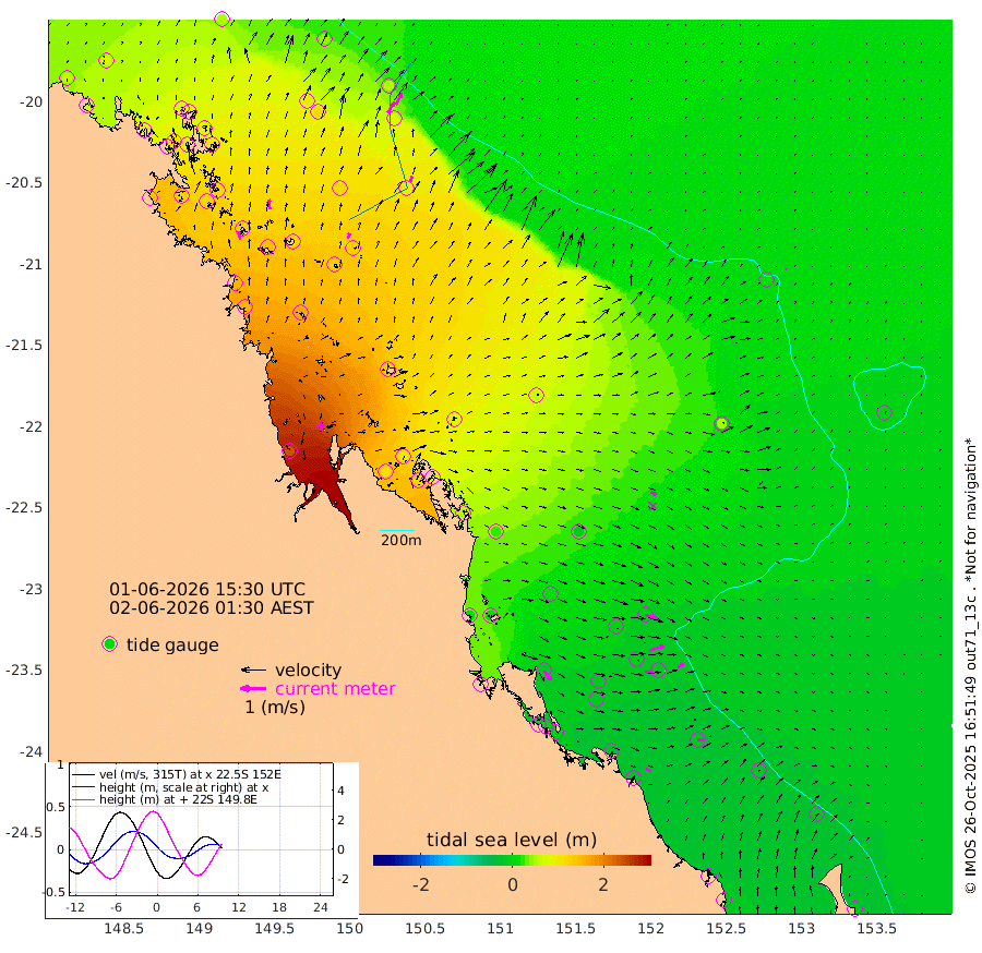 34cm/s -18T +10cm/s rms + 2cm/s 5T. Brampton I 18m 39cm/s -6T +9cm/s rms + 6cm/s 66T. Wigton I 38m 24cm/s 19T +7cm/s rms + 8cm/s 141T. Tern I 47m 52cm/s 25T +7cm/s rms + 12cm/s 54T. N Bugatti Rf 64m 51cm/s 34T +3cm/s rms + 13cm/s 178T. W Bugatti Rf 70m 23cm/s 15T +3cm/s rms + 3cm/s -130T. Creal Rf 69m 55cm/s 111T +7cm/s rms + 4cm/s 2T. North Rf 62m 44cm/s 143T +9cm/s rms + 2cm/s -56T. Cape Capricorn 26m 23cm/s 95T +5cm/s rms + 3cm/s 166T. L Musgrave I 42m 23cm/s 118T +9cm/s rms + 1cm/s -142T. Round Hill Hd 26m 5cm/s 41T +41cm/s rms + 48cm/s 116T. GBRELR 305m 23cm/s 114T +7cm/s rms + 6cm/s 123T. GBRCCH 92m 59cm/s 74T +8cm/s rms + 3cm/s -33T. GBRHIN 45m 34cm/s 89T +4cm/s rms + 2cm/s 41T. GBRHIS 46m 27cm/s 67T +16cm/s rms + 4cm/s -22T. GBROTE 59m 60cm Bell Cay 71cm Holbourne I 123cm Tern I 70cm Bugatti Rf 92cm Creal Rf 53cm White Tip I -3cm North Rf -11cm Rundle I -14cm L Musgrave I -4cm Saumarez Reef 47cm Kennedy Reef 39cm Unnamed Reef No. 2 63cm Abbot Point 72cm Bowen 95cm Tideway Reef 78cm Hayman Island 114cm Square Reef 103cm Double Bay 116cm Molle Island 89cm Cid Harbour 97cm Hook Island 94cm Border Island 97cm Haslewood Island 101cm Shute Harbour 122cm Thomas Island 116cm Credlin Reef 130cm East Repulse Island 120cm Blacksmith Island 148cm Laguna Quays 131cm Carlisle Island (Off) 144cm St. Bees Island 122cm Scawfell Island 128cm Penrith Island 155cm Mackay Outer Harbour 159cm Hay Point 161cm Prudhoe Island 126cm Middle Island (Percy Isles) 51cm Gannet Cay 13cm Elusive Reef 236cm Mcewin Islet 97cm Mumford Island 111cm Osborn Island 119cm Marquis Island 100cm Reef Point 78cm High Peak Island 51cm Port Clinton 27cm Peaked Island -11cm Karamea Bank 12cm Johnson Patch - NW 10cm Rosslyn Bay 5cm Middle Island (Keppel Isles) 19cm Port Alma -9cm Heron Island -12cm One Tree Islet -14cm Polmaise Reef -4cm Tryon Island -16cm Rock Cod Shoal -4cm Gatcombe Head 2cm Gladstone -7cm South Trees (Storm Surge) -26cm Clews Point -20cm Round Hill Head -15cm Lady Elliot Island -13cm Breaksea Spit -20cm Bundaberg (Burnett Heads) -26cm Elliot Heads -9cm Waddy Point (Fraser Island)