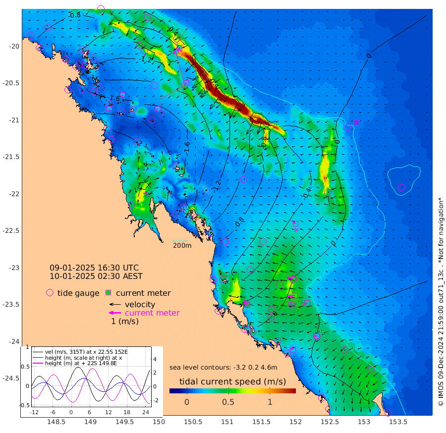 19cm/s 177T +10cm/s rms + 2cm/s 5T. Brampton I 18m 21cm/s -173T +9cm/s rms + 6cm/s 66T. Wigton I 38m 21cm/s -143T +7cm/s rms + 8cm/s 141T. Tern I 47m 33cm/s -148T +7cm/s rms + 12cm/s 54T. N Bugatti Rf 64m 30cm/s -133T +3cm/s rms + 13cm/s 178T. W Bugatti Rf 70m 18cm/s -137T +3cm/s rms + 3cm/s -130T. Creal Rf 69m 57cm/s -73T +7cm/s rms + 4cm/s 2T. North Rf 62m 45cm/s -38T +9cm/s rms + 2cm/s -56T. Cape Capricorn 26m 18cm/s -96T +5cm/s rms + 3cm/s 166T. L Musgrave I 42m 21cm/s -69T +9cm/s rms + 1cm/s -142T. Round Hill Hd 26m 7cm/s -86T +41cm/s rms + 48cm/s 116T. GBRELR 305m 25cm/s -60T +7cm/s rms + 6cm/s 123T. GBRCCH 92m 61cm/s -98T +8cm/s rms + 3cm/s -33T. GBRHIN 45m 39cm/s -91T +4cm/s rms + 2cm/s 41T. GBRHIS 46m 33cm/s -101T +16cm/s rms + 4cm/s -22T. GBROTE 59m -84cm Bell Cay -81cm Holbourne I -158cm Tern I -80cm Bugatti Rf -110cm Creal Rf -56cm White Tip I 0cm North Rf -5cm Rundle I 21cm L Musgrave I 6cm Saumarez Reef -56cm Kennedy Reef -44cm Unnamed Reef No. 2 -83cm Abbot Point -93cm Bowen -108cm Tideway Reef -98cm Hayman Island -136cm Square Reef -106cm Double Bay -133cm Molle Island -128cm Cid Harbour -99cm Hook Island -115cm Border Island -128cm Haslewood Island -125cm Shute Harbour -148cm Thomas Island -146cm Credlin Reef -170cm East Repulse Island -164cm Blacksmith Island -177cm Laguna Quays -166cm Carlisle Island (Off) -182cm St. Bees Island -169cm Scawfell Island -165cm Penrith Island -187cm Mackay Outer Harbour -195cm Hay Point -185cm Prudhoe Island -149cm Middle Island (Percy Isles) -67cm Gannet Cay 3cm Elusive Reef -249cm Mcewin Islet -151cm Mumford Island -177cm Osborn Island -184cm Marquis Island -165cm Reef Point -112cm High Peak Island -68cm Port Clinton -55cm Peaked Island 7cm Karamea Bank -16cm Johnson Patch - NW -38cm Rosslyn Bay -37cm Middle Island (Keppel Isles) -54cm Port Alma 7cm Heron Island 22cm One Tree Islet 10cm Polmaise Reef -4cm Tryon Island 5cm Rock Cod Shoal -10cm Gatcombe Head -23cm Gladstone -12cm South Trees (Storm Surge) 24cm Clews Point 20cm Round Hill Head 28cm Lady Elliot Island 33cm Breaksea Spit 18cm Bundaberg (Burnett Heads) 14cm Elliot Heads 28cm Waddy Point (Fraser Island)