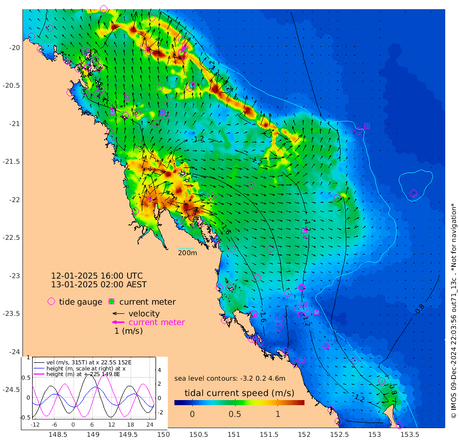 31cm/s -6T +10cm/s rms + 2cm/s 5T. Brampton I 18m 39cm/s -15T +9cm/s rms + 6cm/s 66T. Wigton I 38m 11cm/s 21T +7cm/s rms + 8cm/s 141T. Tern I 47m 44cm/s 5T +7cm/s rms + 12cm/s 54T. N Bugatti Rf 64m 65cm/s 28T +3cm/s rms + 13cm/s 178T. W Bugatti Rf 70m 23cm/s 2T +3cm/s rms + 3cm/s -130T. Creal Rf 69m 9cm/s 26T +7cm/s rms + 4cm/s 2T. North Rf 62m 16cm/s 164T +9cm/s rms + 2cm/s -56T. Cape Capricorn 26m 10cm/s -50T +5cm/s rms + 3cm/s 166T. L Musgrave I 42m 9cm/s -48T +9cm/s rms + 1cm/s -142T. Round Hill Hd 26m 4cm/s 0T +41cm/s rms + 48cm/s 116T. GBRELR 305m 26cm/s 99T +7cm/s rms + 6cm/s 123T. GBRCCH 92m 11cm/s 48T +8cm/s rms + 3cm/s -33T. GBRHIN 45m 4cm/s 14T +4cm/s rms + 2cm/s 41T. GBRHIS 46m 19cm/s 10T +16cm/s rms + 4cm/s -22T. GBROTE 59m -140cm Bell Cay -135cm Holbourne I -145cm Tern I -116cm Bugatti Rf -120cm Creal Rf -114cm White Tip I -123cm North Rf -155cm Rundle I -91cm L Musgrave I -87cm Saumarez Reef -131cm Kennedy Reef -125cm Unnamed Reef No. 2 -132cm Abbot Point -131cm Bowen -121cm Tideway Reef -129cm Hayman Island -137cm Square Reef -141cm Double Bay -136cm Molle Island -122cm Cid Harbour -128cm Hook Island -114cm Border Island -112cm Haslewood Island -125cm Shute Harbour -117cm Thomas Island -136cm Credlin Reef -126cm East Repulse Island -116cm Blacksmith Island -115cm Laguna Quays -134cm Carlisle Island (Off) -134cm St. Bees Island -118cm Scawfell Island -138cm Penrith Island -129cm Mackay Outer Harbour -137cm Hay Point -148cm Prudhoe Island -173cm Middle Island (Percy Isles) -127cm Gannet Cay -89cm Elusive Reef -97cm Mcewin Islet -190cm Mumford Island -172cm Osborn Island -174cm Marquis Island -167cm Reef Point -156cm High Peak Island -181cm Port Clinton -184cm Peaked Island -128cm Karamea Bank -154cm Johnson Patch - NW -179cm Rosslyn Bay -184cm Middle Island (Keppel Isles) -195cm Port Alma -121cm Heron Island -131cm One Tree Islet -135cm Polmaise Reef -127cm Tryon Island -138cm Rock Cod Shoal -143cm Gatcombe Head -161cm Gladstone -157cm South Trees (Storm Surge) -124cm Clews Point -111cm Round Hill Head -85cm Lady Elliot Island -80cm Breaksea Spit -120cm Bundaberg (Burnett Heads) -123cm Elliot Heads -58cm Waddy Point (Fraser Island)