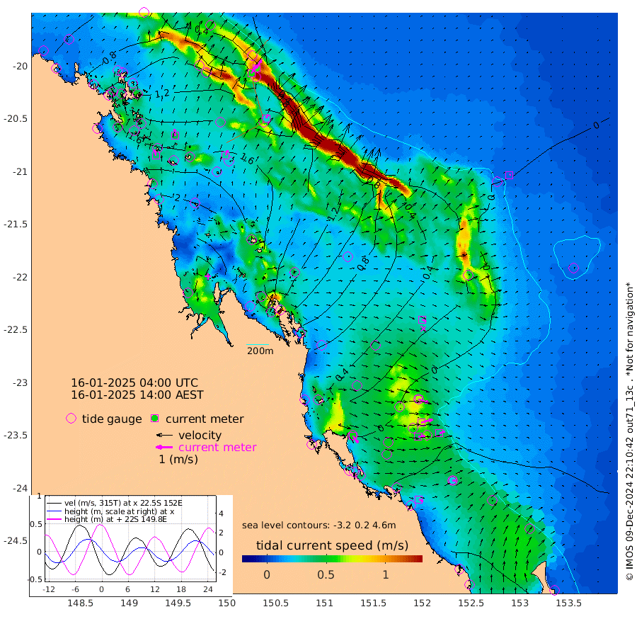 38cm/s -17T +10cm/s rms + 2cm/s 5T. Brampton I 18m 42cm/s -4T +9cm/s rms + 6cm/s 66T. Wigton I 38m 32cm/s 25T +7cm/s rms + 8cm/s 141T. Tern I 47m 62cm/s 27T +7cm/s rms + 12cm/s 54T. N Bugatti Rf 64m 59cm/s 35T +3cm/s rms + 13cm/s 178T. W Bugatti Rf 70m 26cm/s 28T +3cm/s rms + 3cm/s -130T. Creal Rf 69m 67cm/s 110T +7cm/s rms + 4cm/s 2T. North Rf 62m 54cm/s 142T +9cm/s rms + 2cm/s -56T. Cape Capricorn 26m 23cm/s 94T +5cm/s rms + 3cm/s 166T. L Musgrave I 42m 26cm/s 116T +9cm/s rms + 1cm/s -142T. Round Hill Hd 26m 6cm/s 52T +41cm/s rms + 48cm/s 116T. GBRELR 305m 27cm/s 113T +7cm/s rms + 6cm/s 123T. GBRCCH 92m 71cm/s 75T +8cm/s rms + 3cm/s -33T. GBRHIN 45m 42cm/s 89T +4cm/s rms + 2cm/s 41T. GBRHIS 46m 34cm/s 70T +16cm/s rms + 4cm/s -22T. GBROTE 59m 88cm Bell Cay 81cm Holbourne I 167cm Tern I 87cm Bugatti Rf 121cm Creal Rf 61cm White Tip I 3cm North Rf 0cm Rundle I -15cm L Musgrave I -1cm Saumarez Reef 47cm Kennedy Reef 43cm Unnamed Reef No. 2 76cm Abbot Point 88cm Bowen 117cm Tideway Reef 99cm Hayman Island 145cm Square Reef 120cm Double Bay 140cm Molle Island 121cm Cid Harbour 115cm Hook Island 121cm Border Island 133cm Haslewood Island 130cm Shute Harbour 159cm Thomas Island 159cm Credlin Reef 180cm East Repulse Island 163cm Blacksmith Island 194cm Laguna Quays 182cm Carlisle Island (Off) 198cm St. Bees Island 169cm Scawfell Island 177cm Penrith Island 208cm Mackay Outer Harbour 216cm Hay Point 211cm Prudhoe Island 169cm Middle Island (Percy Isles) 75cm Gannet Cay 9cm Elusive Reef 316cm Mcewin Islet 140cm Mumford Island 171cm Osborn Island 187cm Marquis Island 158cm Reef Point 118cm High Peak Island 78cm Port Clinton 50cm Peaked Island -6cm Karamea Bank 22cm Johnson Patch - NW 31cm Rosslyn Bay 27cm Middle Island (Keppel Isles) 48cm Port Alma -5cm Heron Island -17cm One Tree Islet -12cm Polmaise Reef 2cm Tryon Island -6cm Rock Cod Shoal 8cm Gatcombe Head 21cm Gladstone 7cm South Trees (Storm Surge) -29cm Clews Point -18cm Round Hill Head -18cm Lady Elliot Island -22cm Breaksea Spit -18cm Bundaberg (Burnett Heads) -22cm Elliot Heads -15cm Waddy Point (Fraser Island)