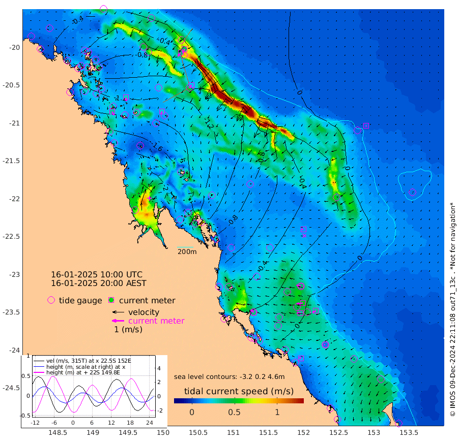 34cm/s 153T +10cm/s rms + 2cm/s 5T. Brampton I 18m 29cm/s 174T +9cm/s rms + 6cm/s 66T. Wigton I 38m 26cm/s -157T +7cm/s rms + 8cm/s 141T. Tern I 47m 39cm/s -155T +7cm/s rms + 12cm/s 54T. N Bugatti Rf 64m 37cm/s -142T +3cm/s rms + 13cm/s 178T. W Bugatti Rf 70m 22cm/s -151T +3cm/s rms + 3cm/s -130T. Creal Rf 69m 37cm/s -73T +7cm/s rms + 4cm/s 2T. North Rf 62m 34cm/s -44T +9cm/s rms + 2cm/s -56T. Cape Capricorn 26m 9cm/s -94T +5cm/s rms + 3cm/s 166T. L Musgrave I 42m 16cm/s -74T +9cm/s rms + 1cm/s -142T. Round Hill Hd 26m 6cm/s -163T +41cm/s rms + 48cm/s 116T. GBRELR 305m 14cm/s -85T +7cm/s rms + 6cm/s 123T. GBRCCH 92m 52cm/s -97T +8cm/s rms + 3cm/s -33T. GBRHIN 45m 33cm/s -93T +4cm/s rms + 2cm/s 41T. GBRHIS 46m 33cm/s -116T +16cm/s rms + 4cm/s -22T. GBROTE 59m -80cm Bell Cay -49cm Holbourne I -138cm Tern I -61cm Bugatti Rf -93cm Creal Rf -38cm White Tip I -13cm North Rf -15cm Rundle I 4cm L Musgrave I 12cm Saumarez Reef -24cm Kennedy Reef -23cm Unnamed Reef No. 2 -43cm Abbot Point -54cm Bowen -80cm Tideway Reef -70cm Hayman Island -99cm Square Reef -86cm Double Bay -96cm Molle Island -86cm Cid Harbour -78cm Hook Island -79cm Border Island -93cm Haslewood Island -93cm Shute Harbour -125cm Thomas Island -121cm Credlin Reef -140cm East Repulse Island -127cm Blacksmith Island -151cm Laguna Quays -139cm Carlisle Island (Off) -153cm St. Bees Island -130cm Scawfell Island -143cm Penrith Island -173cm Mackay Outer Harbour -183cm Hay Point -180cm Prudhoe Island -156cm Middle Island (Percy Isles) -72cm Gannet Cay -3cm Elusive Reef -277cm Mcewin Islet -128cm Mumford Island -156cm Osborn Island -169cm Marquis Island -146cm Reef Point -107cm High Peak Island -80cm Port Clinton -54cm Peaked Island -6cm Karamea Bank -35cm Johnson Patch - NW -42cm Rosslyn Bay -39cm Middle Island (Keppel Isles) -55cm Port Alma -6cm Heron Island 1cm One Tree Islet -3cm Polmaise Reef -18cm Tryon Island -7cm Rock Cod Shoal -20cm Gatcombe Head -30cm Gladstone -19cm South Trees (Storm Surge) 11cm Clews Point 6cm Round Hill Head 6cm Lady Elliot Island 5cm Breaksea Spit 8cm Bundaberg (Burnett Heads) 12cm Elliot Heads 1cm Waddy Point (Fraser Island)