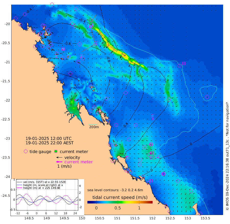 24cm/s 151T +10cm/s rms + 2cm/s 5T. Brampton I 18m 22cm/s 174T +9cm/s rms + 6cm/s 66T. Wigton I 38m 16cm/s -159T +7cm/s rms + 8cm/s 141T. Tern I 47m 23cm/s -152T +7cm/s rms + 12cm/s 54T. N Bugatti Rf 64m 21cm/s -142T +3cm/s rms + 13cm/s 178T. W Bugatti Rf 70m 13cm/s -162T +3cm/s rms + 3cm/s -130T. Creal Rf 69m 28cm/s -75T +7cm/s rms + 4cm/s 2T. North Rf 62m 23cm/s -43T +9cm/s rms + 2cm/s -56T. Cape Capricorn 26m 6cm/s -85T +5cm/s rms + 3cm/s 166T. L Musgrave I 42m 11cm/s -73T +9cm/s rms + 1cm/s -142T. Round Hill Hd 26m 4cm/s -168T +41cm/s rms + 48cm/s 116T. GBRELR 305m 12cm/s -77T +7cm/s rms + 6cm/s 123T. GBRCCH 92m 38cm/s -100T +8cm/s rms + 3cm/s -33T. GBRHIN 45m 24cm/s -93T +4cm/s rms + 2cm/s 41T. GBRHIS 46m 24cm/s -116T +16cm/s rms + 4cm/s -22T. GBROTE 59m -53cm Bell Cay -50cm Holbourne I -94cm Tern I -49cm Bugatti Rf -66cm Creal Rf -36cm White Tip I -8cm North Rf -8cm Rundle I 3cm L Musgrave I 11cm Saumarez Reef -36cm Kennedy Reef -29cm Unnamed Reef No. 2 -43cm Abbot Point -49cm Bowen -63cm Tideway Reef -56cm Hayman Island -72cm Square Reef -73cm Double Bay -87cm Molle Island -61cm Cid Harbour -66cm Hook Island -61cm Border Island -65cm Haslewood Island -71cm Shute Harbour -89cm Thomas Island -80cm Credlin Reef -94cm East Repulse Island -83cm Blacksmith Island -105cm Laguna Quays -92cm Carlisle Island (Off) -89cm St. Bees Island -75cm Scawfell Island -92cm Penrith Island -116cm Mackay Outer Harbour -121cm Hay Point -120cm Prudhoe Island -108cm Middle Island (Percy Isles) -47cm Gannet Cay -11cm Elusive Reef -180cm Mcewin Islet -81cm Mumford Island -96cm Osborn Island -97cm Marquis Island -89cm Reef Point -66cm High Peak Island -54cm Port Clinton -30cm Peaked Island -3cm Karamea Bank -21cm Johnson Patch - NW -24cm Rosslyn Bay -20cm Middle Island (Keppel Isles) -31cm Port Alma -1cm Heron Island 0cm One Tree Islet -1cm Polmaise Reef -9cm Tryon Island -2cm Rock Cod Shoal -11cm Gatcombe Head -16cm Gladstone -9cm South Trees (Storm Surge) 7cm Clews Point 6cm Round Hill Head 7cm Lady Elliot Island 3cm Breaksea Spit 7cm Bundaberg (Burnett Heads) 14cm Elliot Heads 3cm Waddy Point (Fraser Island)