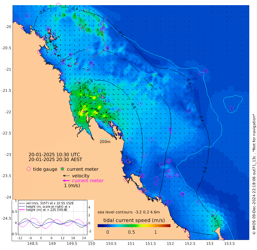 8cm/s 81T +10cm/s rms + 2cm/s 5T. Brampton I 18m 9cm/s -10T +9cm/s rms + 6cm/s 66T. Wigton I 38m 4cm/s -173T +7cm/s rms + 8cm/s 141T. Tern I 47m 9cm/s -14T +7cm/s rms + 12cm/s 54T. N Bugatti Rf 64m 14cm/s 32T +3cm/s rms + 13cm/s 178T. W Bugatti Rf 70m 5cm/s -9T +3cm/s rms + 3cm/s -130T. Creal Rf 69m 6cm/s -49T +7cm/s rms + 4cm/s 2T. North Rf 62m 4cm/s -145T +9cm/s rms + 2cm/s -56T. Cape Capricorn 26m 5cm/s -69T +5cm/s rms + 3cm/s 166T. L Musgrave I 42m 5cm/s -78T +9cm/s rms + 1cm/s -142T. Round Hill Hd 26m 3cm/s 154T +41cm/s rms + 48cm/s 116T. GBRELR 305m 8cm/s 121T +7cm/s rms + 6cm/s 123T. GBRCCH 92m 14cm/s -77T +8cm/s rms + 3cm/s -33T. GBRHIN 45m 10cm/s -87T +4cm/s rms + 2cm/s 41T. GBRHIS 46m 11cm/s -82T +16cm/s rms + 4cm/s -22T. GBROTE 59m -80cm Bell Cay -48cm Holbourne I -91cm Tern I -53cm Bugatti Rf -67cm Creal Rf -44cm White Tip I -57cm North Rf -71cm Rundle I -40cm L Musgrave I -19cm Saumarez Reef -52cm Kennedy Reef -39cm Unnamed Reef No. 2 -39cm Abbot Point -42cm Bowen -51cm Tideway Reef -57cm Hayman Island -64cm Square Reef -48cm Double Bay -67cm Molle Island -57cm Cid Harbour -56cm Hook Island -52cm Border Island -50cm Haslewood Island -58cm Shute Harbour -70cm Thomas Island -73cm Credlin Reef -68cm East Repulse Island -74cm Blacksmith Island -76cm Laguna Quays -72cm Carlisle Island (Off) -74cm St. Bees Island -67cm Scawfell Island -94cm Penrith Island -97cm Mackay Outer Harbour -104cm Hay Point -104cm Prudhoe Island -129cm Middle Island (Percy Isles) -80cm Gannet Cay -31cm Elusive Reef -144cm Mcewin Islet -125cm Mumford Island -130cm Osborn Island -130cm Marquis Island -118cm Reef Point -95cm High Peak Island -103cm Port Clinton -86cm Peaked Island -52cm Karamea Bank -87cm Johnson Patch - NW -90cm Rosslyn Bay -85cm Middle Island (Keppel Isles) -103cm Port Alma -55cm Heron Island -61cm One Tree Islet -64cm Polmaise Reef -67cm Tryon Island -55cm Rock Cod Shoal -72cm Gatcombe Head -83cm Gladstone -77cm South Trees (Storm Surge) -57cm Clews Point -50cm Round Hill Head -36cm Lady Elliot Island -42cm Breaksea Spit -53cm Bundaberg (Burnett Heads) -52cm Elliot Heads -30cm Waddy Point (Fraser Island)